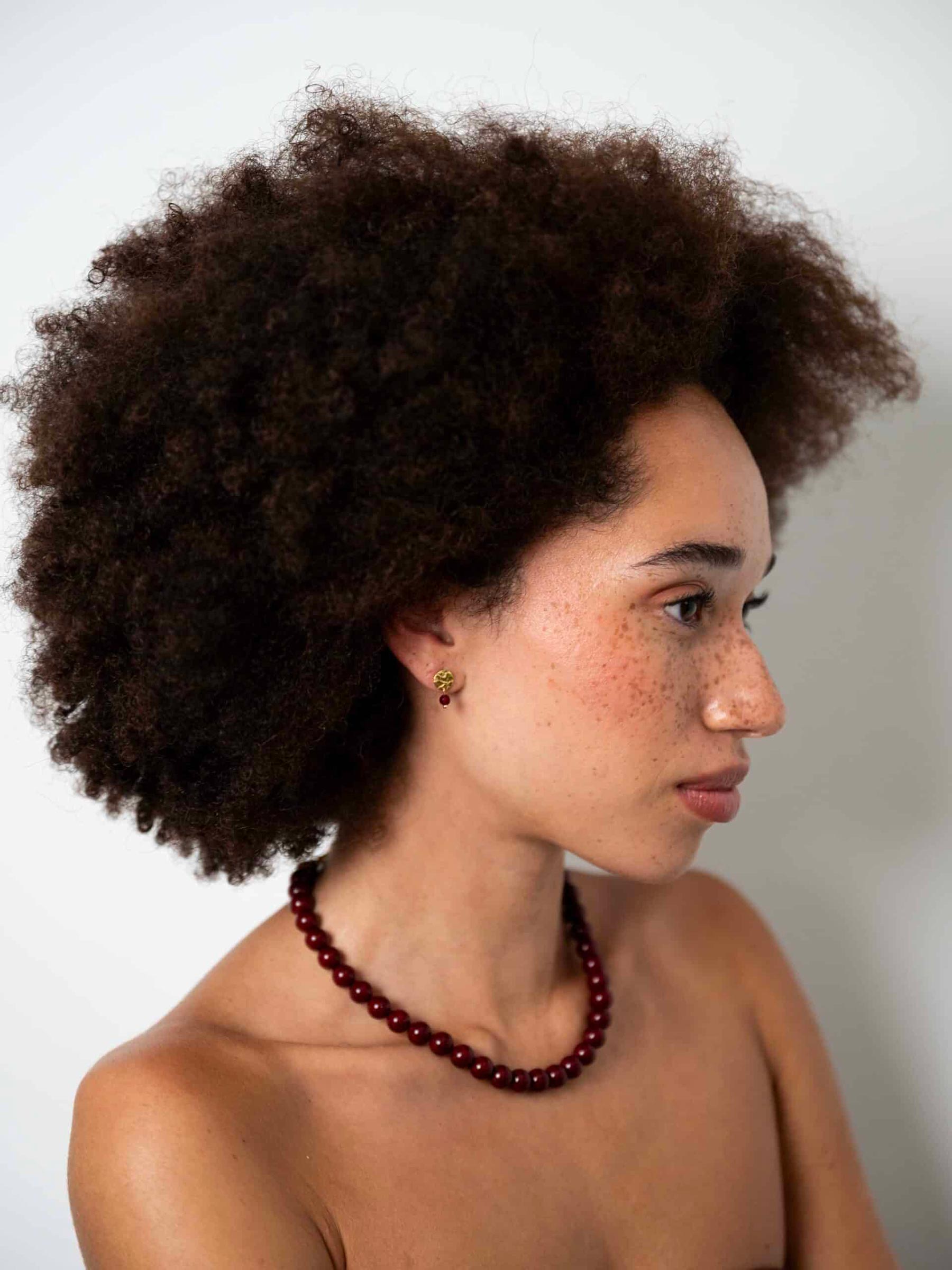 Dit bordeaux oorbellen van Ellen Beekmans zijn een fijne mix van warm en chic. De gehamerde goudkleurige studs geven een speels relief en de bordeaux steen maakt het helemaal compleet. Mooi voor elke dag en ook perfect bij feestelijke looks.