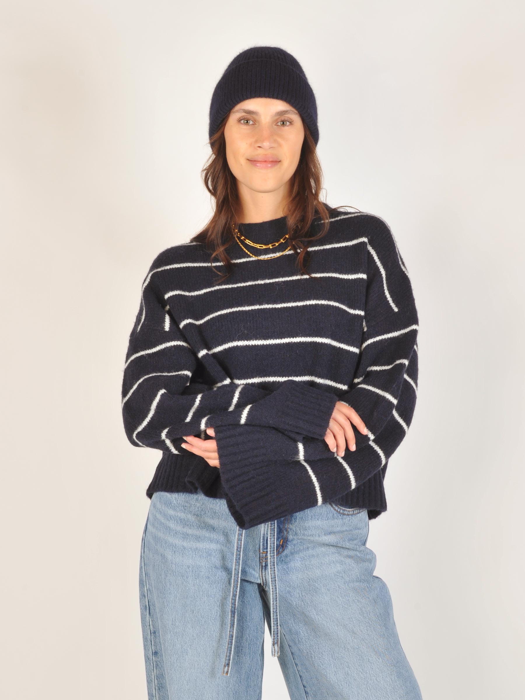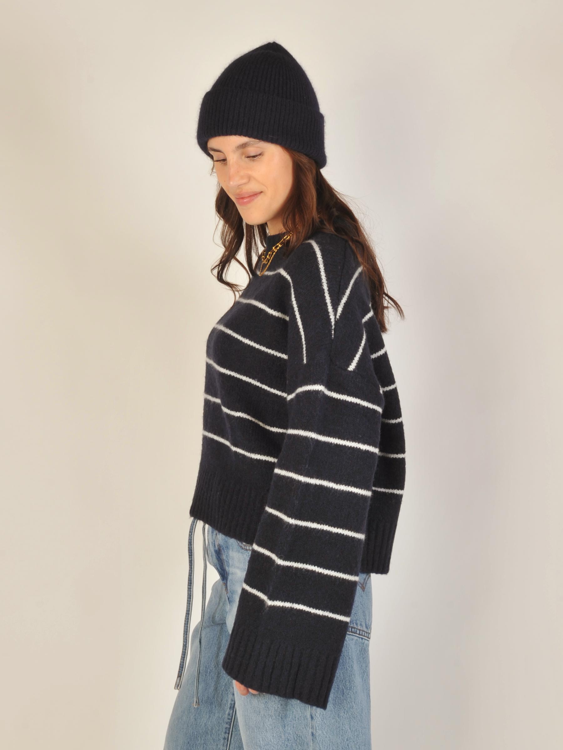 Deze donkerblauw gestreepte trui van Envii geeft je outfit meteen een fijne en casual fit. De zachte feel en strepen werken perfect met denim en een beanie voor een relaxed everyday look. Draag hem losjes of half in je jeans voor een nonchalante styling.