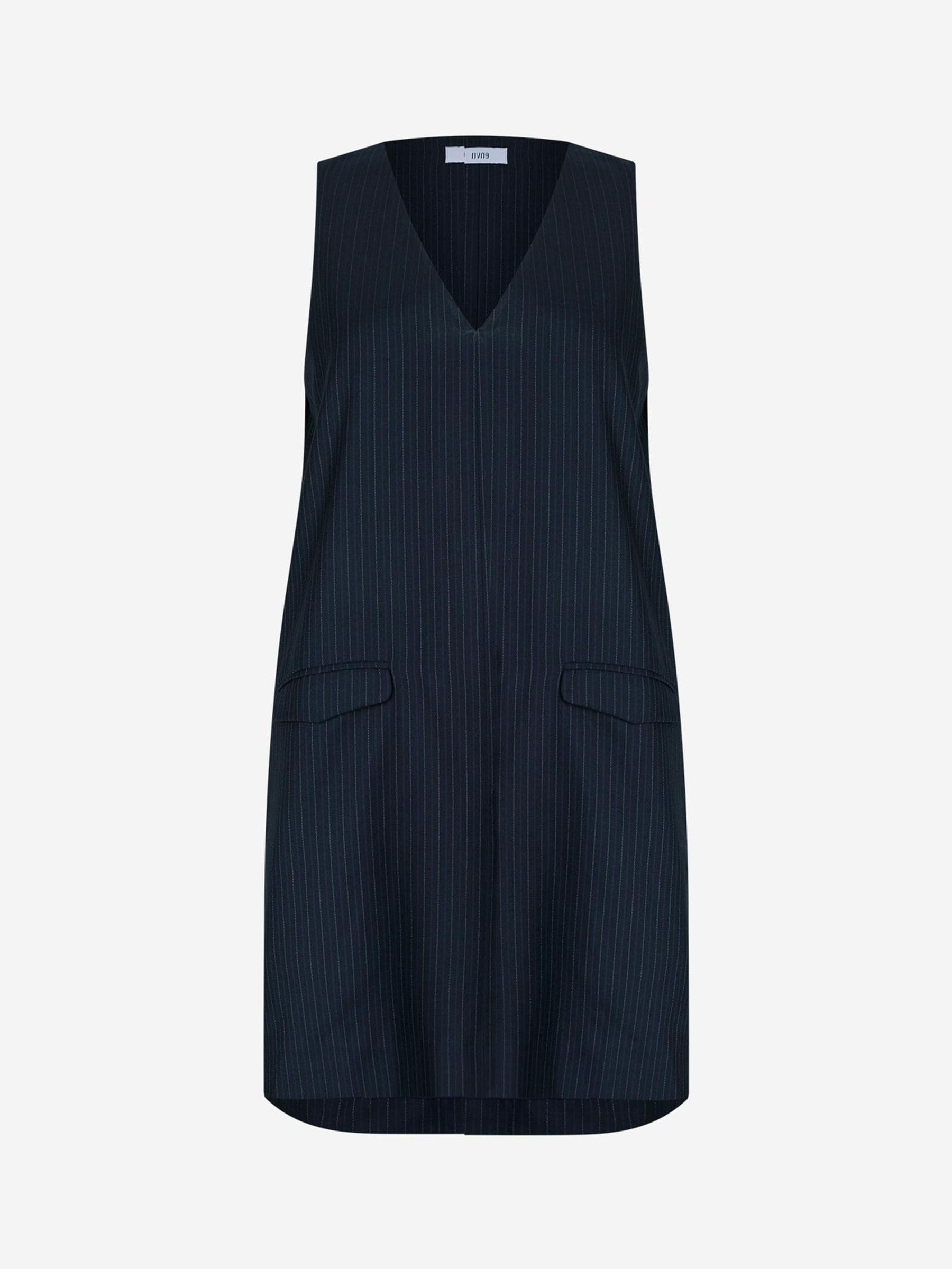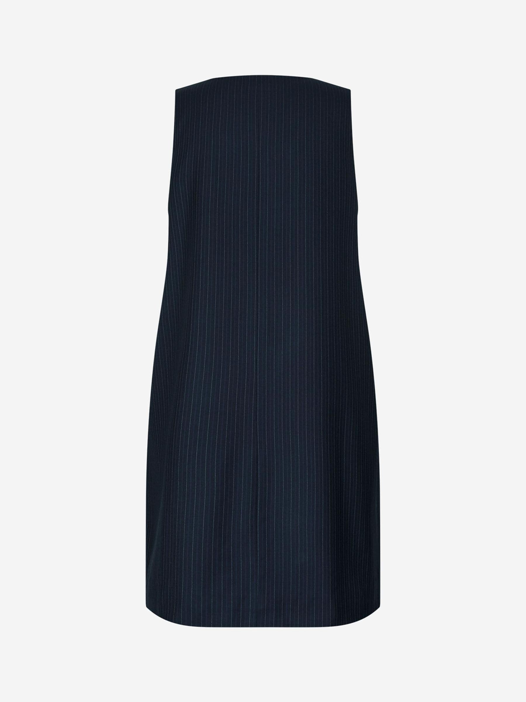 Deze donkerblauwe jurk van Envii is zo’n item dat altijd goed zit. De subtiele krijtstreep en V-hals geven een verfijnde look, terwijl het rechte model zorgt voor een relaxte pasvorm. Mooi met hoge laarzen of met een blouse eronder voor een meer gelaagde stijl.