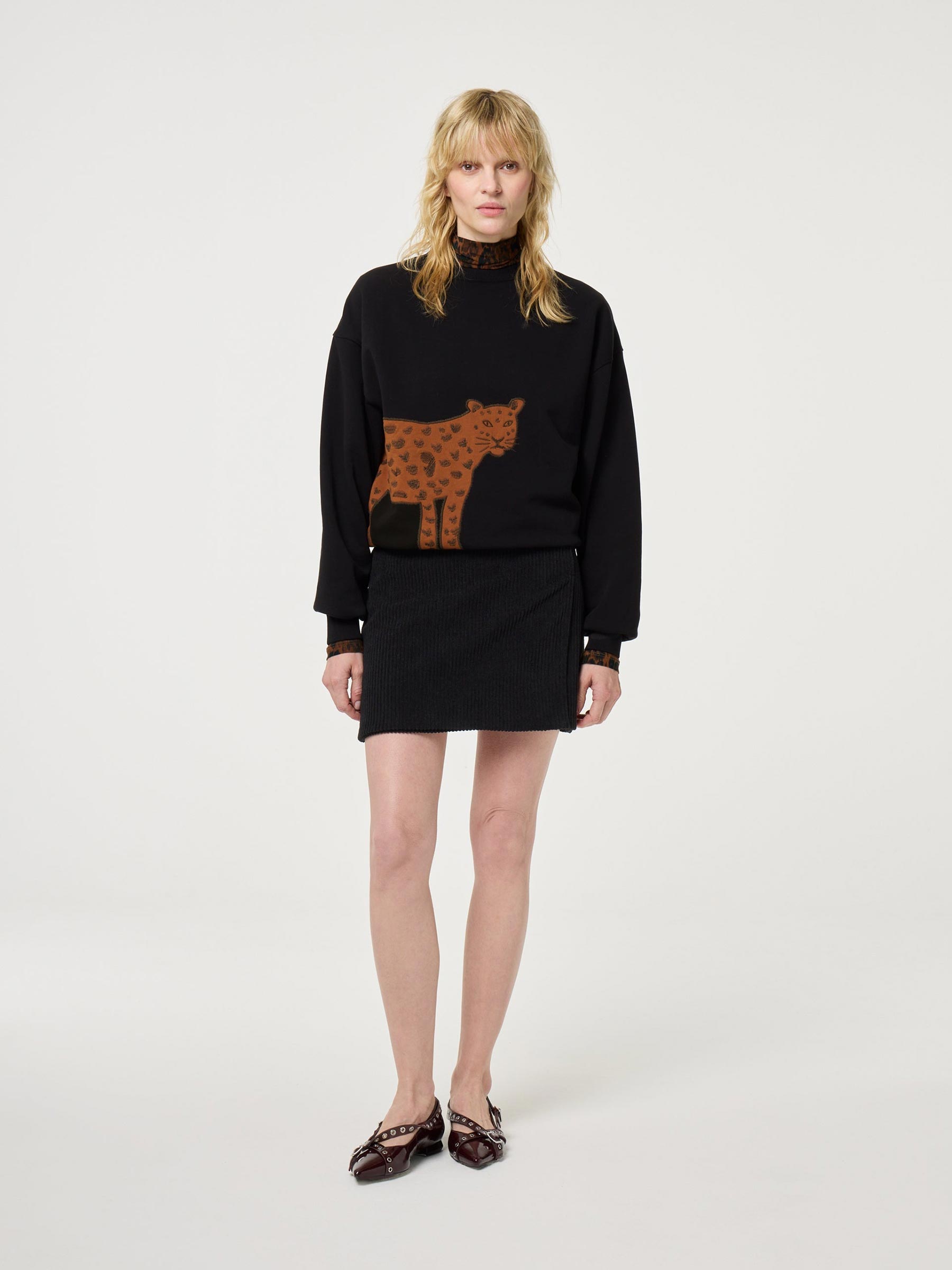 Deze zwarte sweater van Fabienne Chapot is allesbehalve basic. De opvallende cheetah-print op de voorkant maakt 'm stoer, speels en nét even anders. Gemaakt van een zachte katoenmix met een relaxte pasvorm.