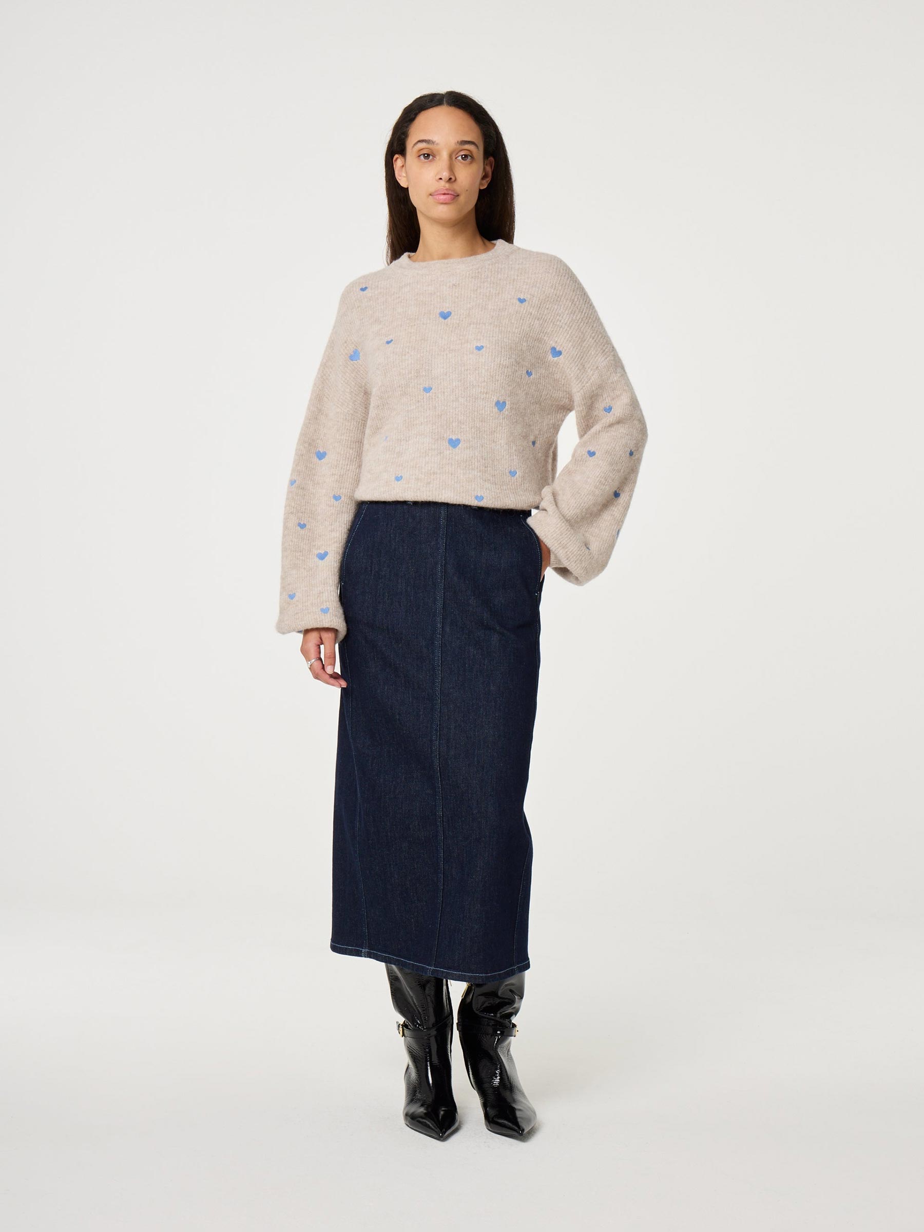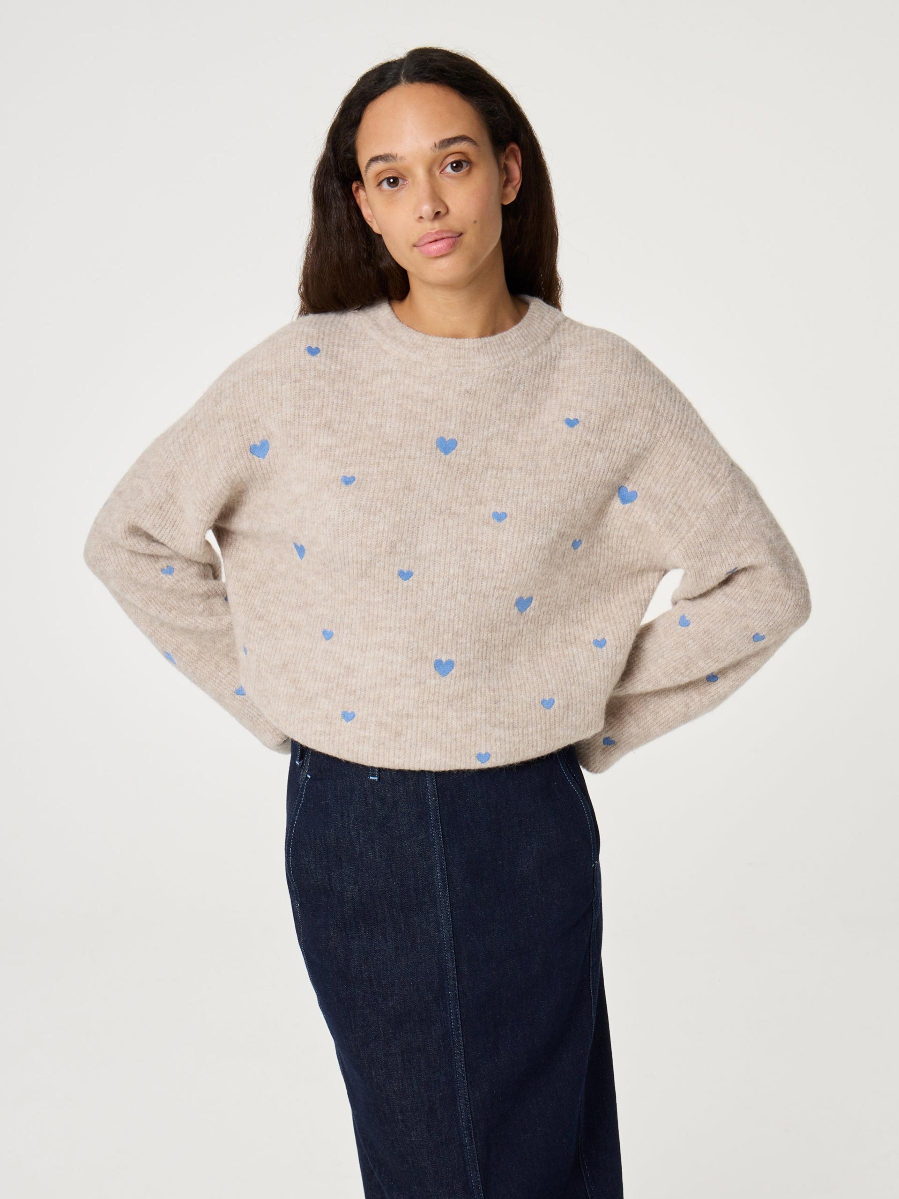 Deze gebreide trui van Fabienne Chapot is gemaakt van een zachte, gebreide kwaliteit die je het liefst élke dag aantrekt. De relaxed fit, ronde hals en licht gepofte mouwen maken ’m comfy én leuk tegelijk.