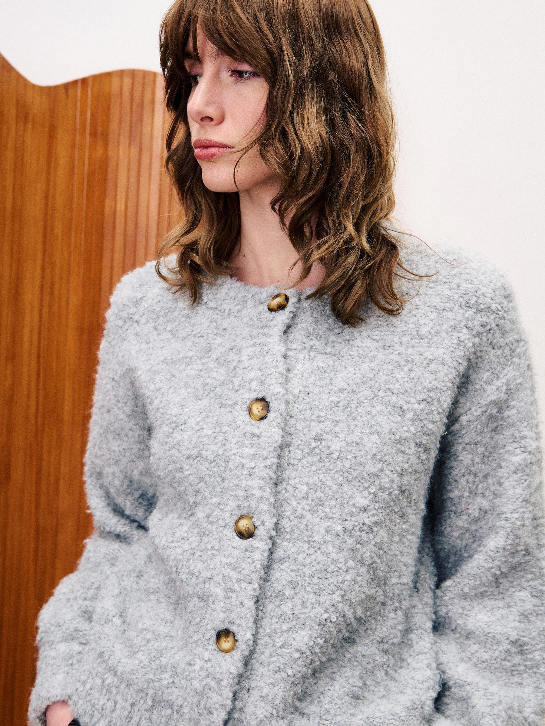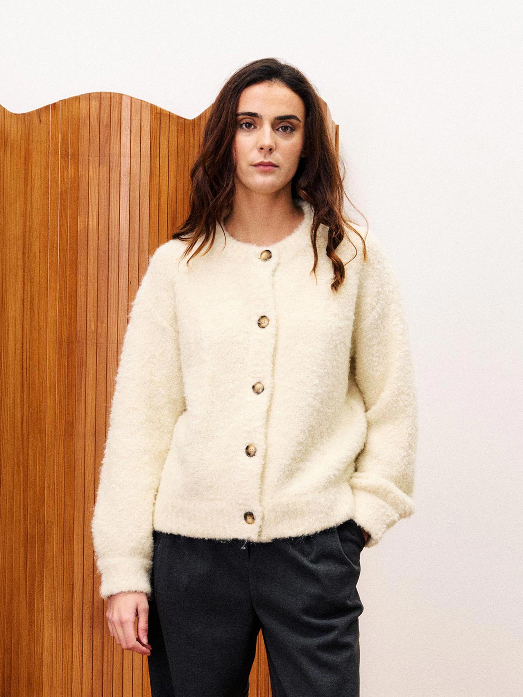 Dit gebreide vest van FRNCH heeft een fluffy structuur en stijlvolle knopen die zorgen voor een cozy maar moderne uitstraling. Het korte model draag je zowel open als dicht en is ideaal voor een warme laag in je dagelijkse look. Verkrijgbaar in meerdere kleuren, zodat je altijd de perfecte match vindt.