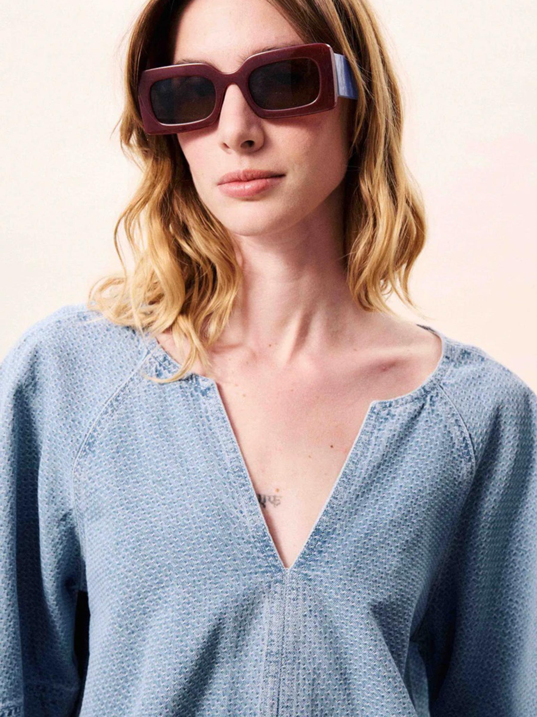 Deze blauwe Citrine blouse van FRNCH is de perfecte toevoeging aan jouw garderobe voor een frisse, zomerse look. Door de ruime pasvorm en het soepele denim voelt het item heerlijk luchtig aan op warme dagen. Het Parijse merk staat bekend om haar kleurrijke en karaktervolle ontwerpen die elke outfit een unieke uitstraling geven.