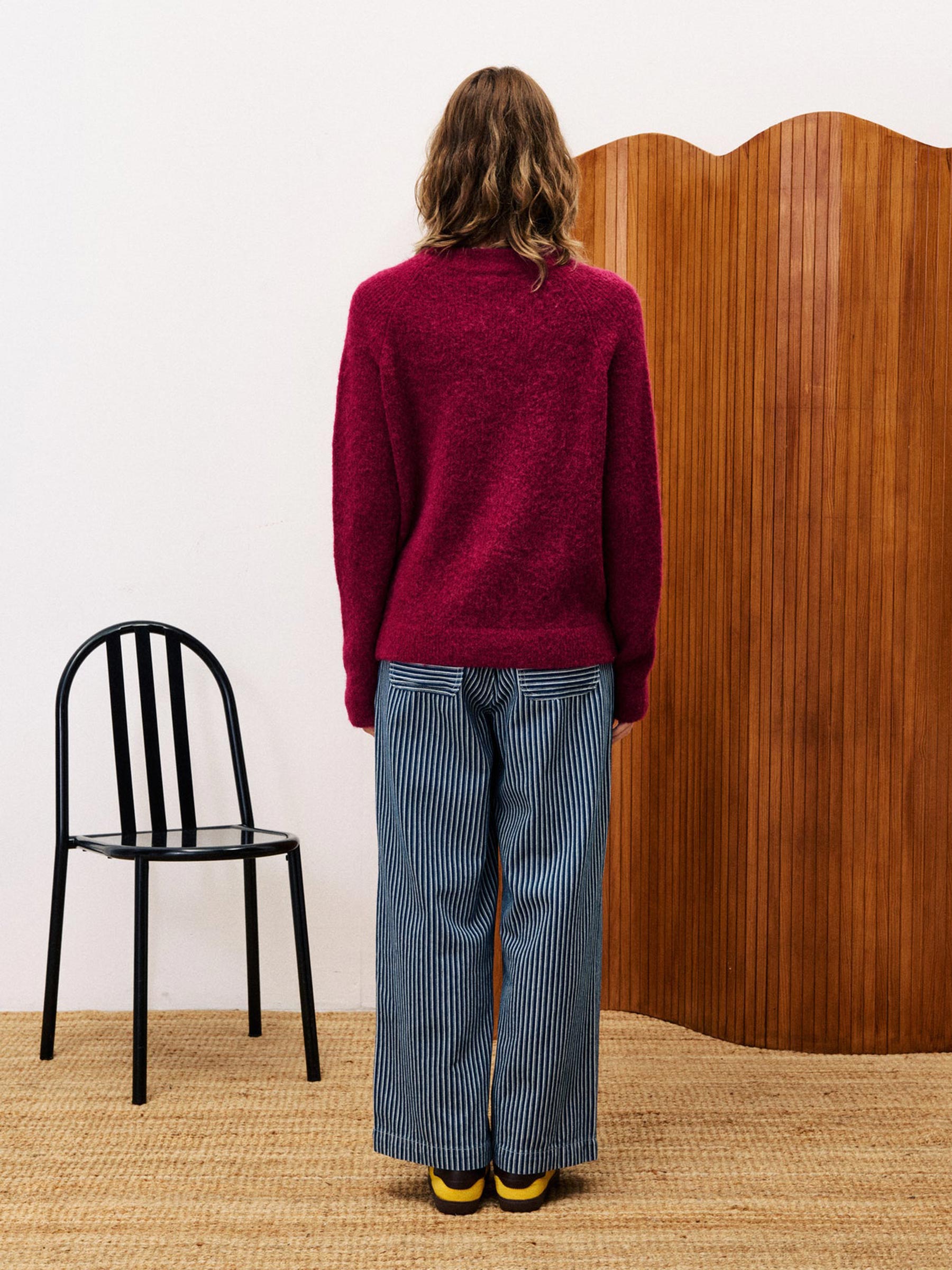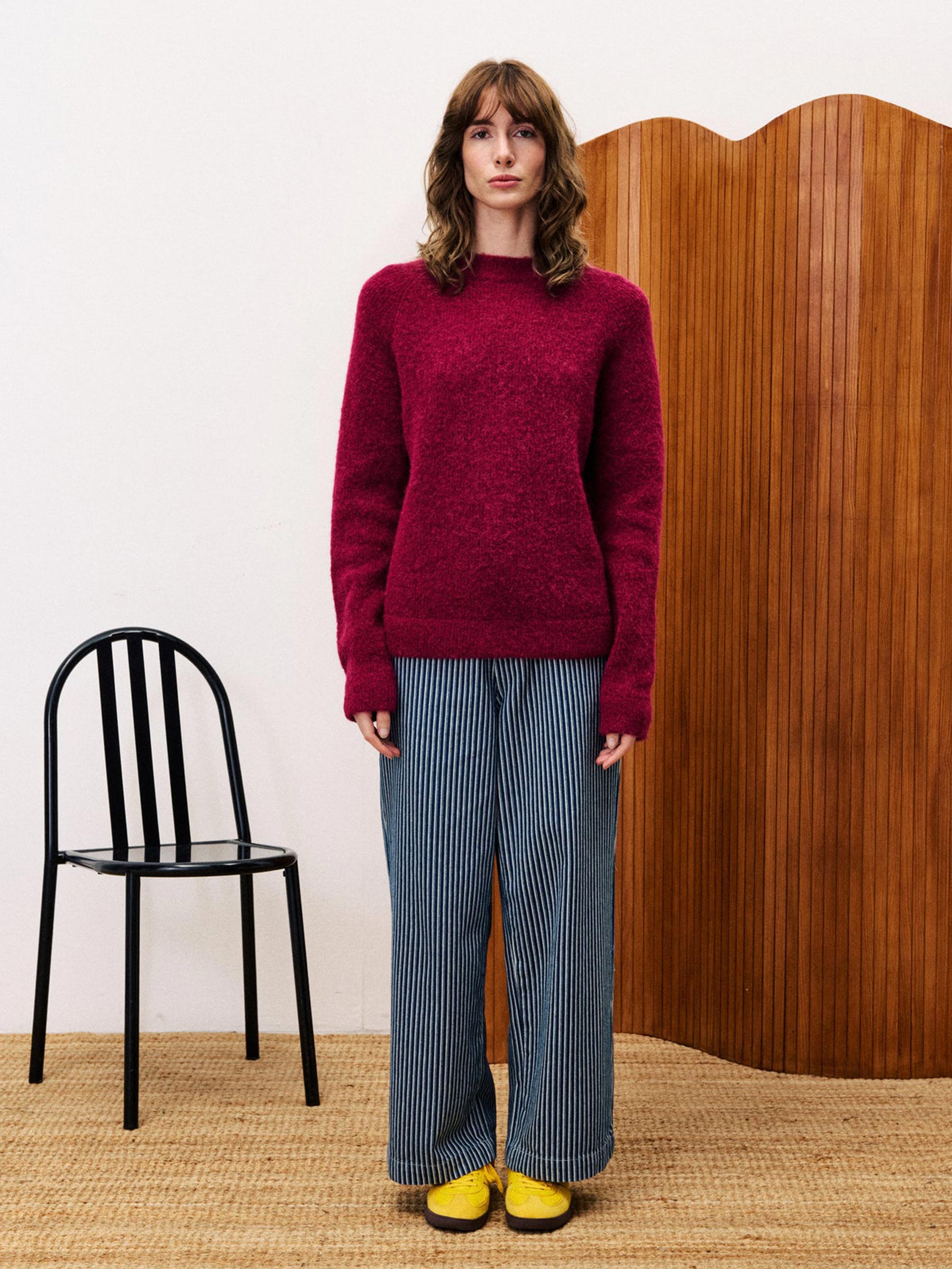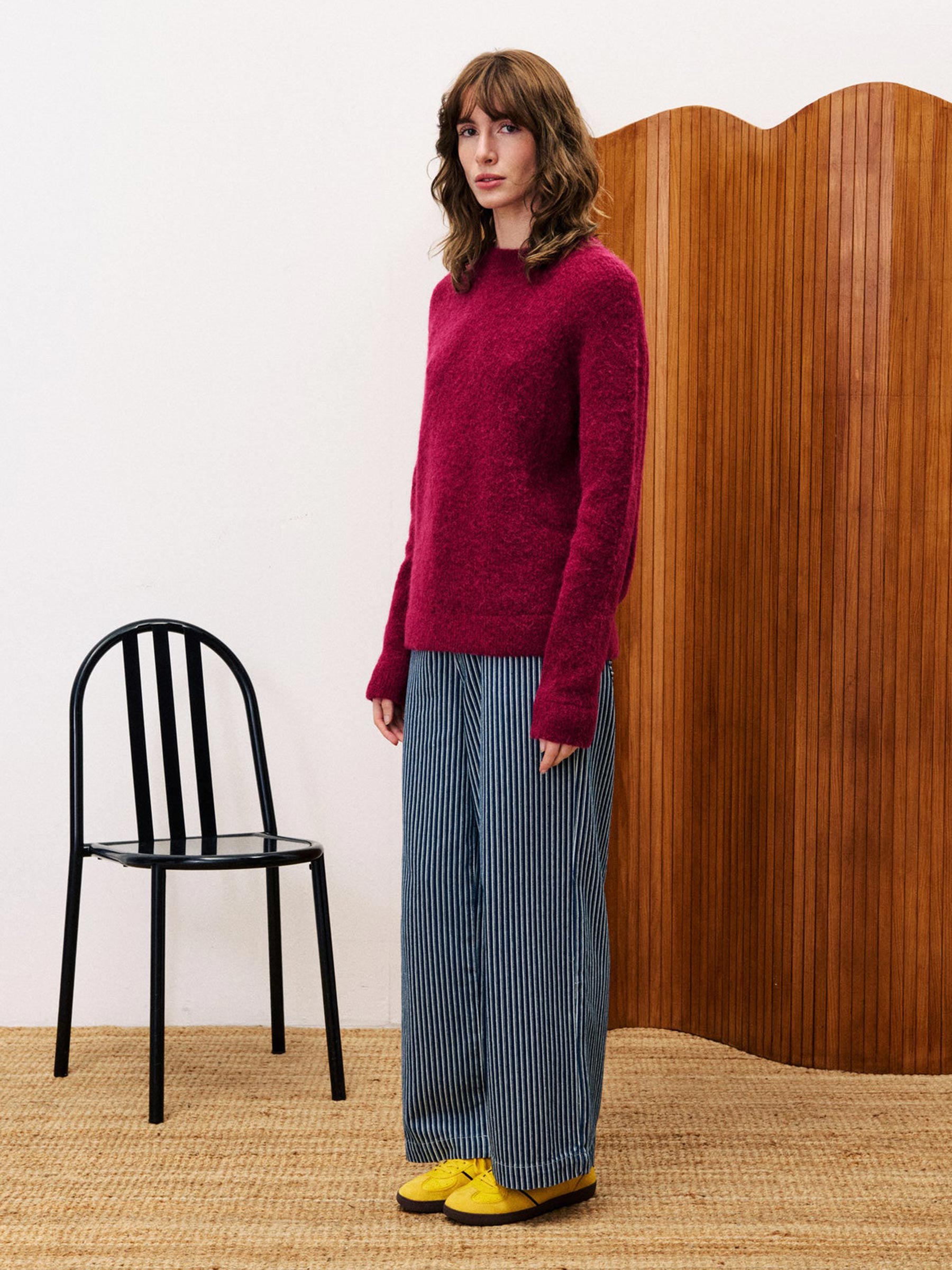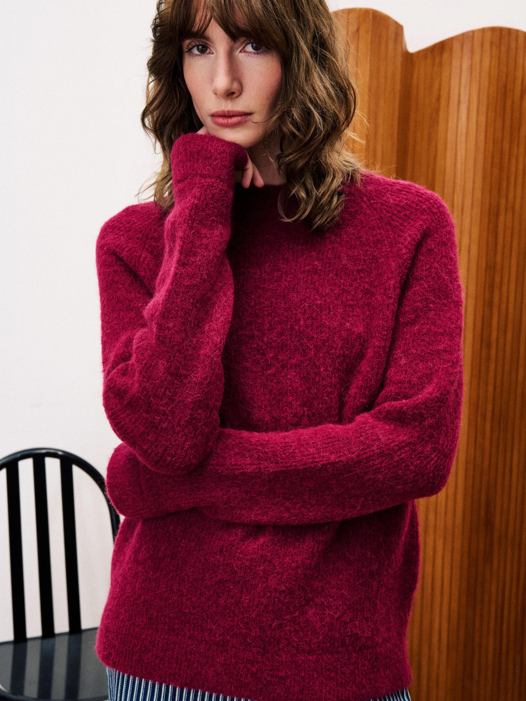 Deze bordeauxrode trui van FRNCH brengt warmte en kleur in je look. De zachte, pluizige knit voelt heerlijk cozy en heeft een relaxed silhouet dat makkelijk combineert met denim of een pantalon. Perfect voor dagen waarop je comfort en stijl wilt samenbrengen.