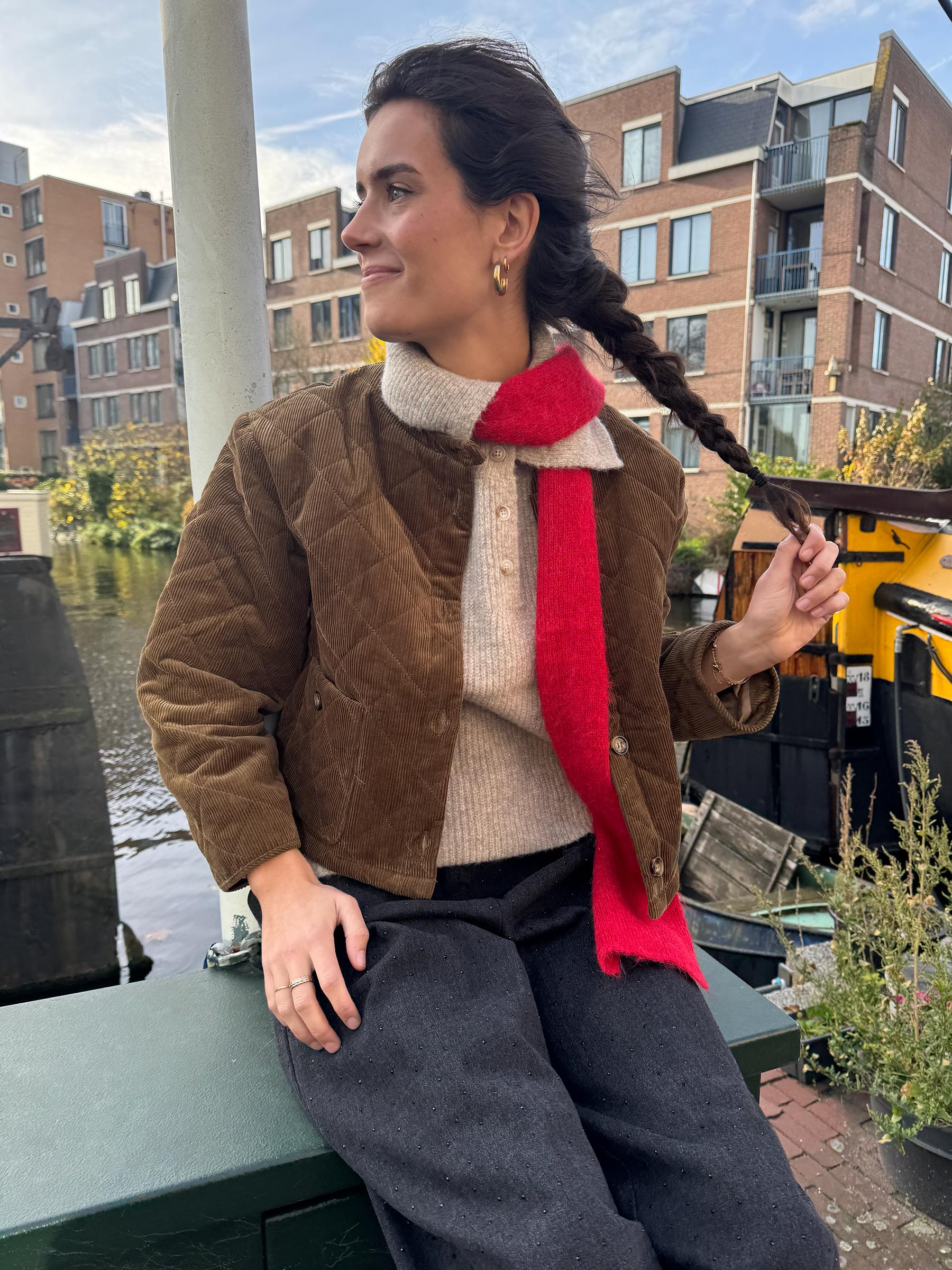 Dit groene velvet jack van FRNCH is zo’n item dat direct sfeer brengt in je outfit. De gewatteerde stof met ruitpatroon voelt zacht en luxe, terwijl de korte, boxy fit juist een modern accent geeft. Leuk met een corduroy broek voor een ton-sur-ton look of met denim voor een speelser contrast.