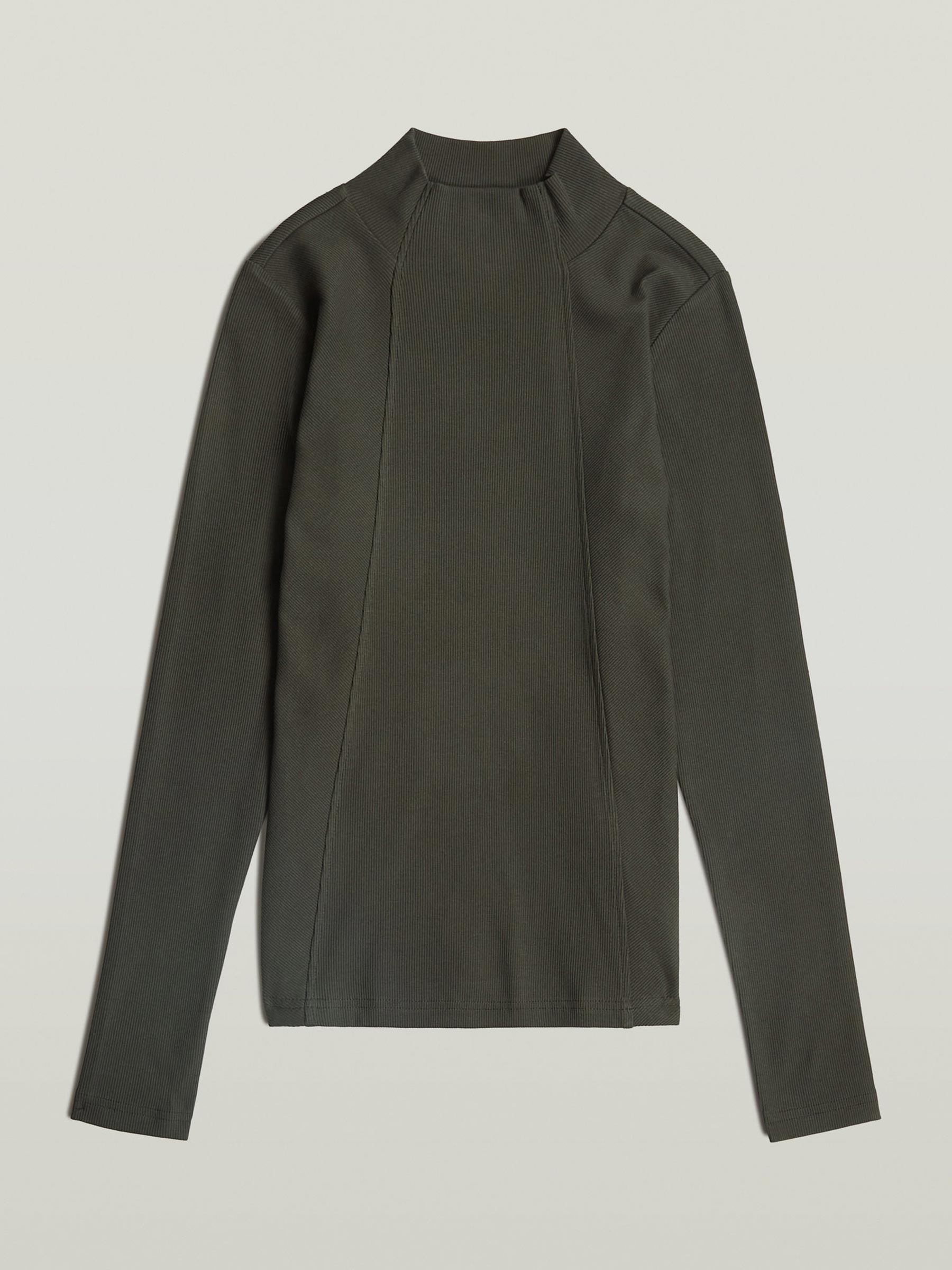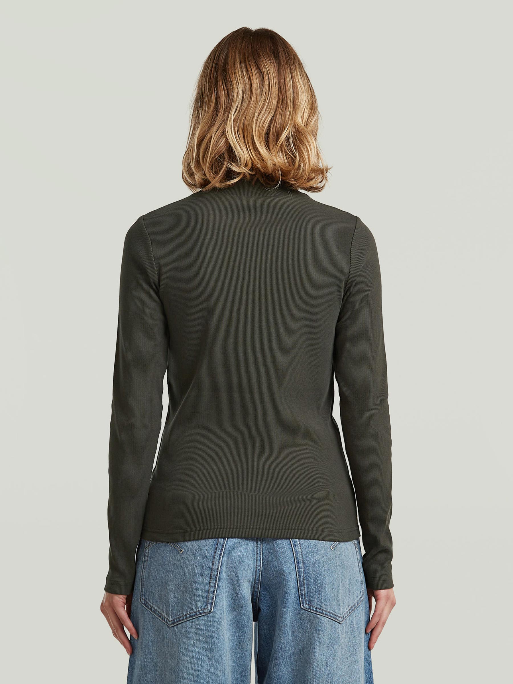 Dit donkergroene shirt van G-Star is een subtiele essential voor iedere dag. De mockneck en lange mouwen geven ‘m een stoere uitstraling, terwijl de ribstructuur en nauwsluitende pasvorm zorgen voor een vrouwelijke touch. Combineer met je favoriete denim voor een casual look met karakter.