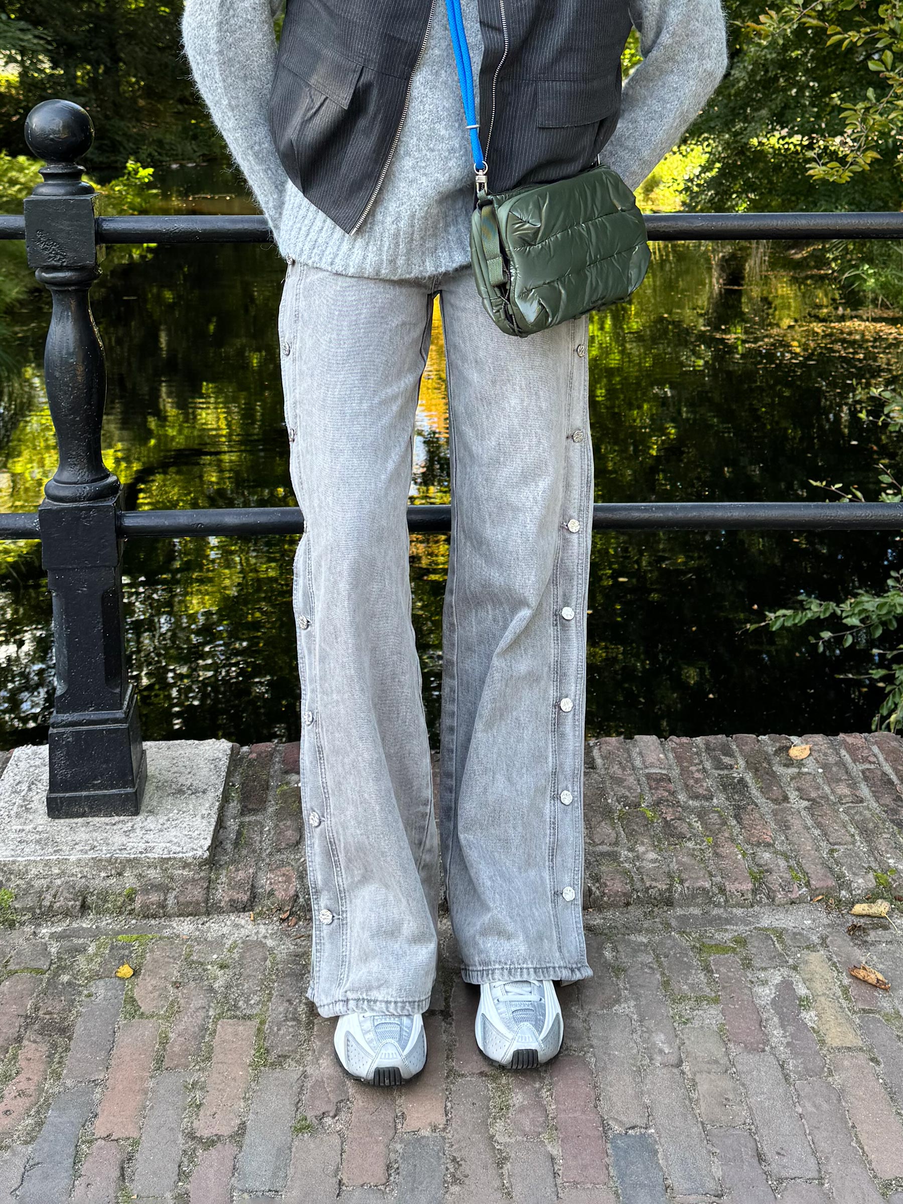 Grijze jeans side panel button