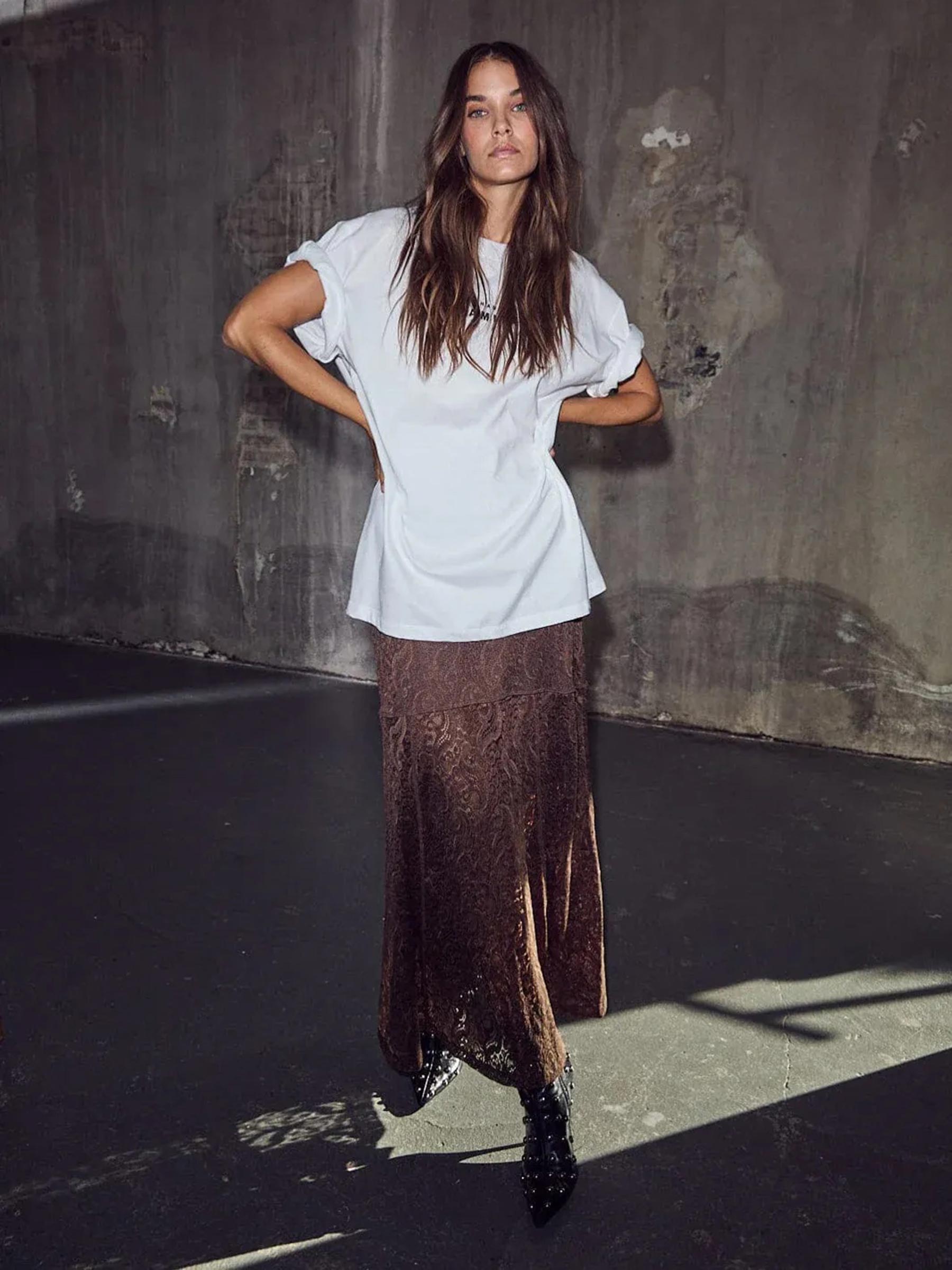 Draag de rok met een oversized wit T-shirt en grove boots voor een contrastrijke outfit. Wil je een meer geklede verschijning, combineer hem dan met een zijden top en sandalen met een hakje.