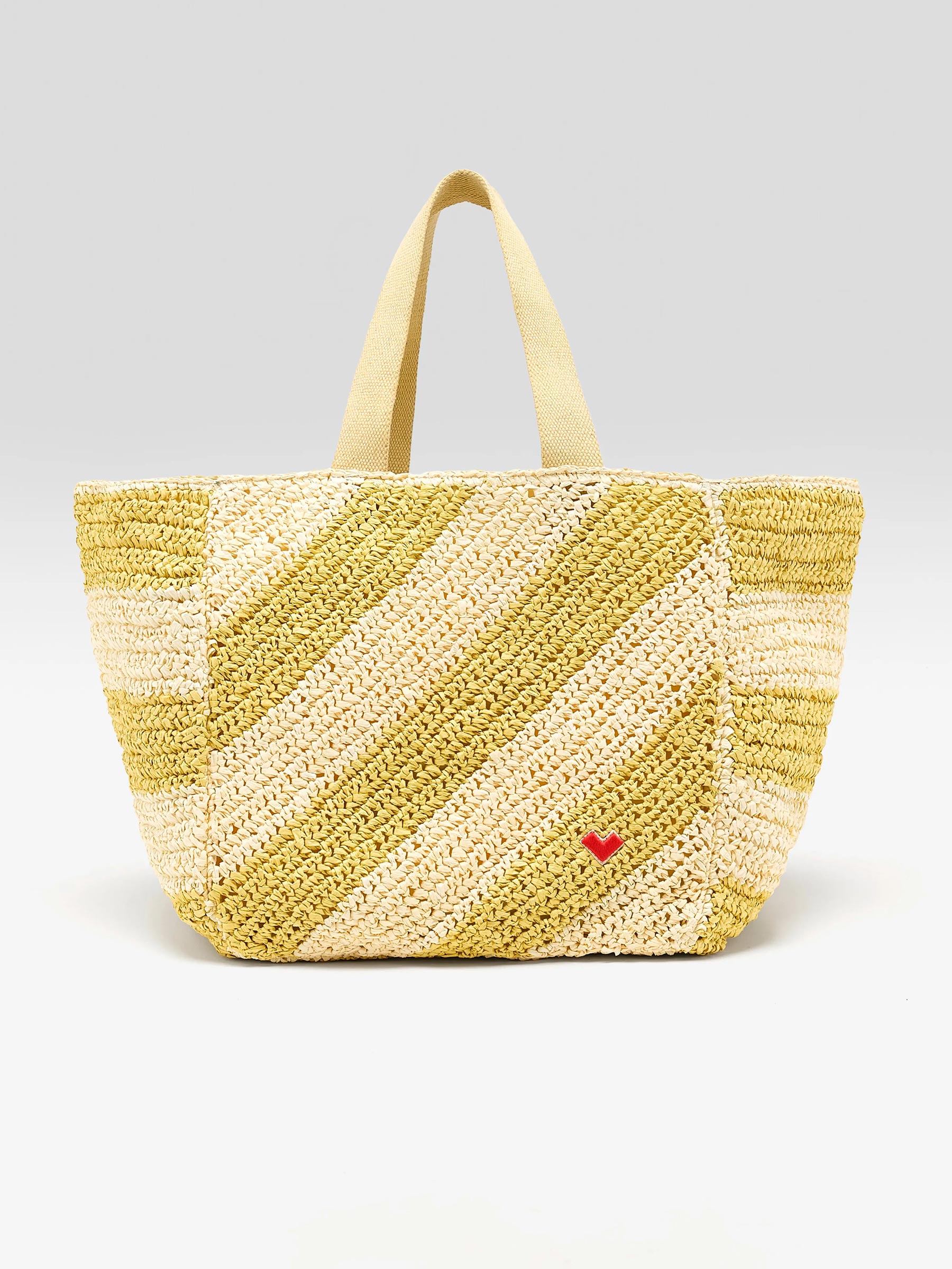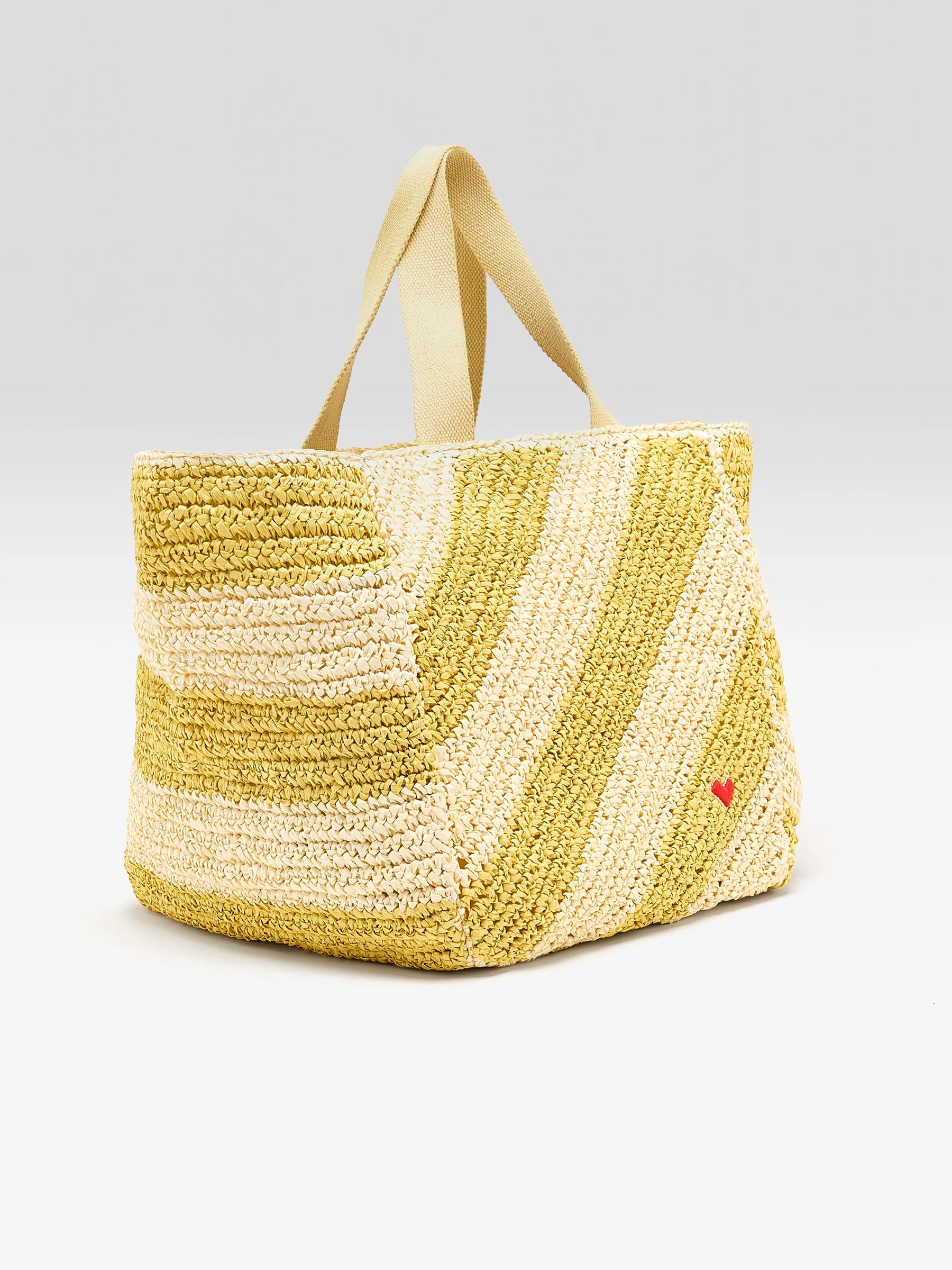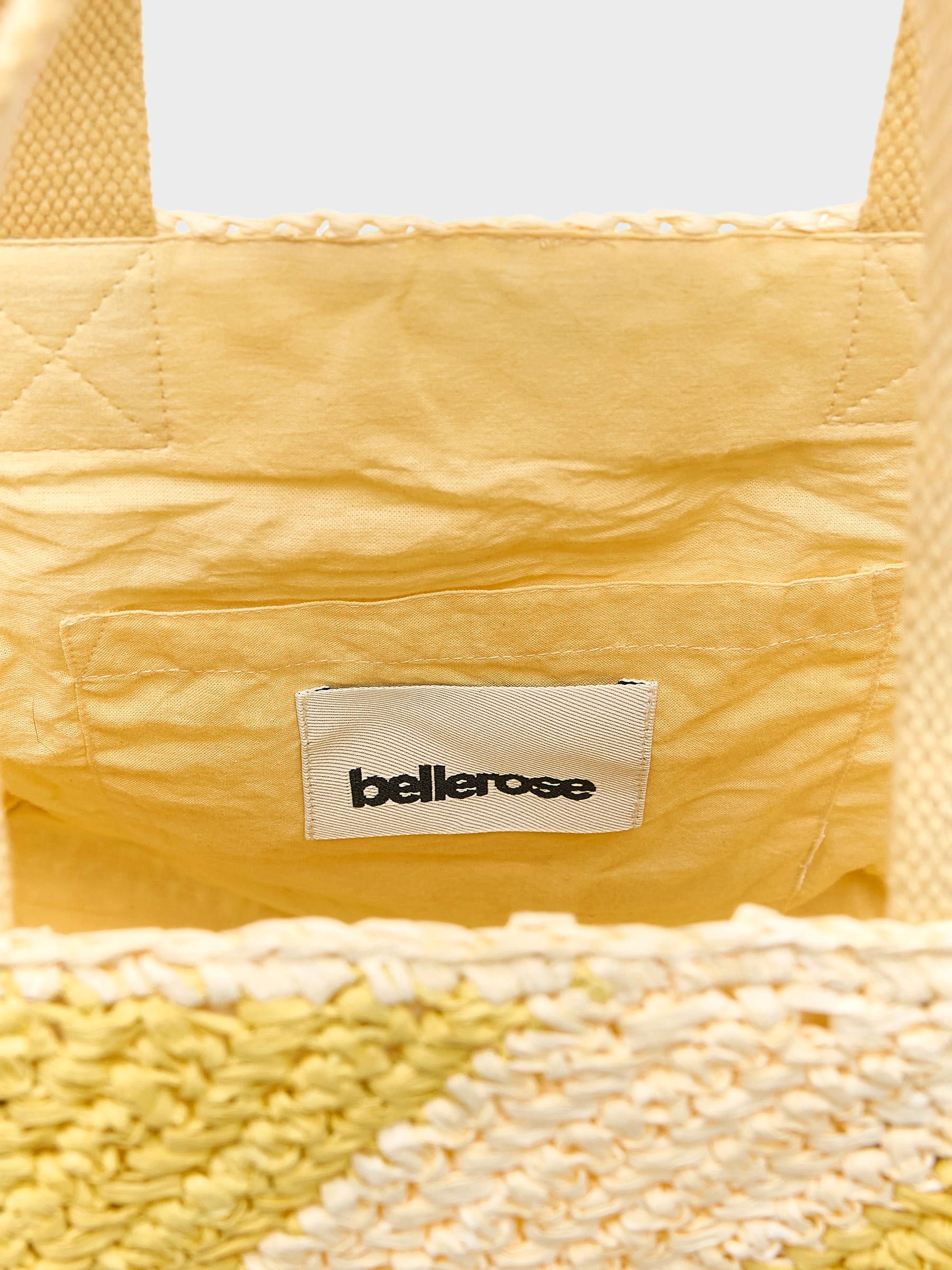 Deze geel gestreepte tas van Bellerose is een fijne ruime shopper voor zonnige dagen en weekendplannen. Het gevlochten materiaal en de zachte kleuren geven deze tas een frisse uitstraling en genoeg plek voor al je dagelijkse spullen of een dagje strand.