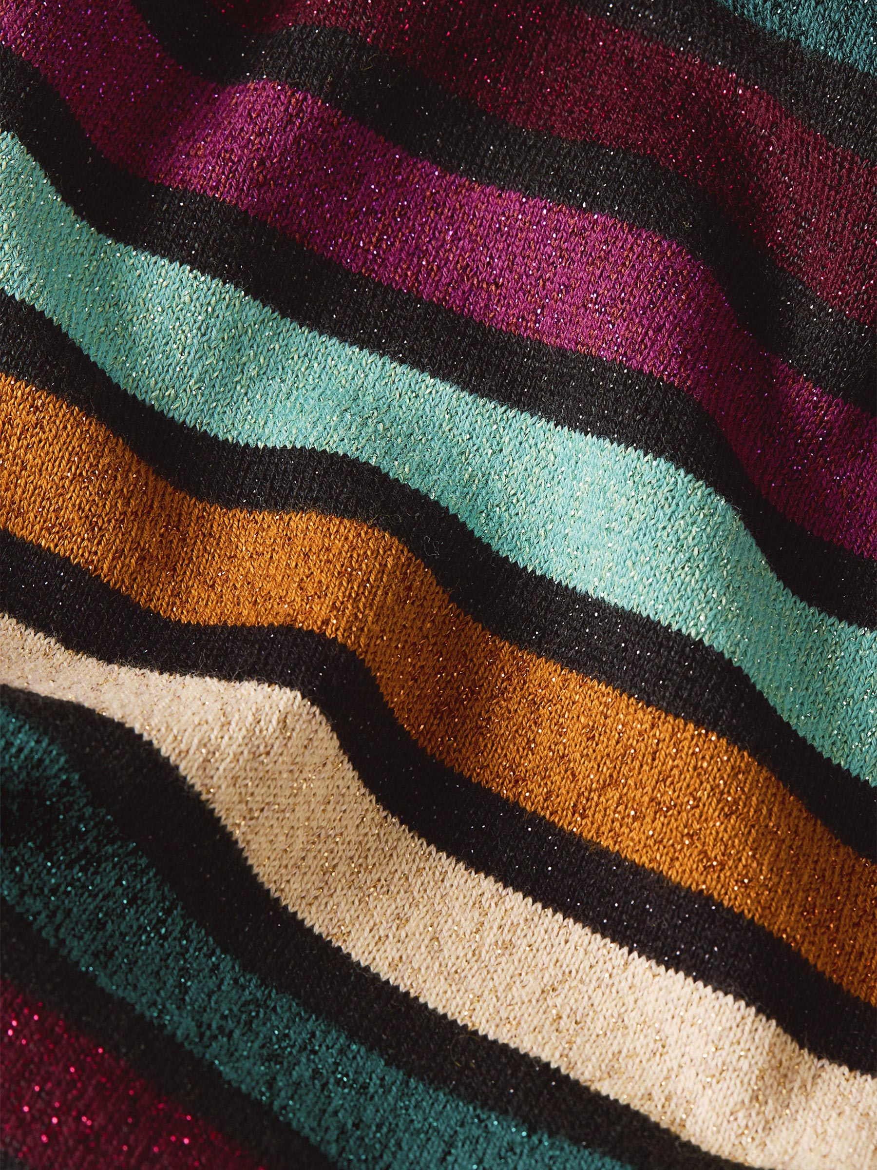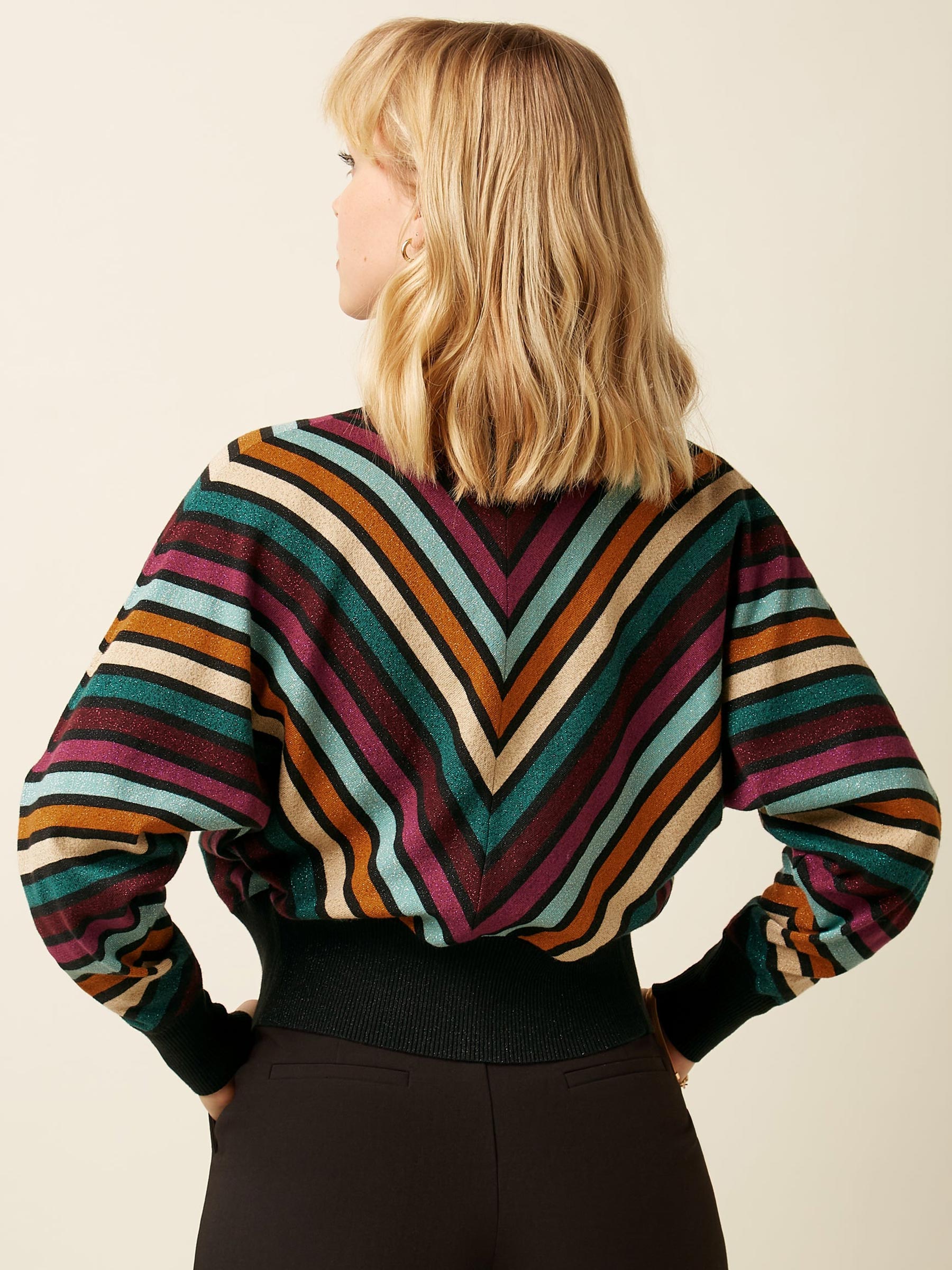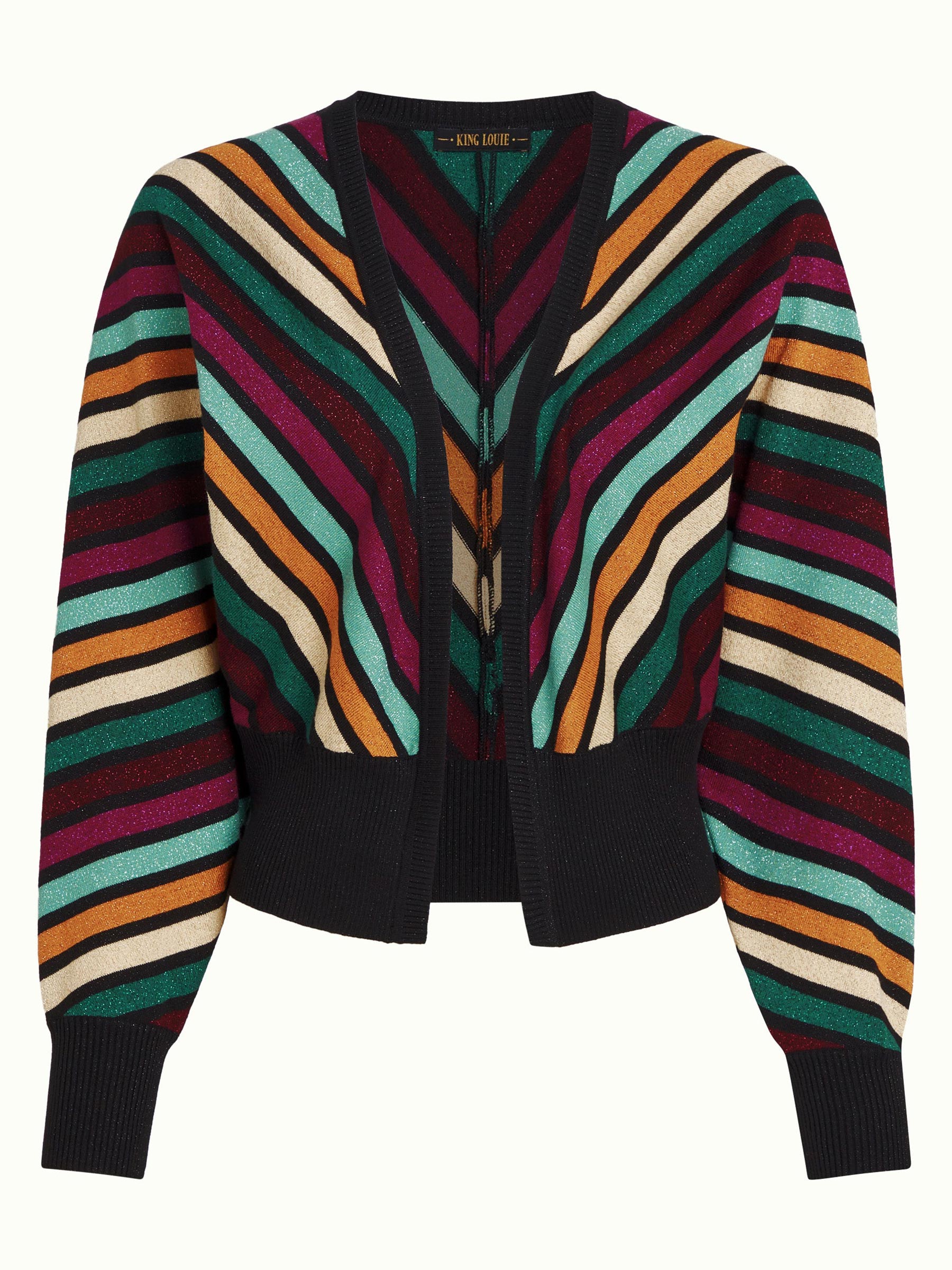 Deze multigekleurde vest van King Louie brengt meteen kleur in je outfit. Het gestreepte patroon met subtiele glans maakt dit vest leuk om te combineren, zonder dat het te druk voelt. Draag het open over een basic top of dicht als eyecatcher bij een simpele broek.