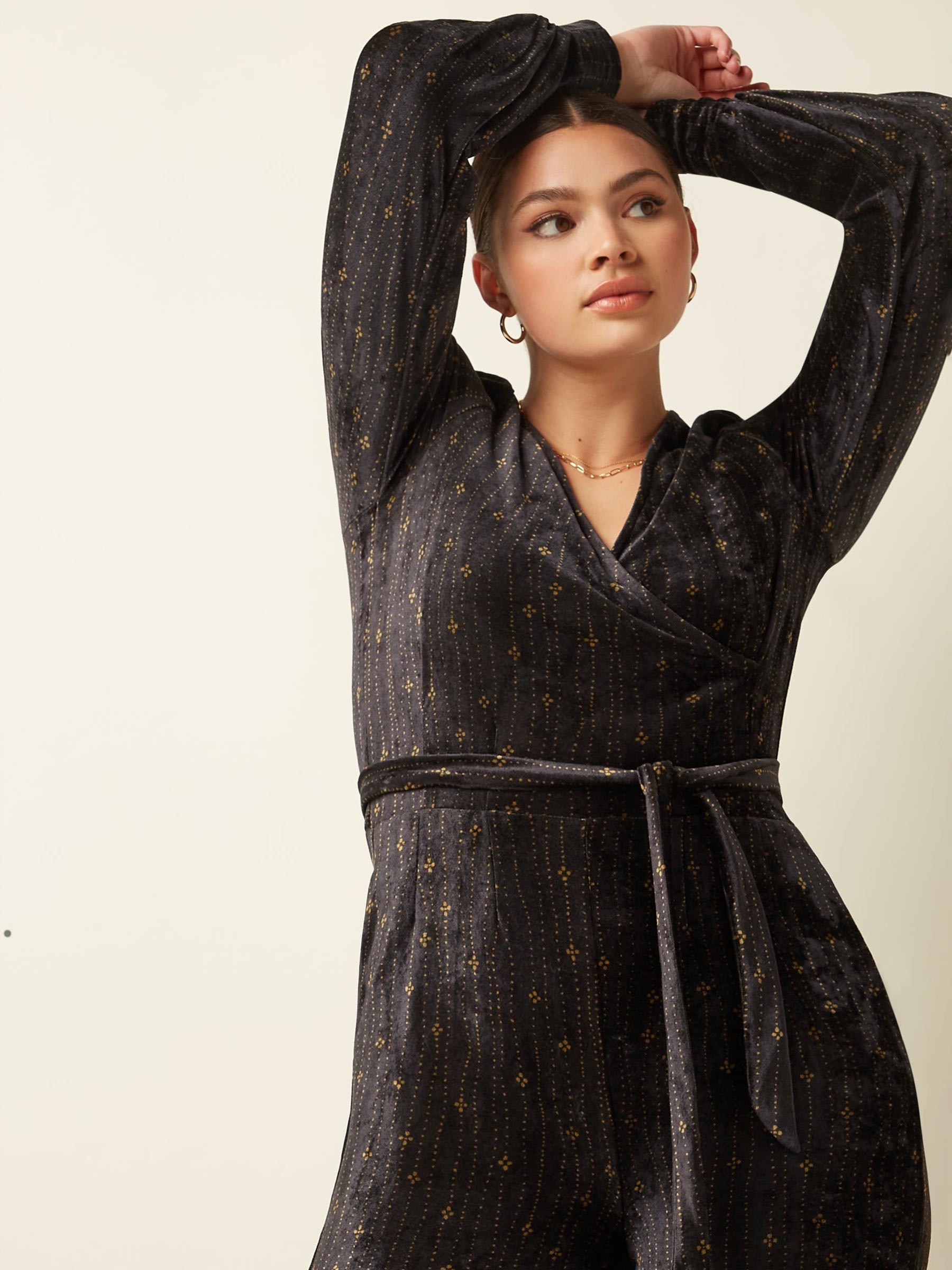 Deze zwarte jumpsuit van King Louie is een fijne alleskunner voor dagen waarop je in één keer klaar wil zijn. De overslag en ceintuur zorgen voor een getailleerde fit en een relaxed gevoel. Draag met enkellaarsjes voor overdag of met hakken voor een avondje uit.