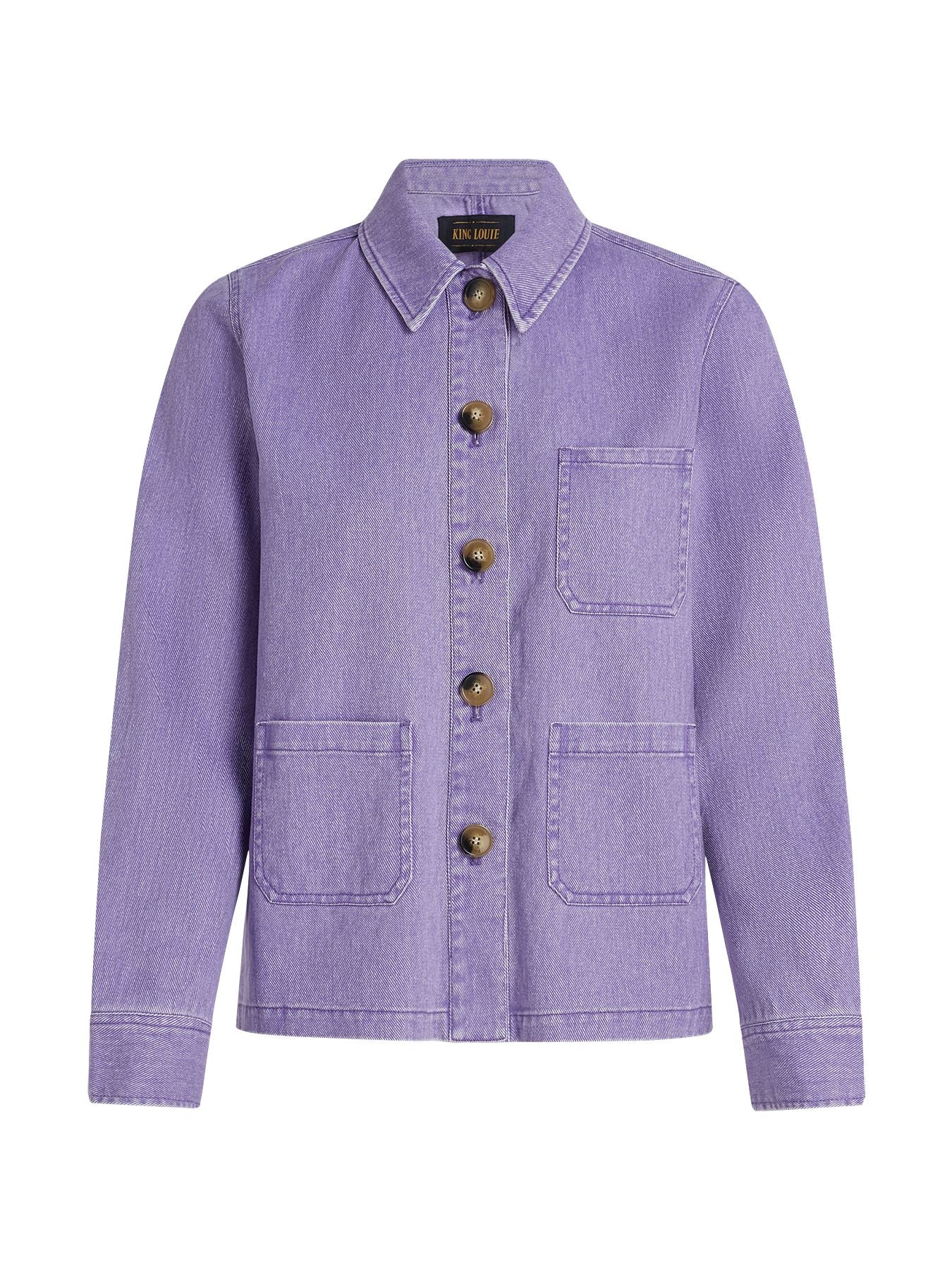 Dit lila denim jasje van King Louie is perfect als je outfit wel wat kleur kan gebruiken. De zachte paarse tint geeft meteen een frisse vibe en maakt elke look net wat leuker!