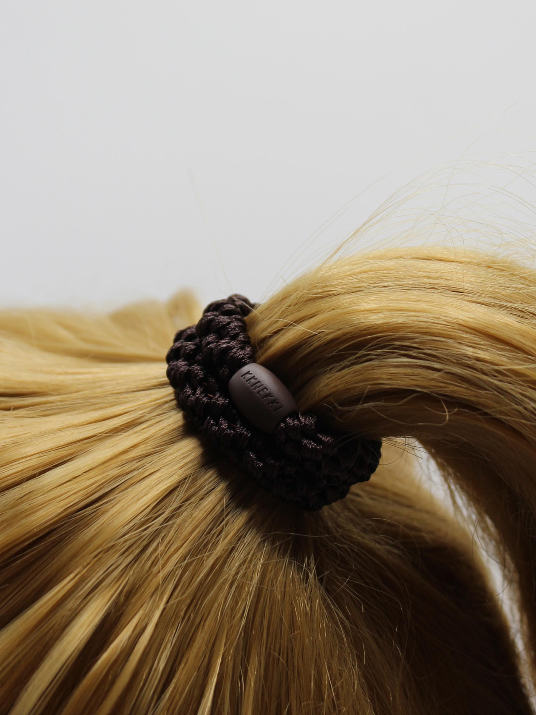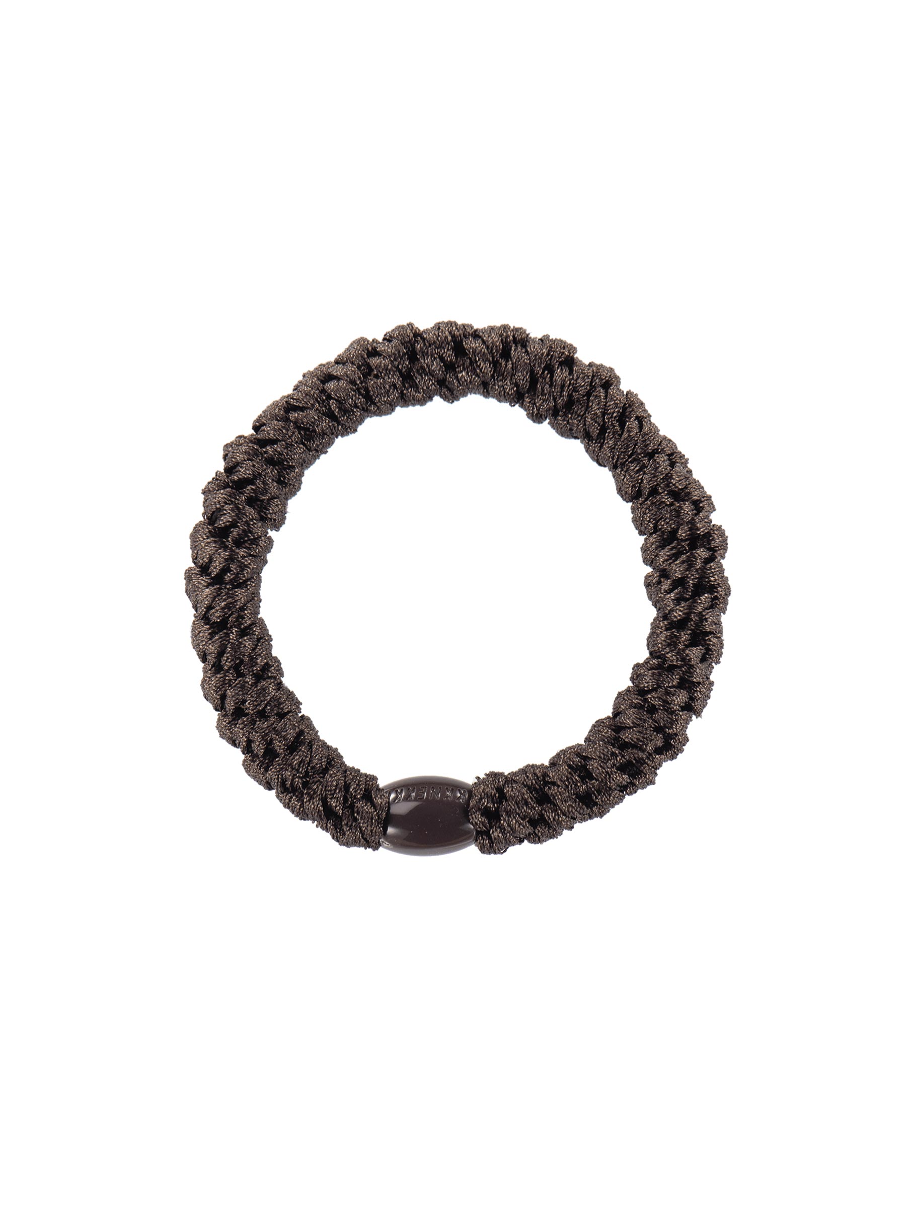 Dit bruine haarelastiek van KKNEKKI is zo’n fijne basic die je elke dag pakt. De herkenbare geweven structuur is zacht voor je haar en blijft mooi, ook bij vaak dragen en een drukke routine. En dankzij de subtiele kraal met merknaam weet je zeker dat je een originele te pakken hebt.