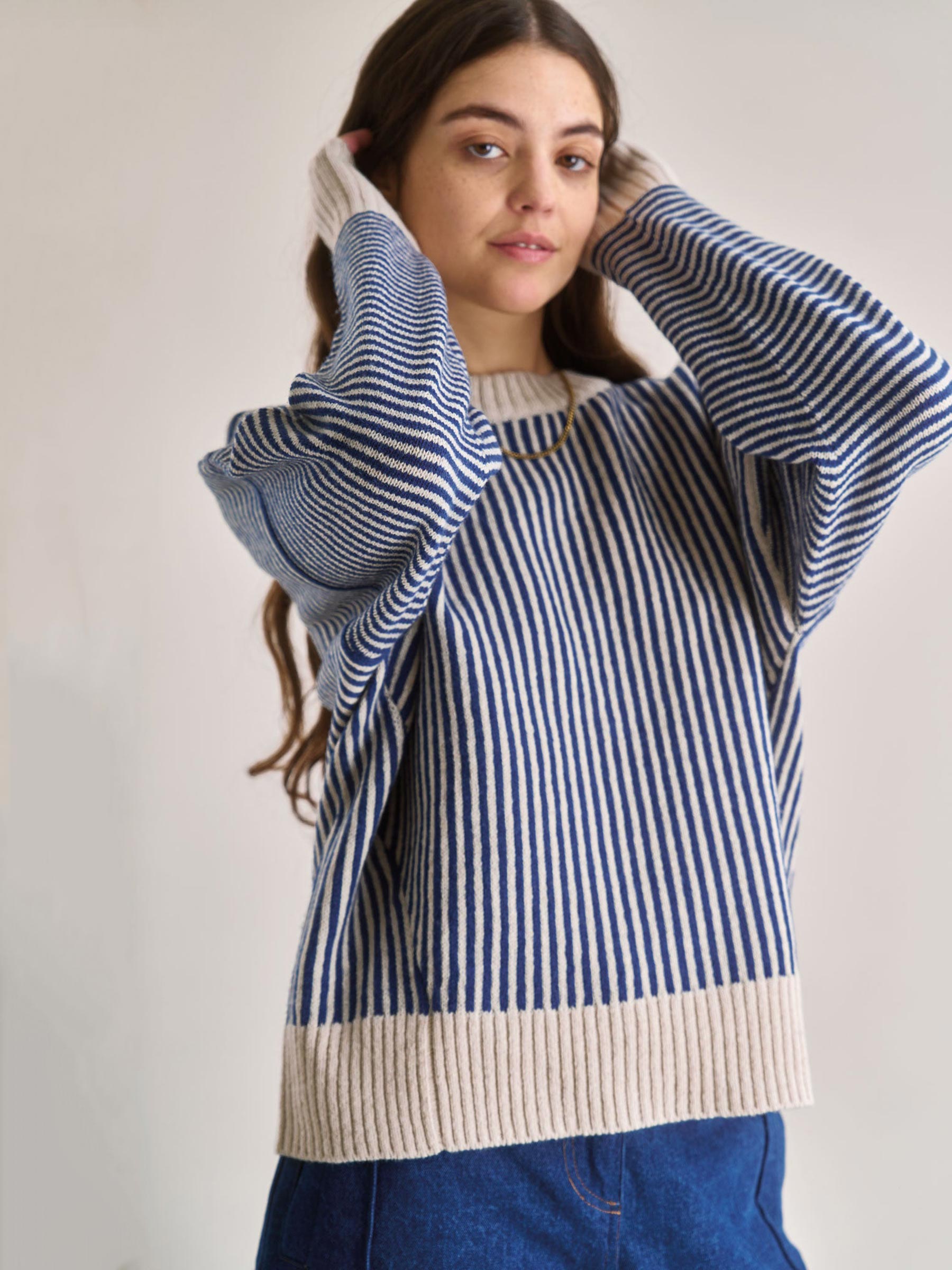 Dit blauw-gestreepte trui van Komono is er zo eentje waar je meteen blij van wordt. De losse fit en ribboorden zorgen voor een relaxte look en de combinatie van crème en navy geeft een frisse, tijdloze uitstraling. Draag met een jeans voor een easy everyday look of style met een pantalon voor iets meer contrast.