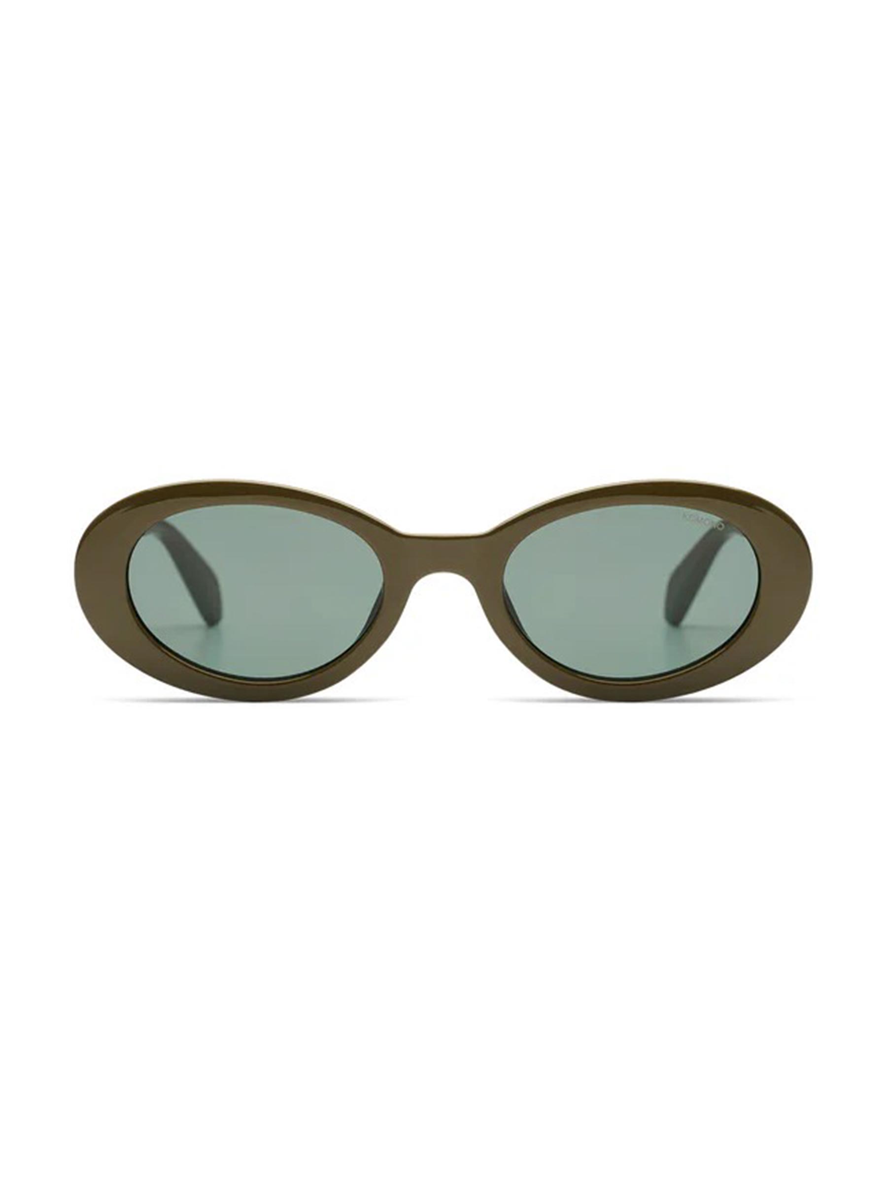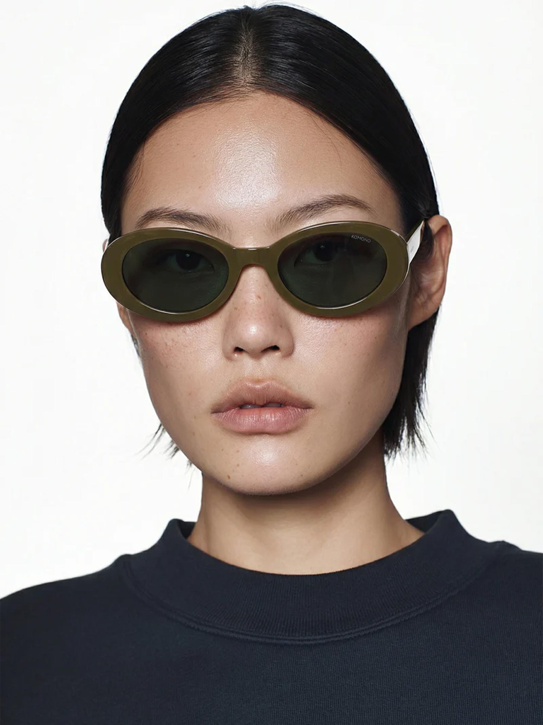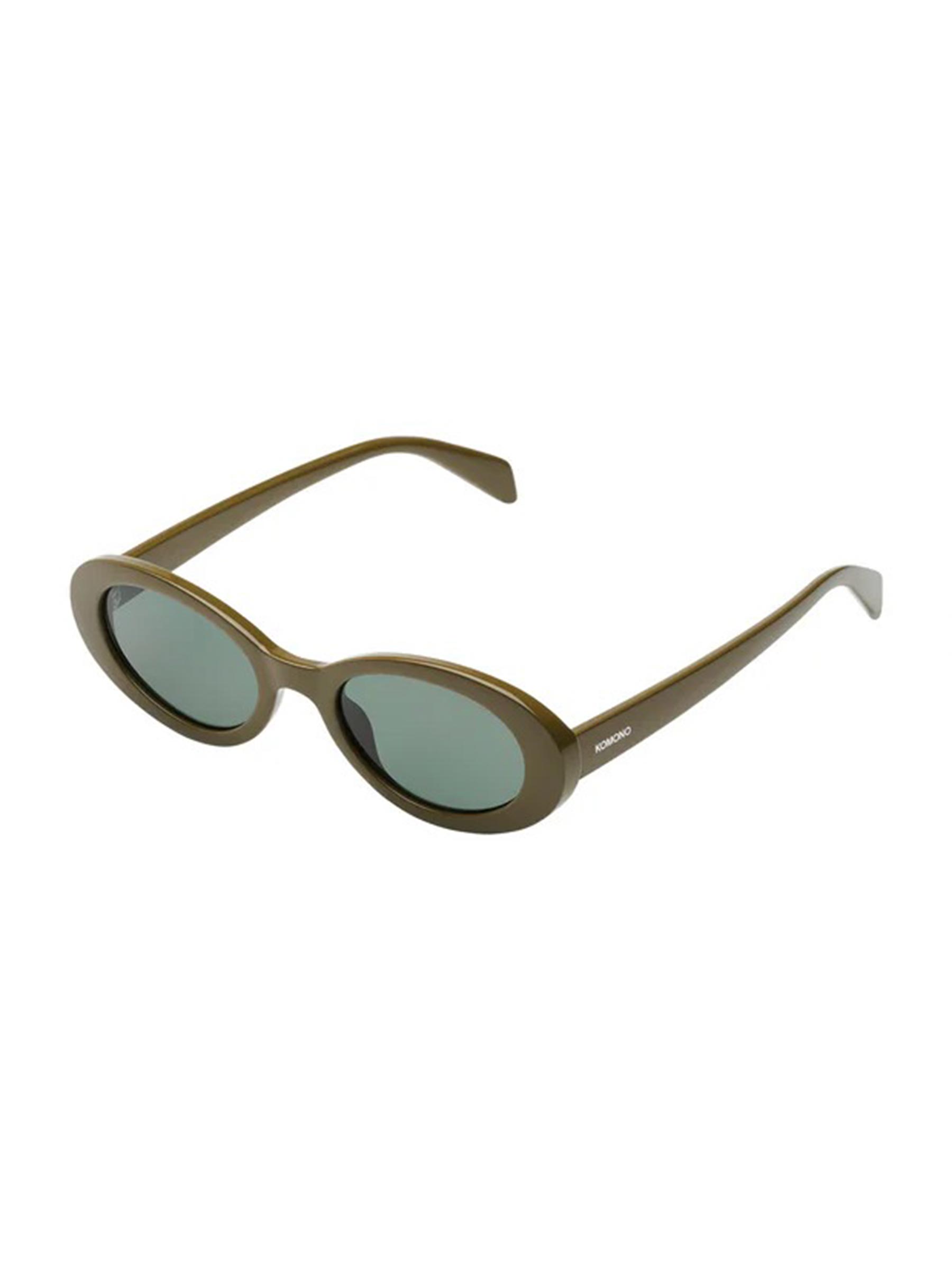 Deze warme zonnebril in donkergroen van KOMONO valt op door de lage, ovale vorm die je gezicht direct iets speels geeft. Het bio nylon montuur voelt licht en zit comfortabel, ook als je ze de hele dag draagt. KOMONO is een Belgisch merk dat duurzaamheid en minimalistisch design combineert zonder in te leveren op stijl.