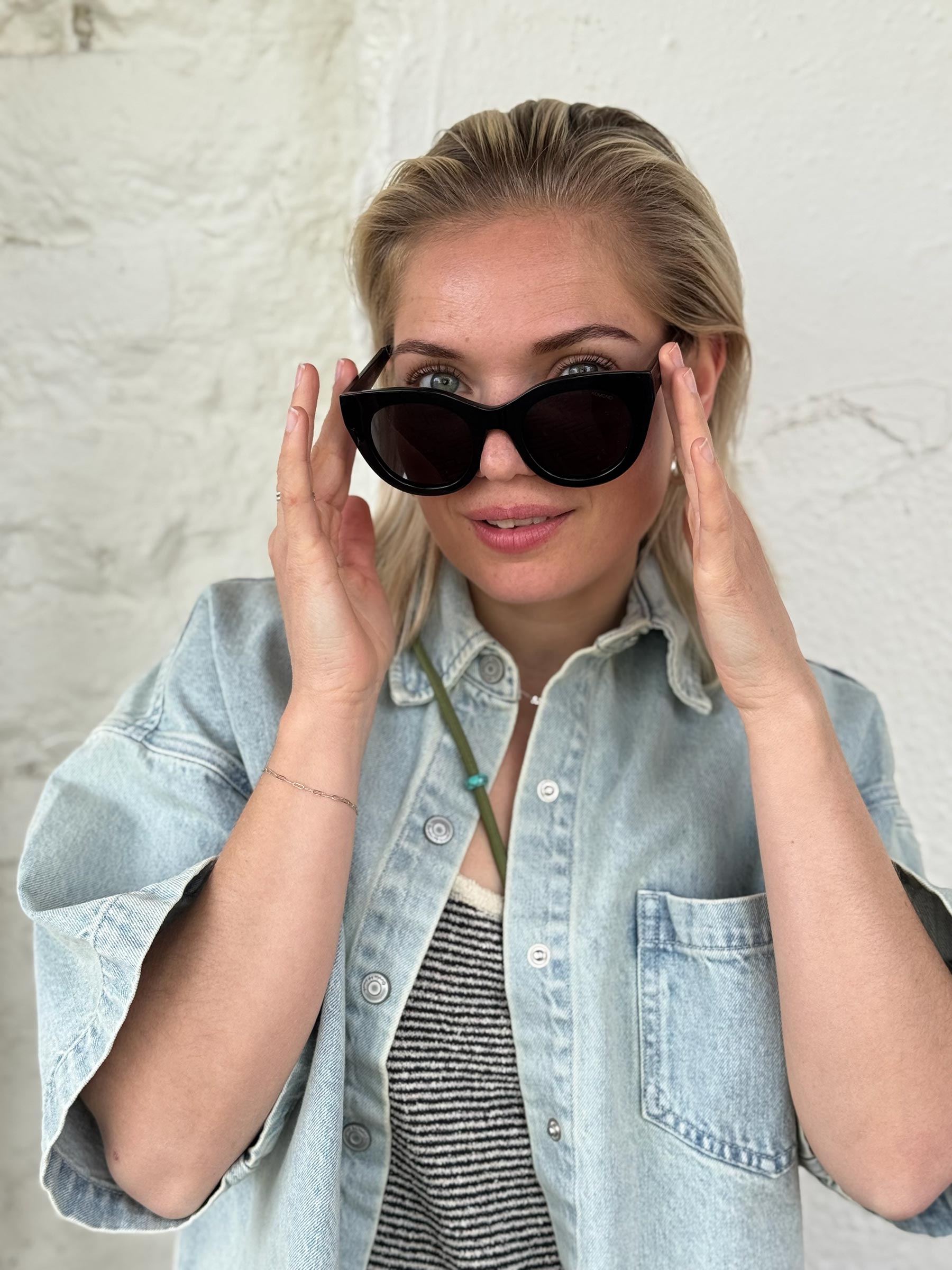 Sommige brillen hoef je niet uit te leggen. De zwarte cat eye zonnebril Louise Black van KOMONO is er eentje die je wilt toevoegen aan je outfit. Het volledig zwarte montuur met donkere glazen maakt van iedere outfit een statement.