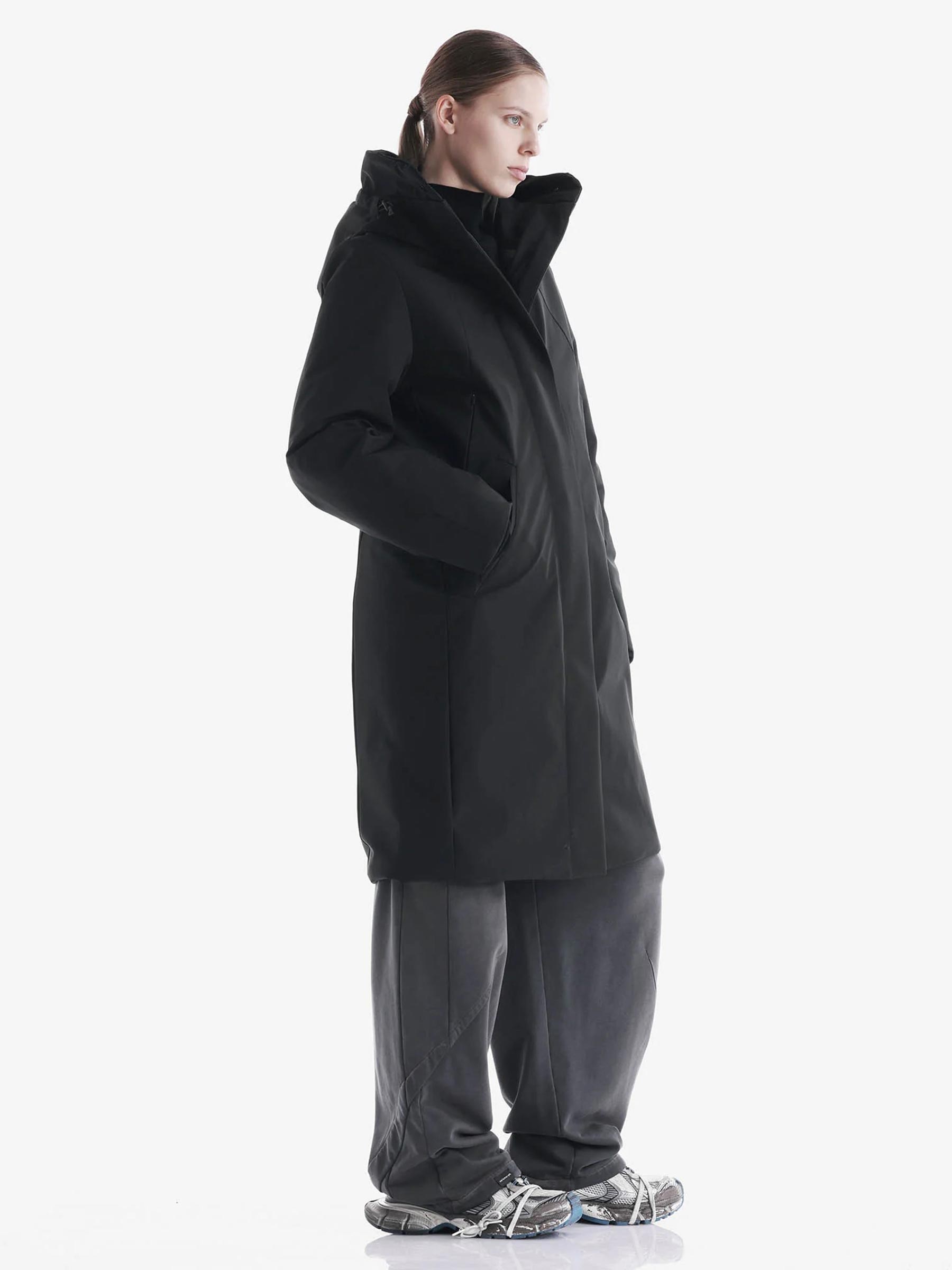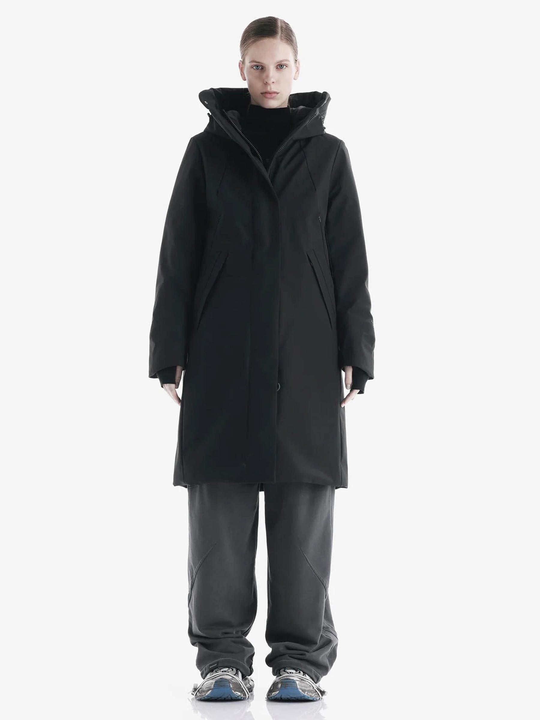 Deze zwarte Gaia parka van Krakatau is gemaakt van technisch materiaal met waterdichte getapete naden, zodat je beschermd bent tegen weer en wind. Dankzij het Heat Contouring™ systeem blijf je warm op precies de juiste plekken, terwijl de diepe capuchon en hoge kraag extra comfort bieden. De verborgen ritsen, magnetische zakken en reflecterende details maken dit een jas die praktisch én stijlvol is, waar je ook gaat.