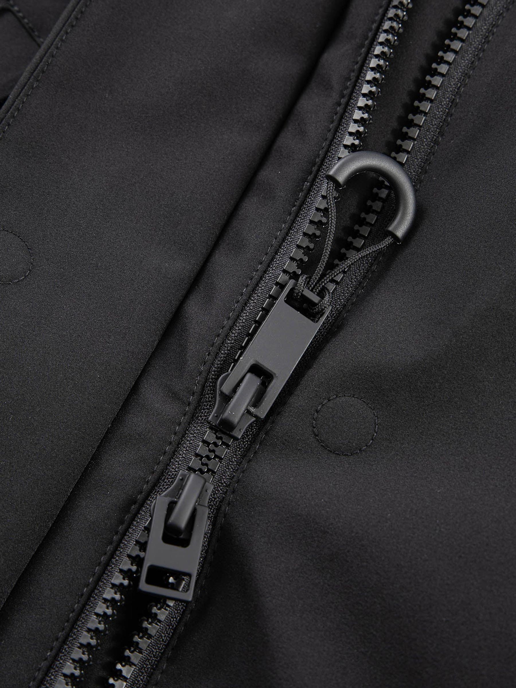 - Hoge kraag met diepe capuchon en verstevigde klep