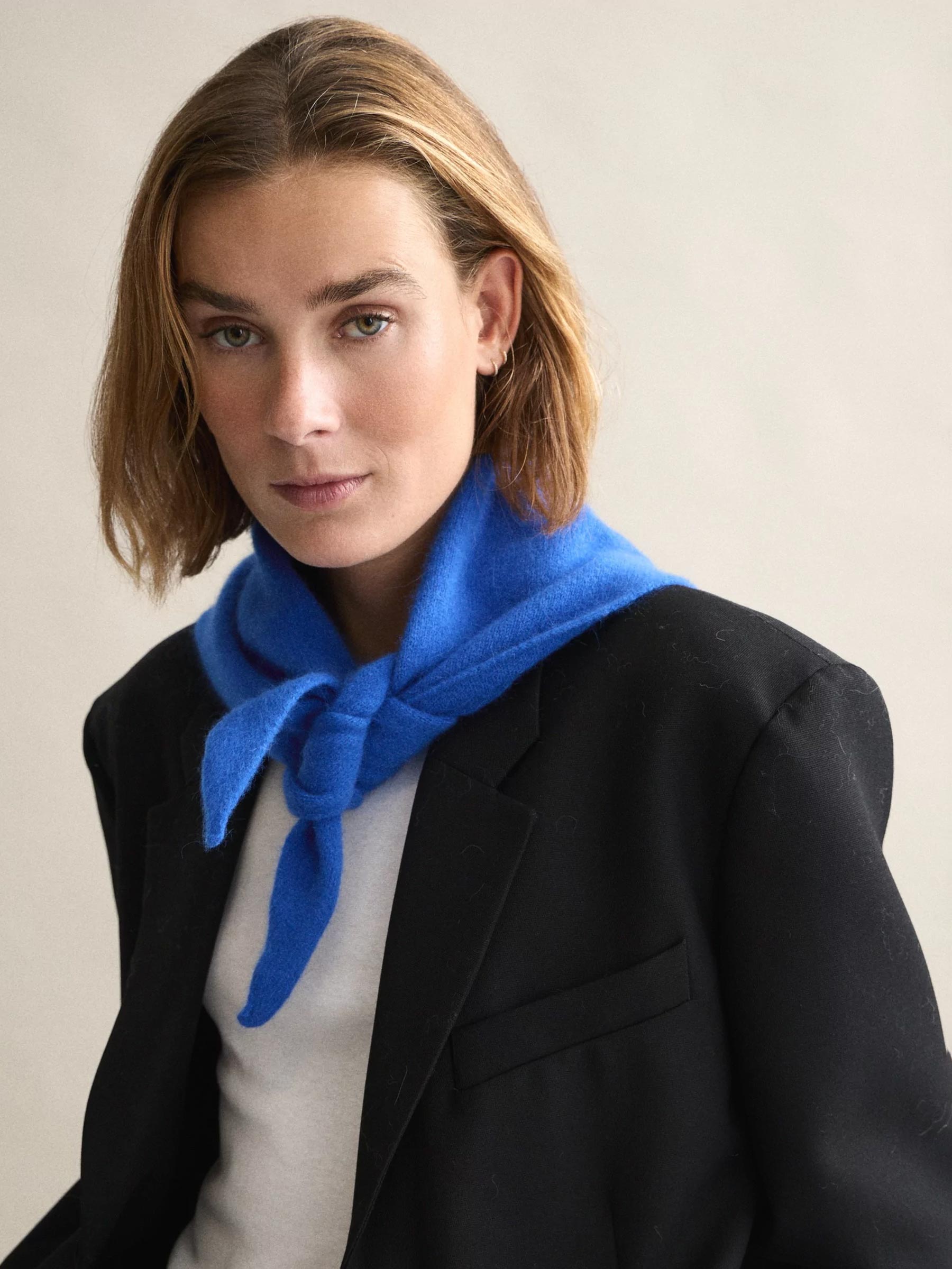 Deze blauwe sjaalbandana van Le Bonnet geeft je outfit meteen een frisse boost. De zachte wolmix voelt comfortabel aan en de opvallende royal azure tint maakt hem perfect om een basic look mee op te fleuren. Knoop hem nonchalant of draag hem klassiek voor een veelzijdige styling.