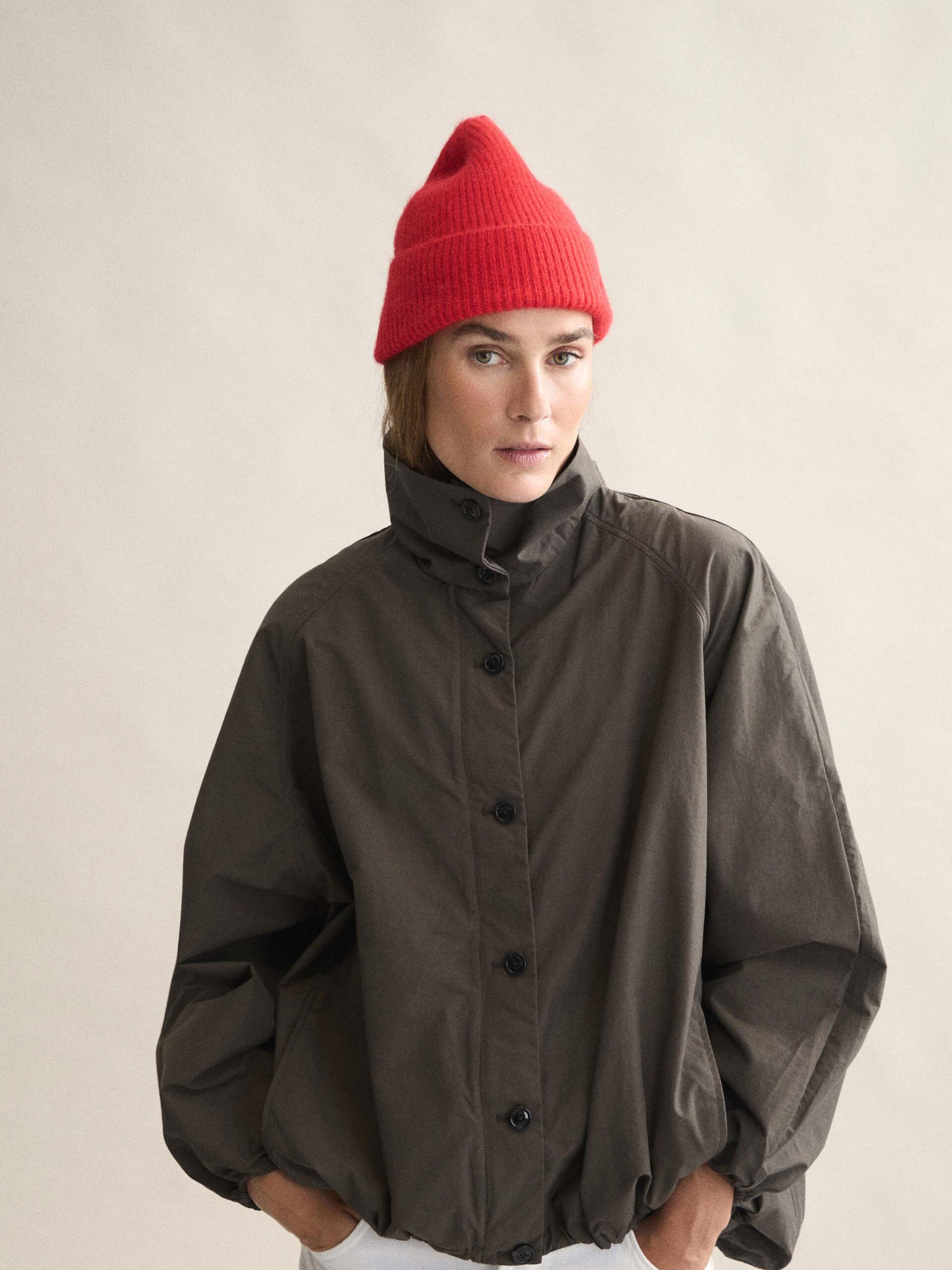 Deze rode beanie van Le Bonnet zorgt direct voor een fijne dosis kleur op koude dagen. Gemaakt in Schotland van een hoogwaardige wolblend met Caregora-angora, zacht, warm en van een kwaliteit die jarenlang mooi blijft zonder te pillen.