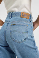 Deze blauwe wide leg jeans van Lee valt op door de brede omslag aan de pijpen en de klassieke denim look. Met een hoge taille en rechte wijde pasvorm zit hij comfortabel en geeft hij je outfit een stoere uitstraling. Perfect te dragen met laarzen en een knit of casual met sneakers.