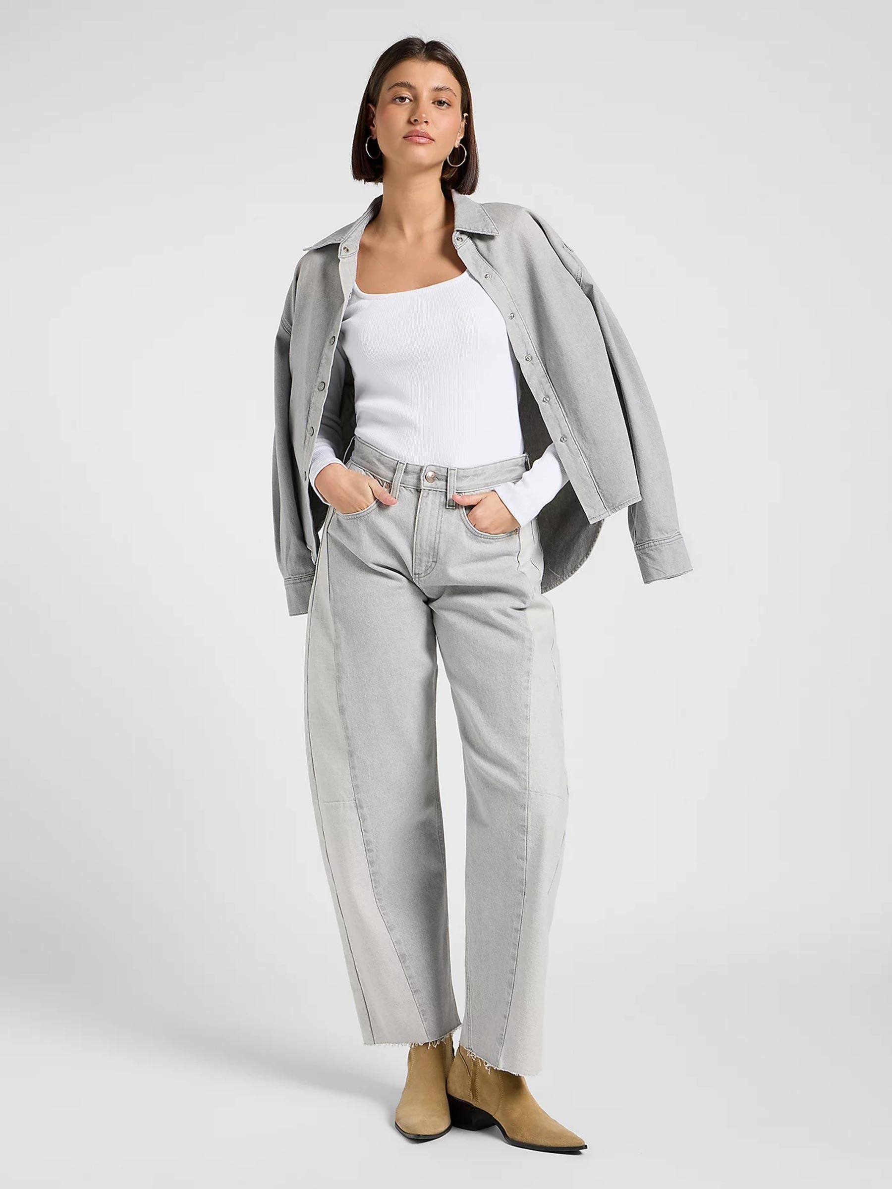 Deze lichtgrijze jeans van Lee is perfect als je houdt van een stoere, losse fit met karakter. De Rider Barrel heeft een high waist met een subtiel two-tone effect dat de look net wat spannender maakt. De onafgewerkte zoom geeft de jeans een casual randje - tof met een witte blouse of gebreide trui.