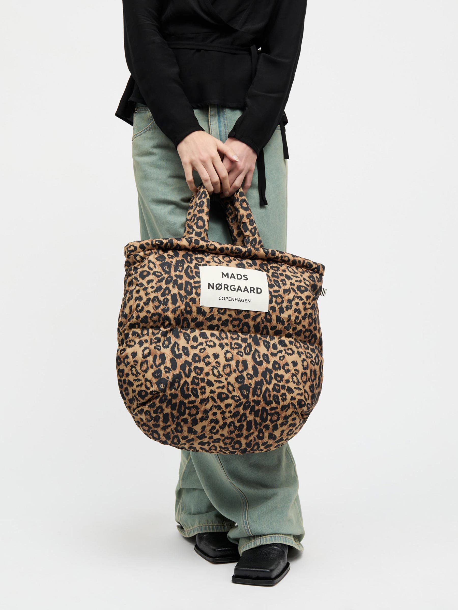 Deze puffer tas met panterprint van Mads Nørgaard tilt je outfit meteen naar een hoger level. De shopper is zacht en luchtig, met een gewatteerde puffer-stijl die zowel stoer als playful oogt. Met twee sets hengsels in verschillende lengtes, een handig binnenvak en de opvallende print is dit je nieuwe go-to tas.