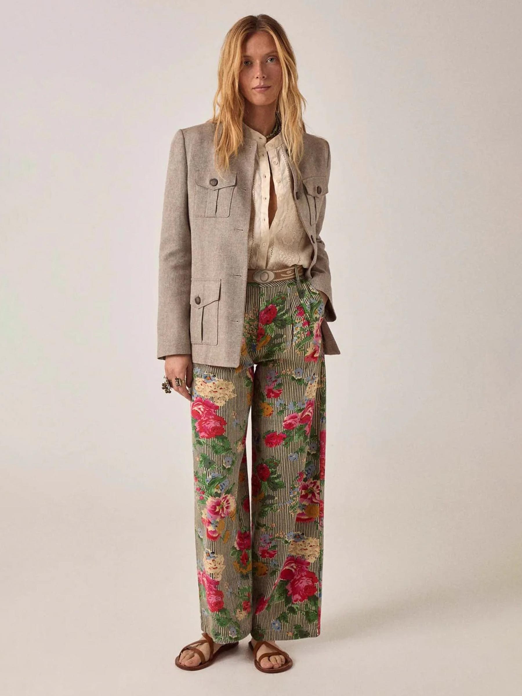 Stop hem in een gebloemde broek of rok voor een boho-look met allure, of draag hem open over een witte bandeau. Een brede geweven riem om de taille en een paar vintage-geïnspireerde sieraden, en je bent klaar.