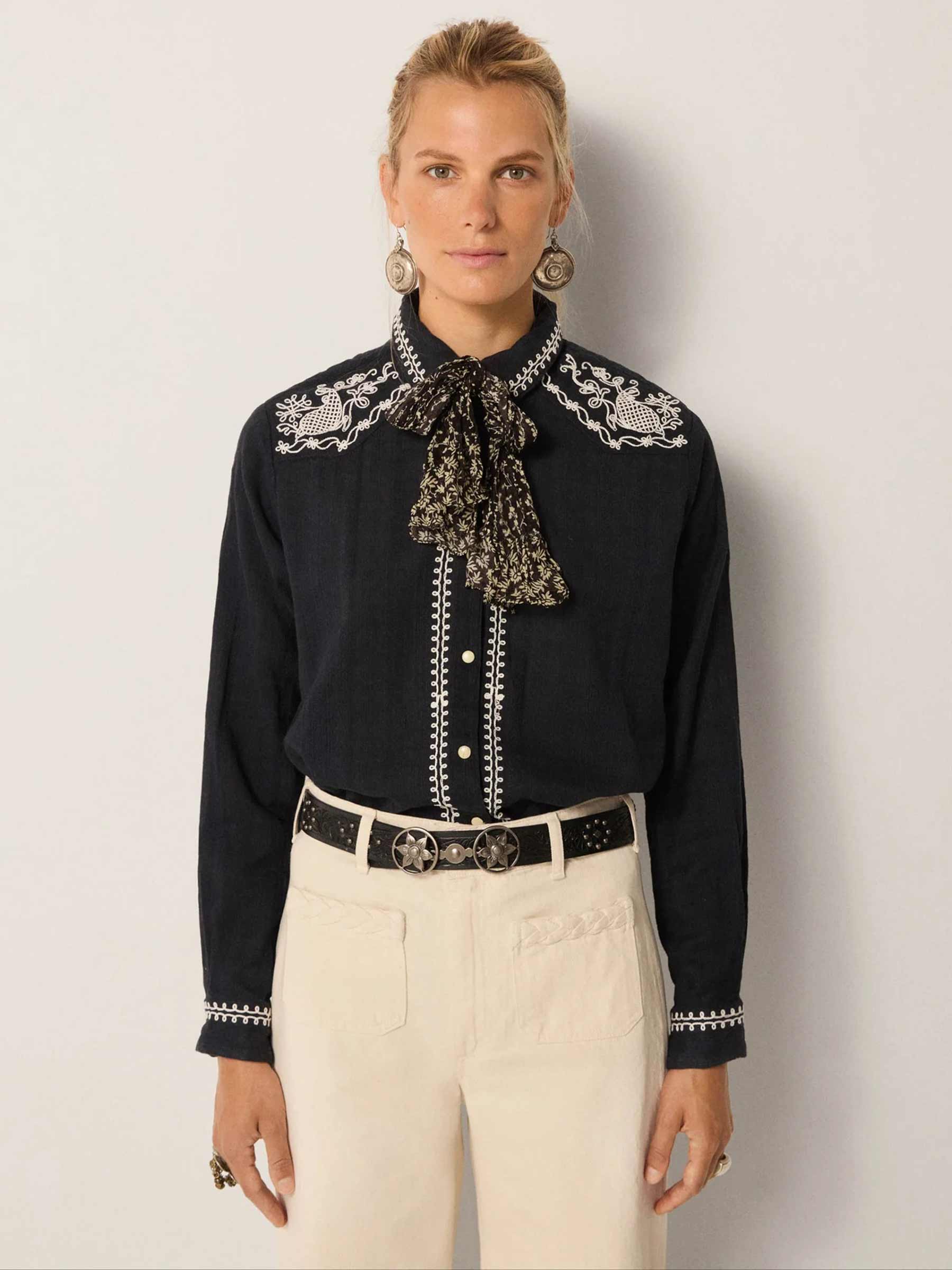 Zwarte blouse met embroidery charro