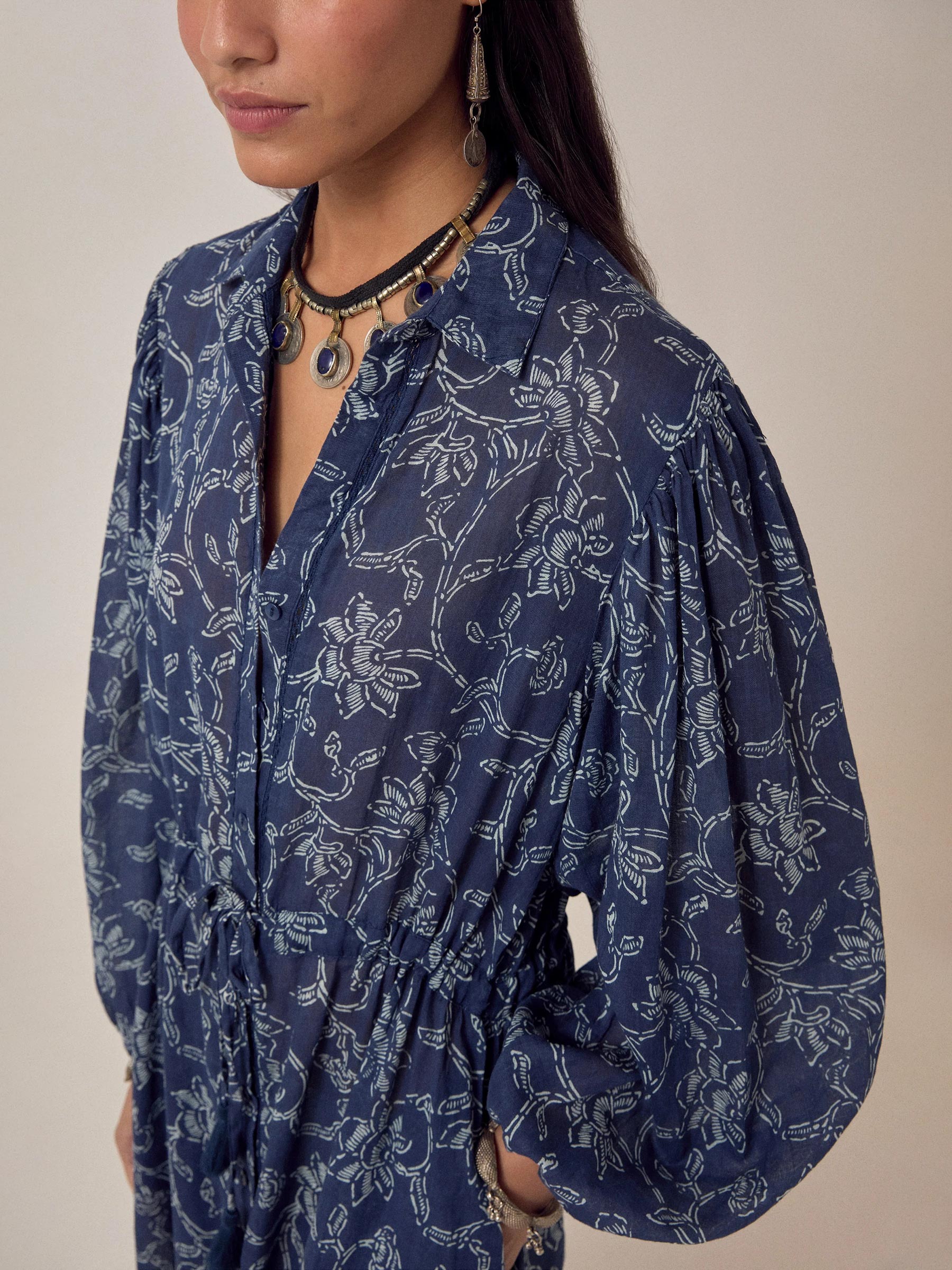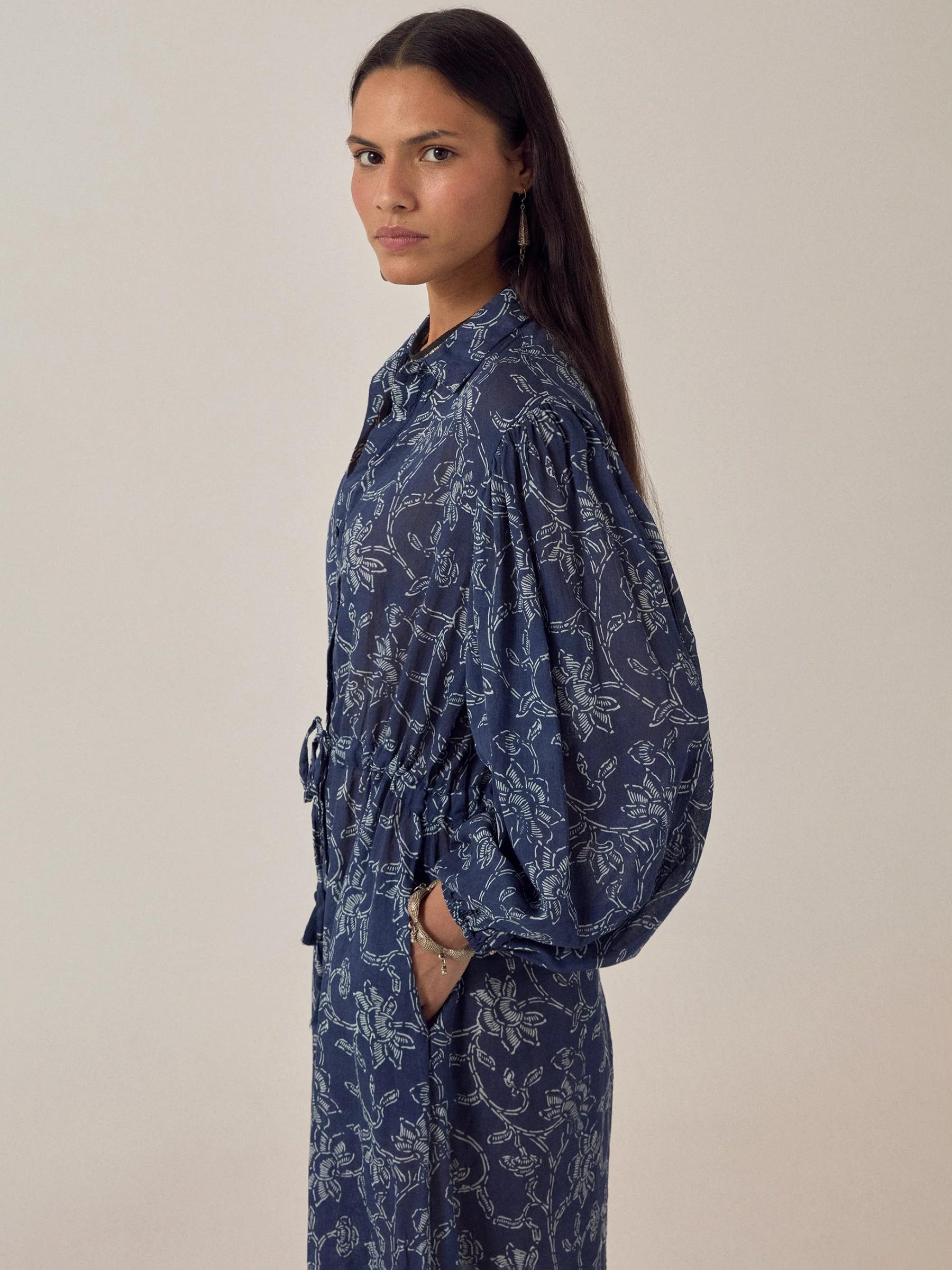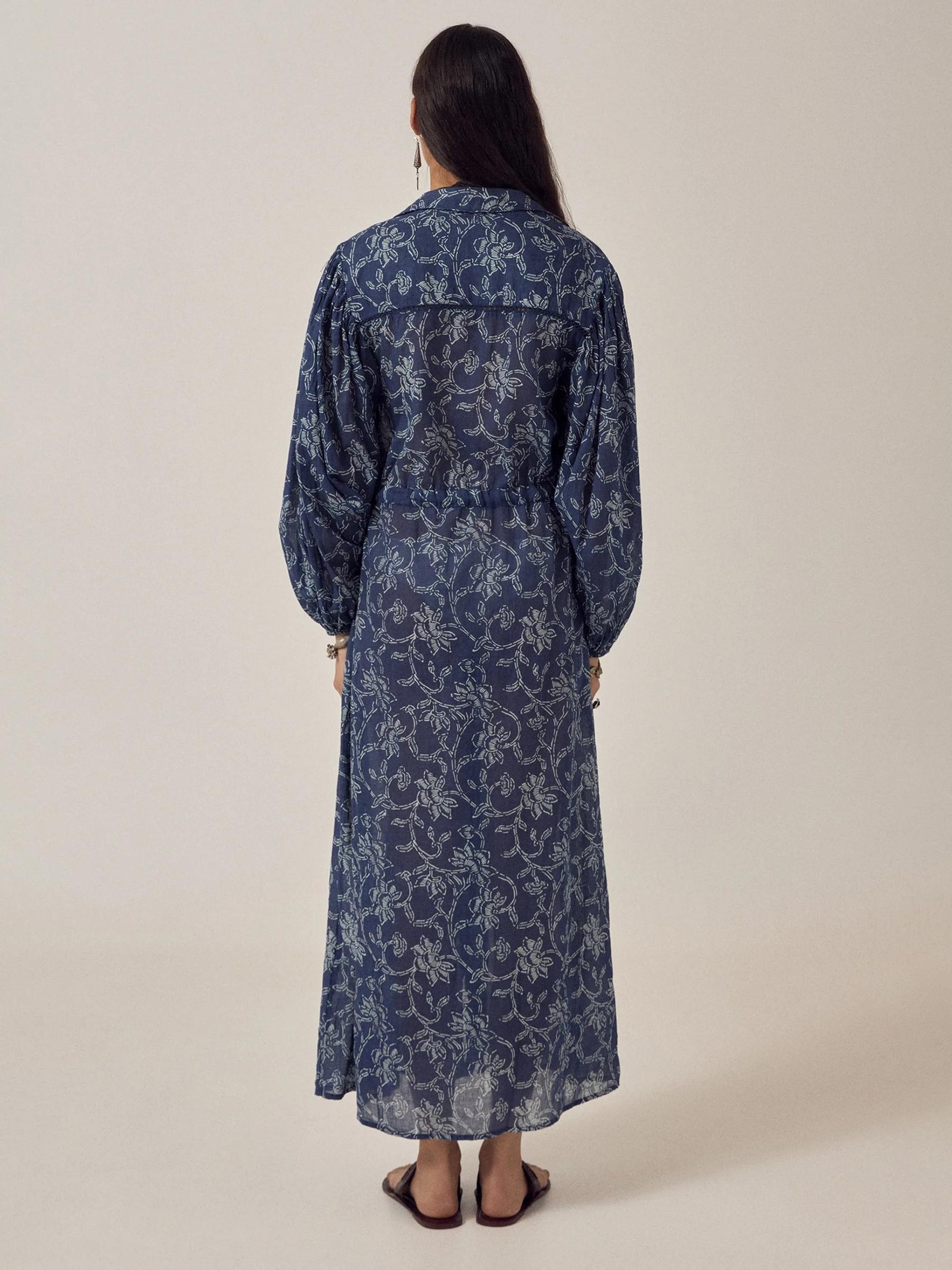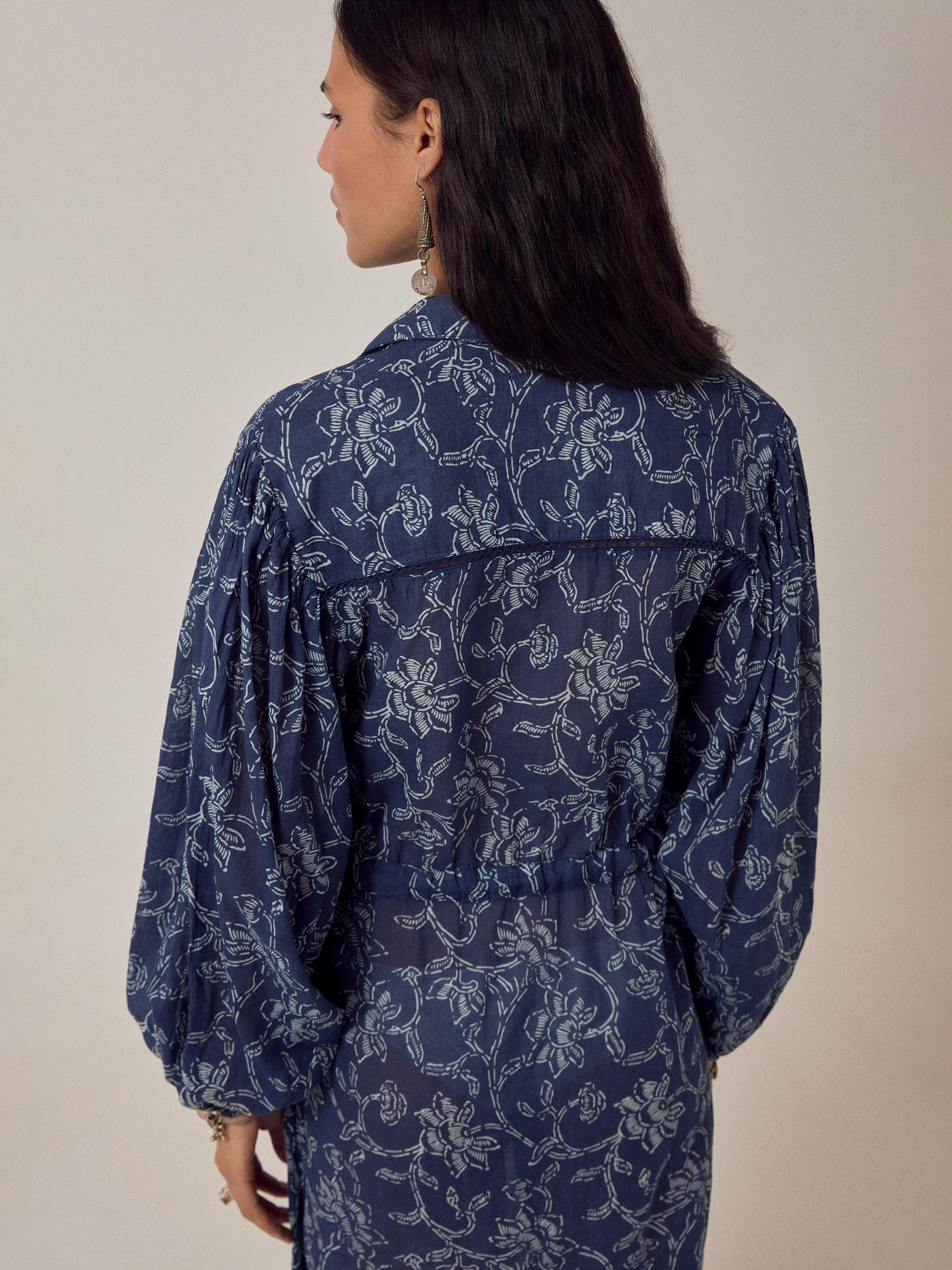 De indigoblauwe Freya dress van Maison Hotel is een luchtige maxi jurk van 100% katoen met een grafische witte bloemenprint die over de hele stof loopt. Het koord op de taille geef je de keuze: ingetrokken voor wat meer shape, of losjes gelaten voor een relaxte look. Een jurk die je de hele dag draagt zonder dat je er twee keer over nadenkt.