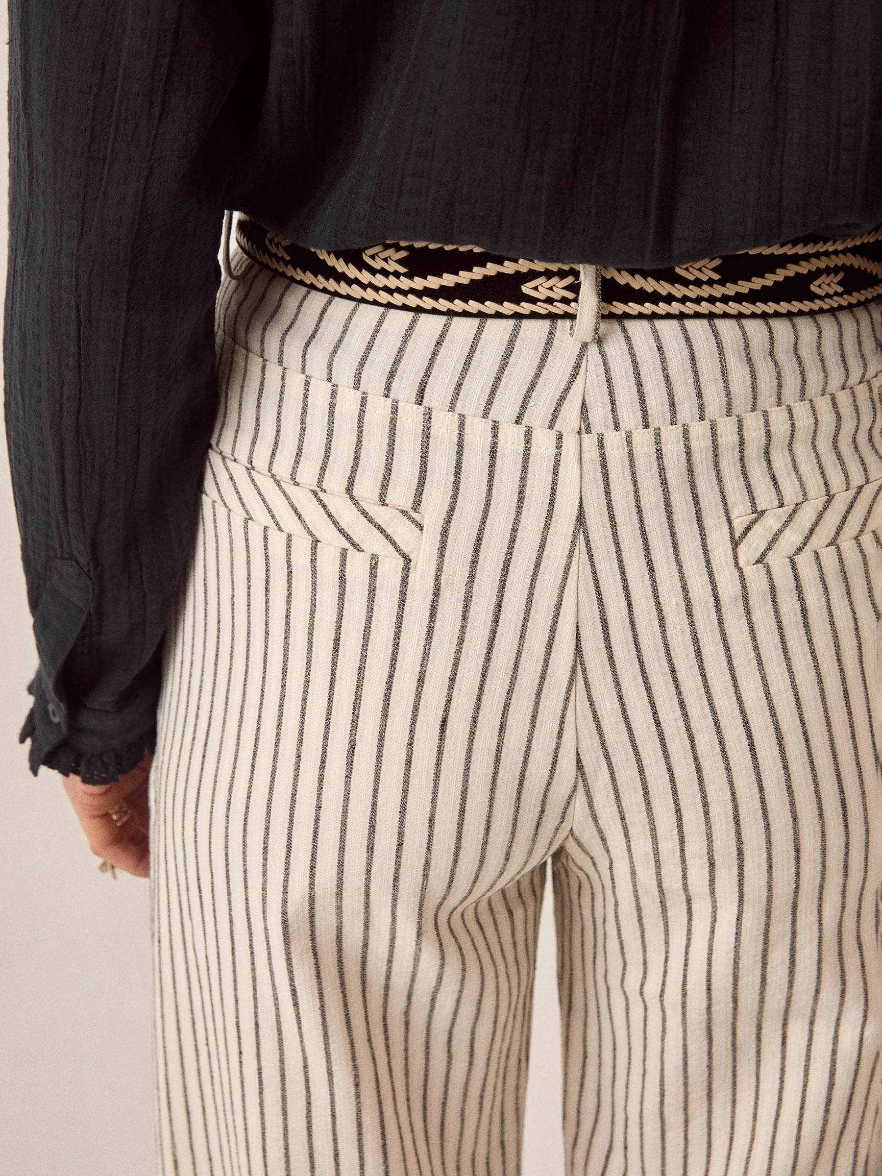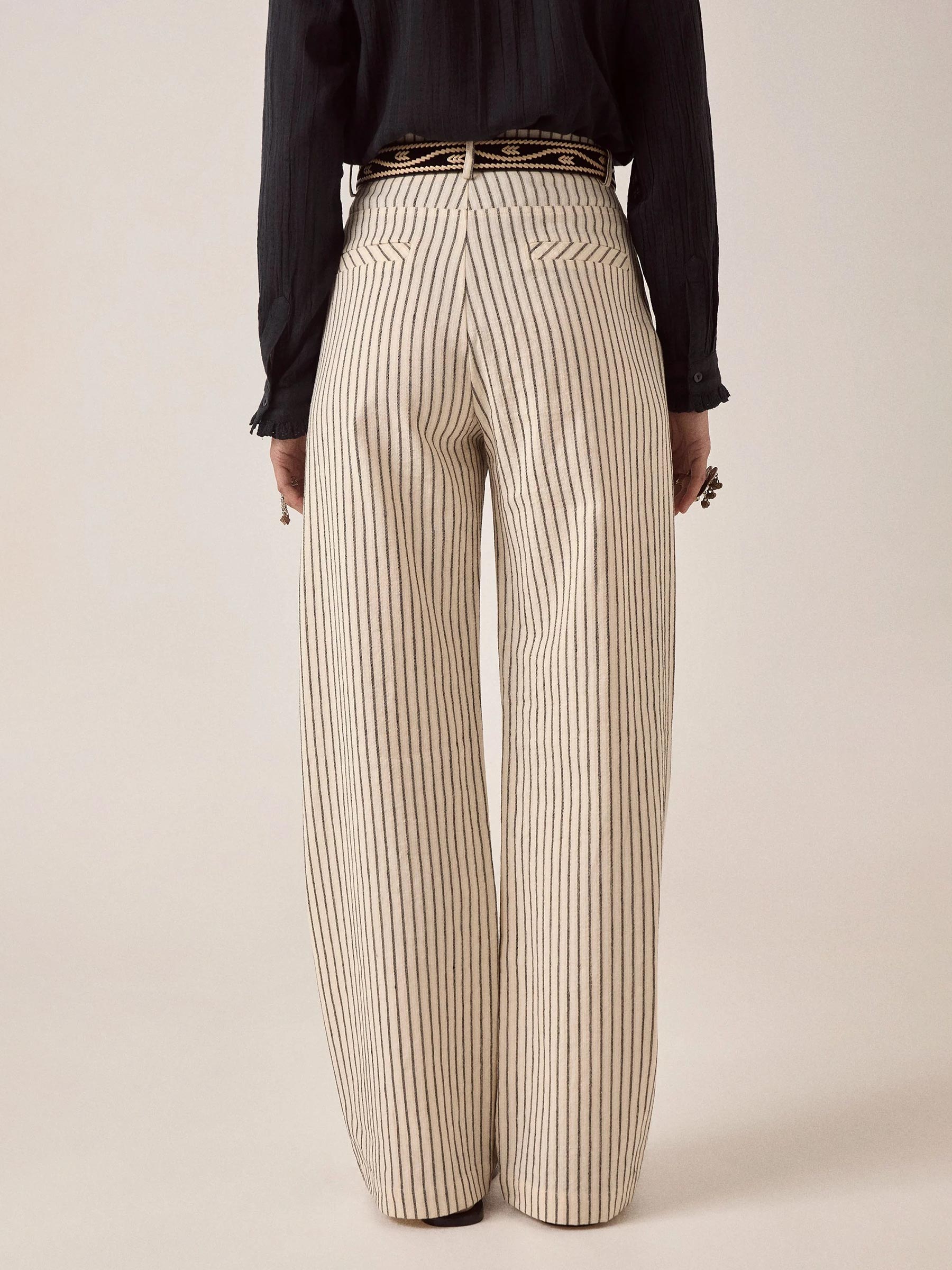 - Crème wide leg broek met donkere verticale strepen