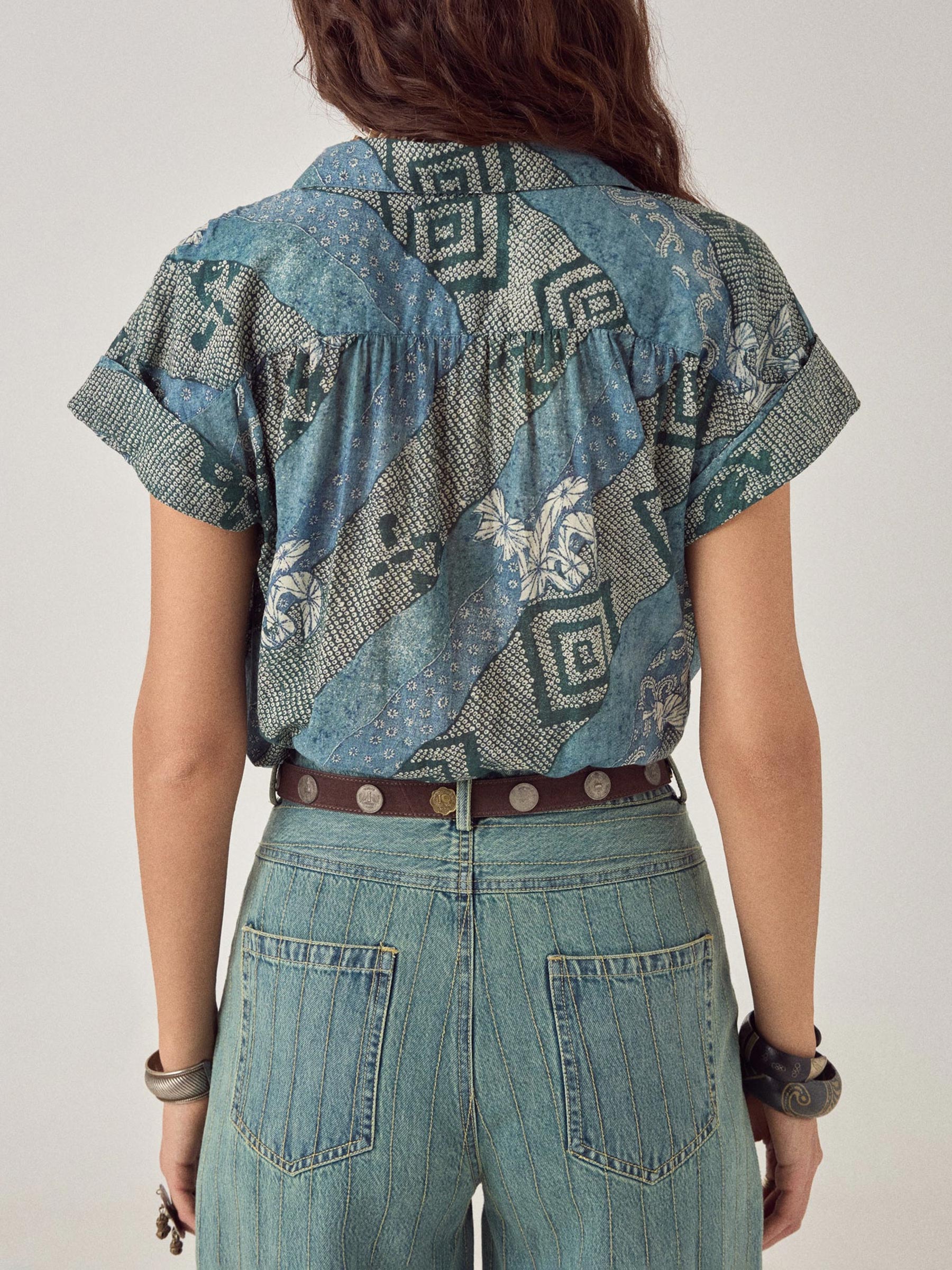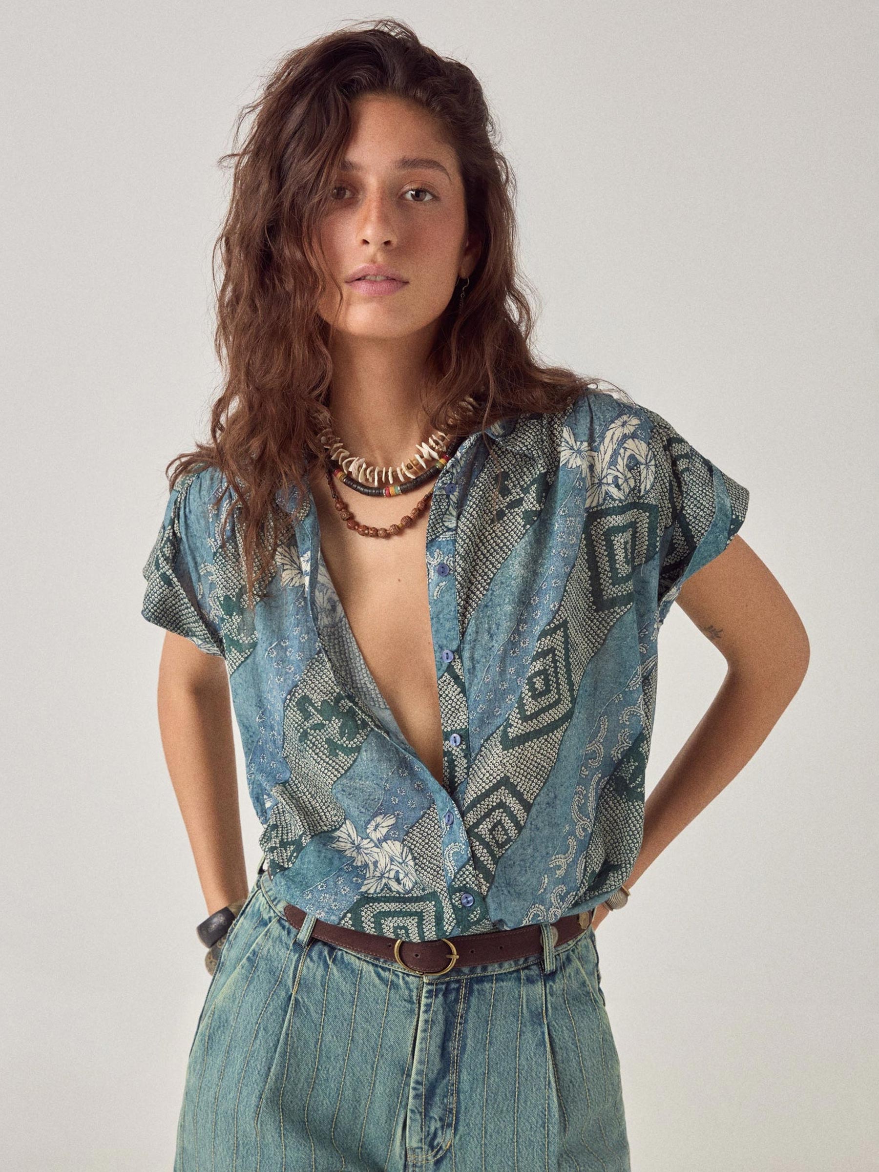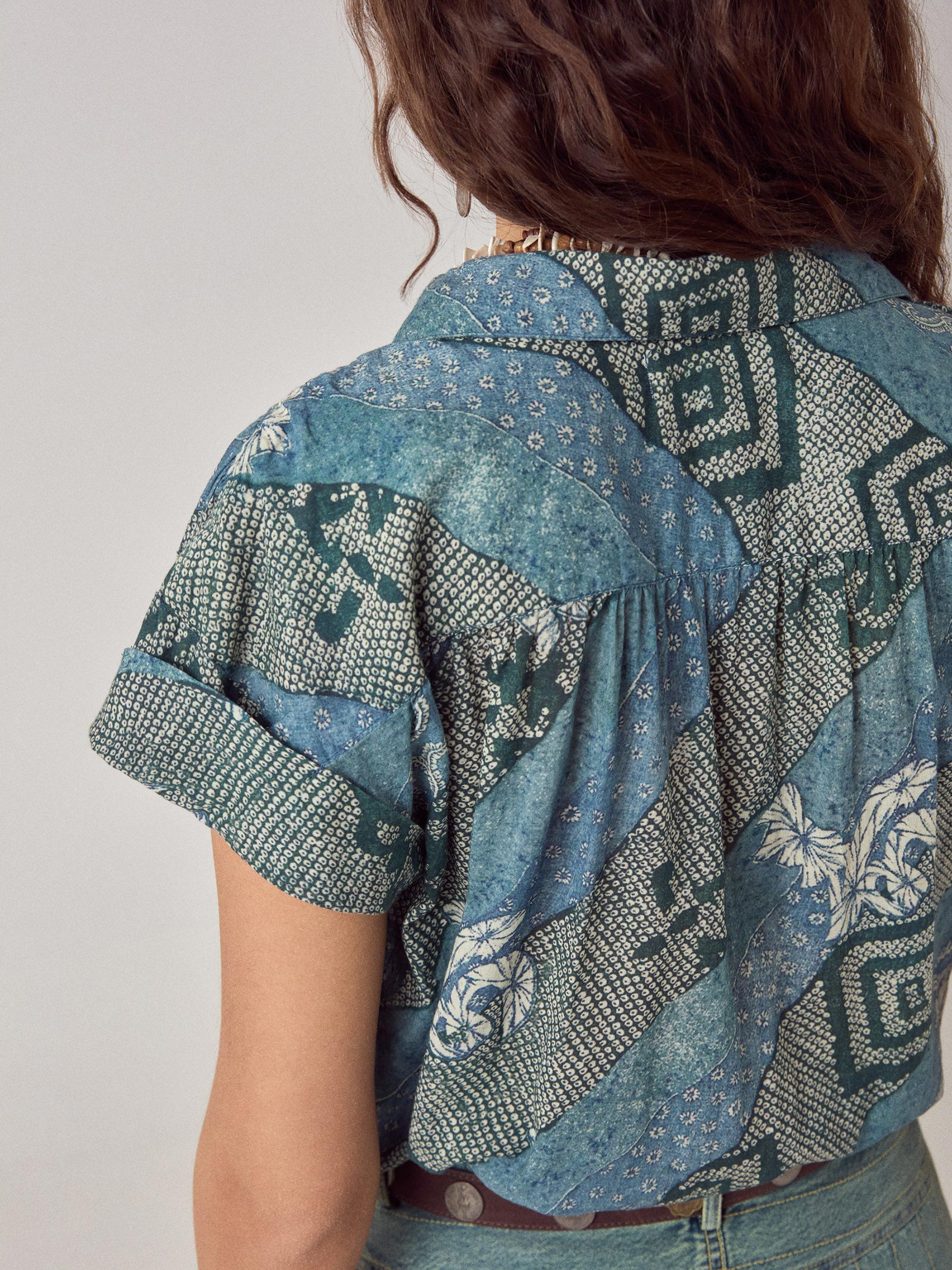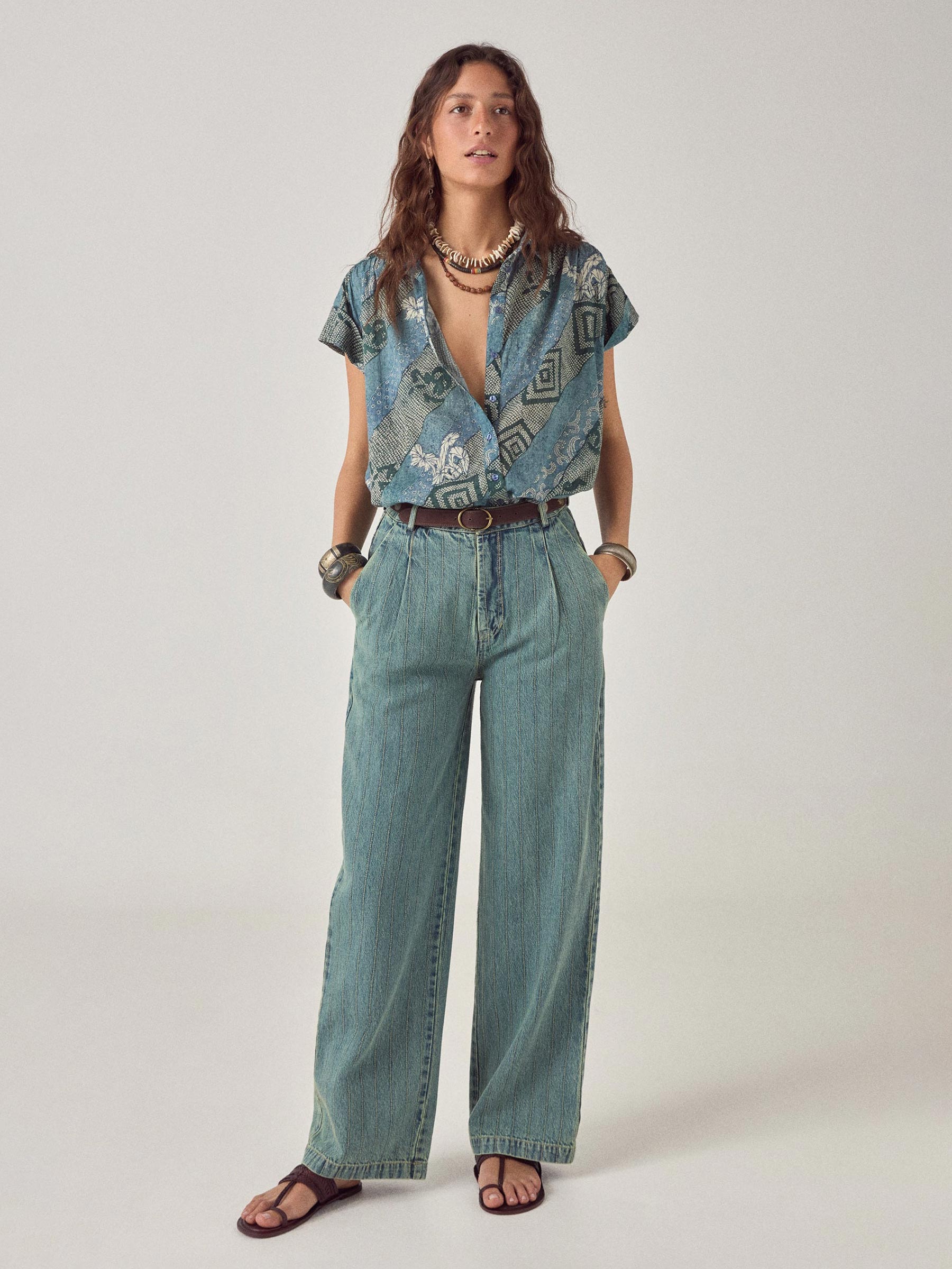 Draag hem dichtgeknoopt met een hoge taille broek en een ceintuur, of laat hem open vallen over een eenvoudig topje. Op een witte linnen broek is het een complete look die meegaat van markt tot terras.