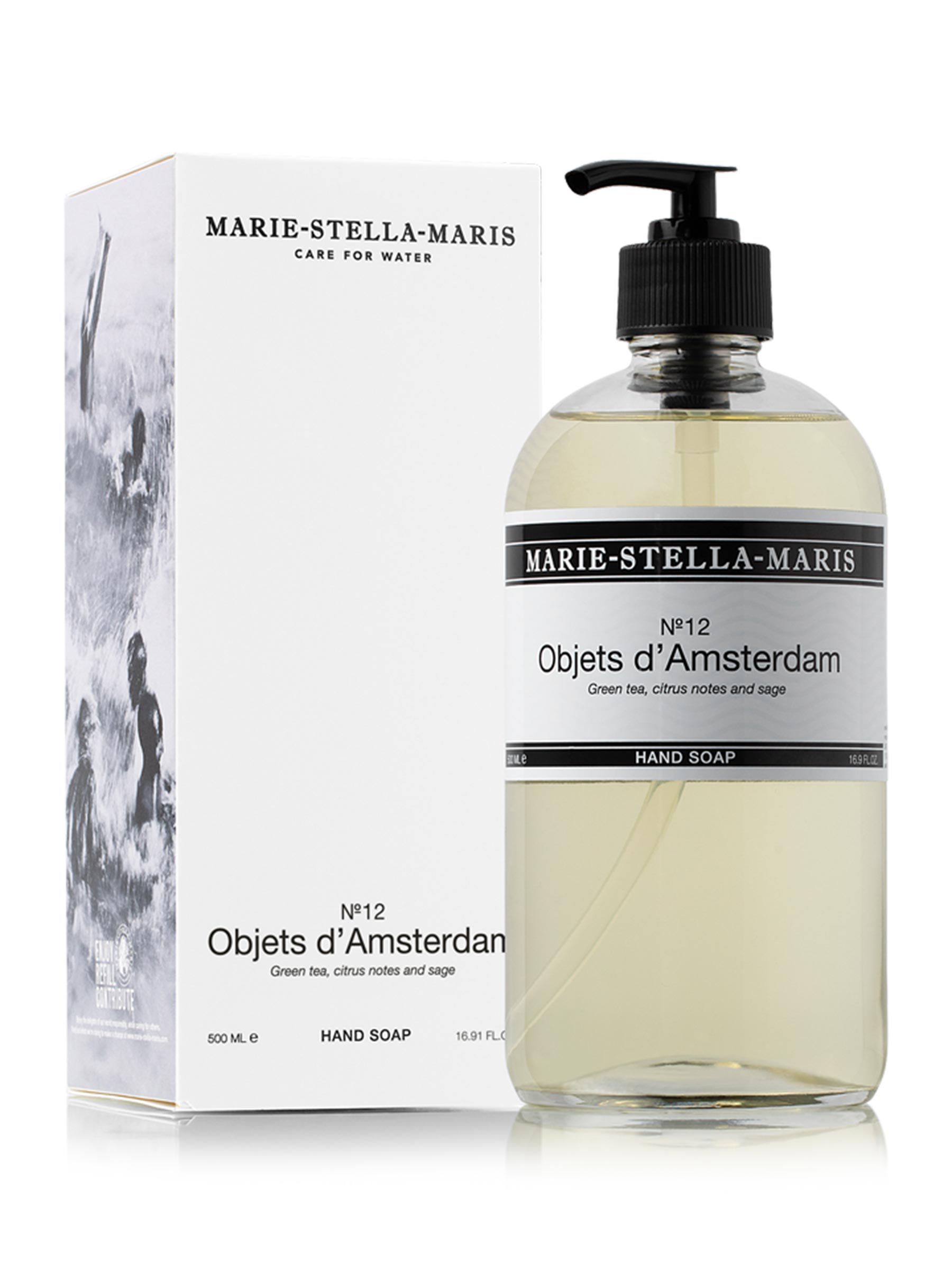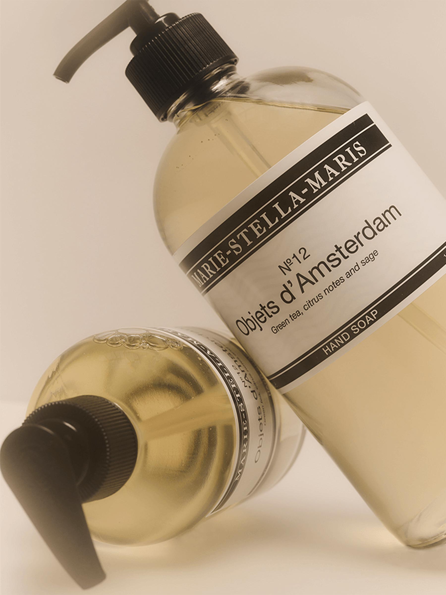 Een frisse boost bij elke wasbeurt. De handzeep van Marie-Stella-Maris in de geur Objets d’Amsterdam combineert groene thee, citrus en salie voor een energieke en schone geur ervaring. Perfect voor in de keuken, badkamer of naast de wastafel.
