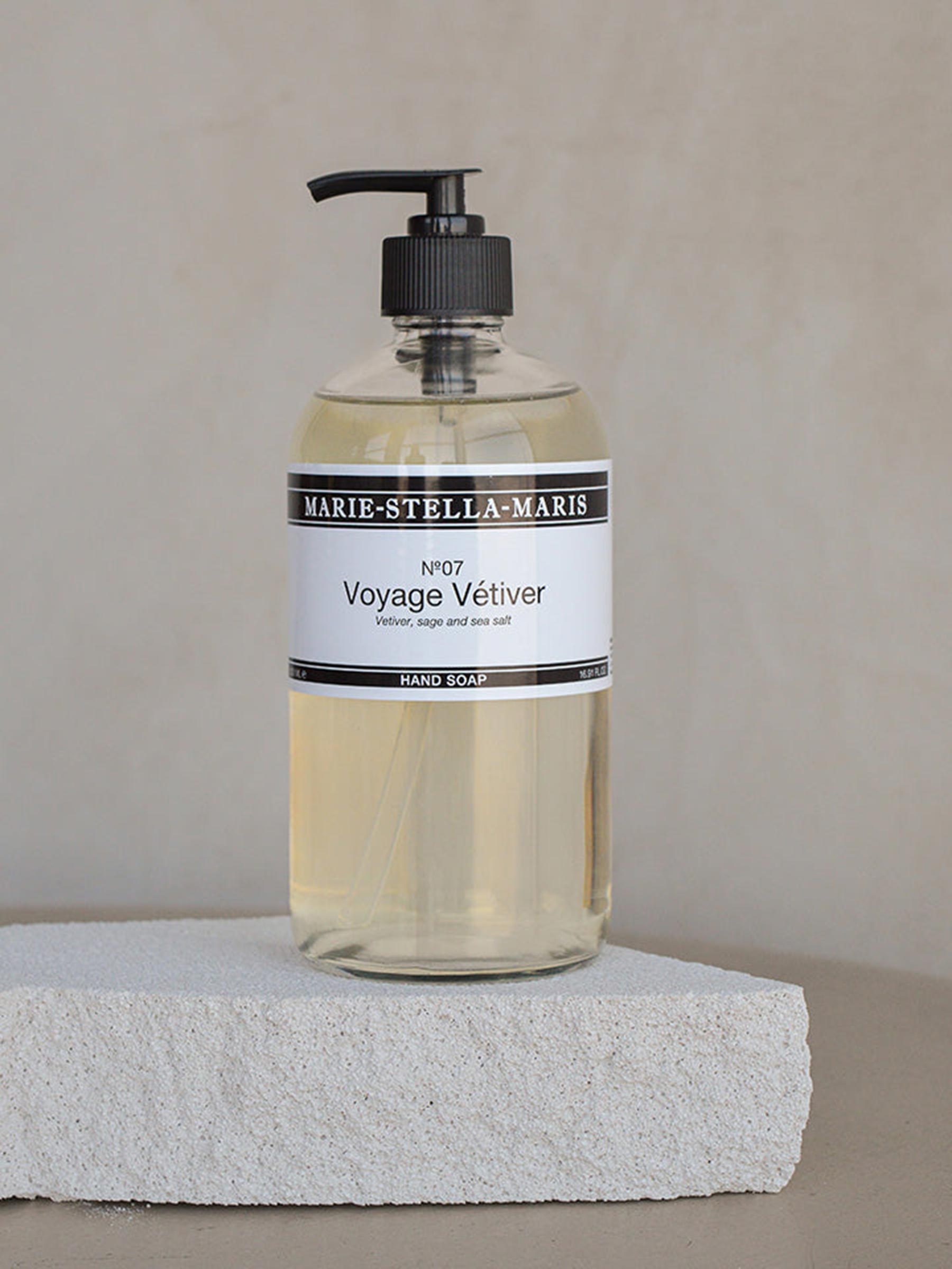 Deze Hand Soap van Marie Stella Maris maakt van handen wassen een klein genietmoment. De frisse geur van vetiver, salie en zeezout brengt een kalme strandachtige sfeer in huis, terwijl je huid schoon en gehydrateerd blijft. De navulbare glazen fles is duurzaam ontworpen en helpt je om afval én CO2-uitstoot te verminderen.