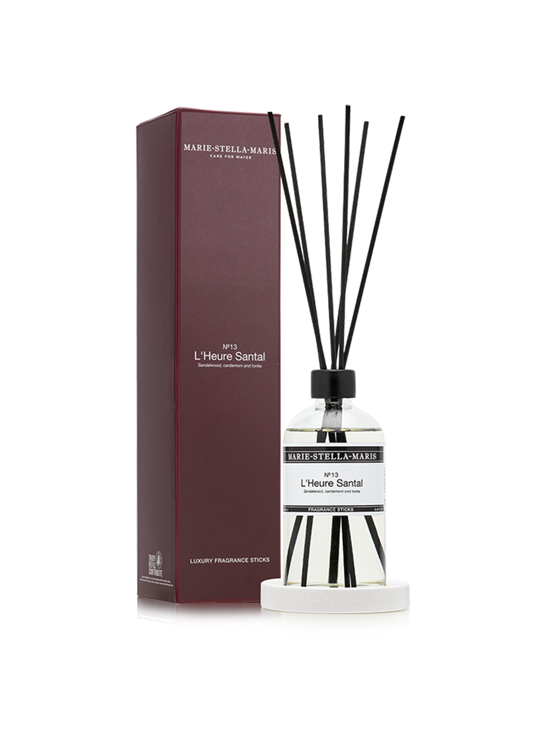 Deze geurstokjes van Marie Stella Maris brengen direct sfeer in huis. De limited edition geur No.13 L’Heure Santal vult je ruimte met warme tonen van sandelhout, kardemom en tonkaboon. Dankzij de elegante coaster presenteer je de flacon als een stijlvol detail in je interieur.