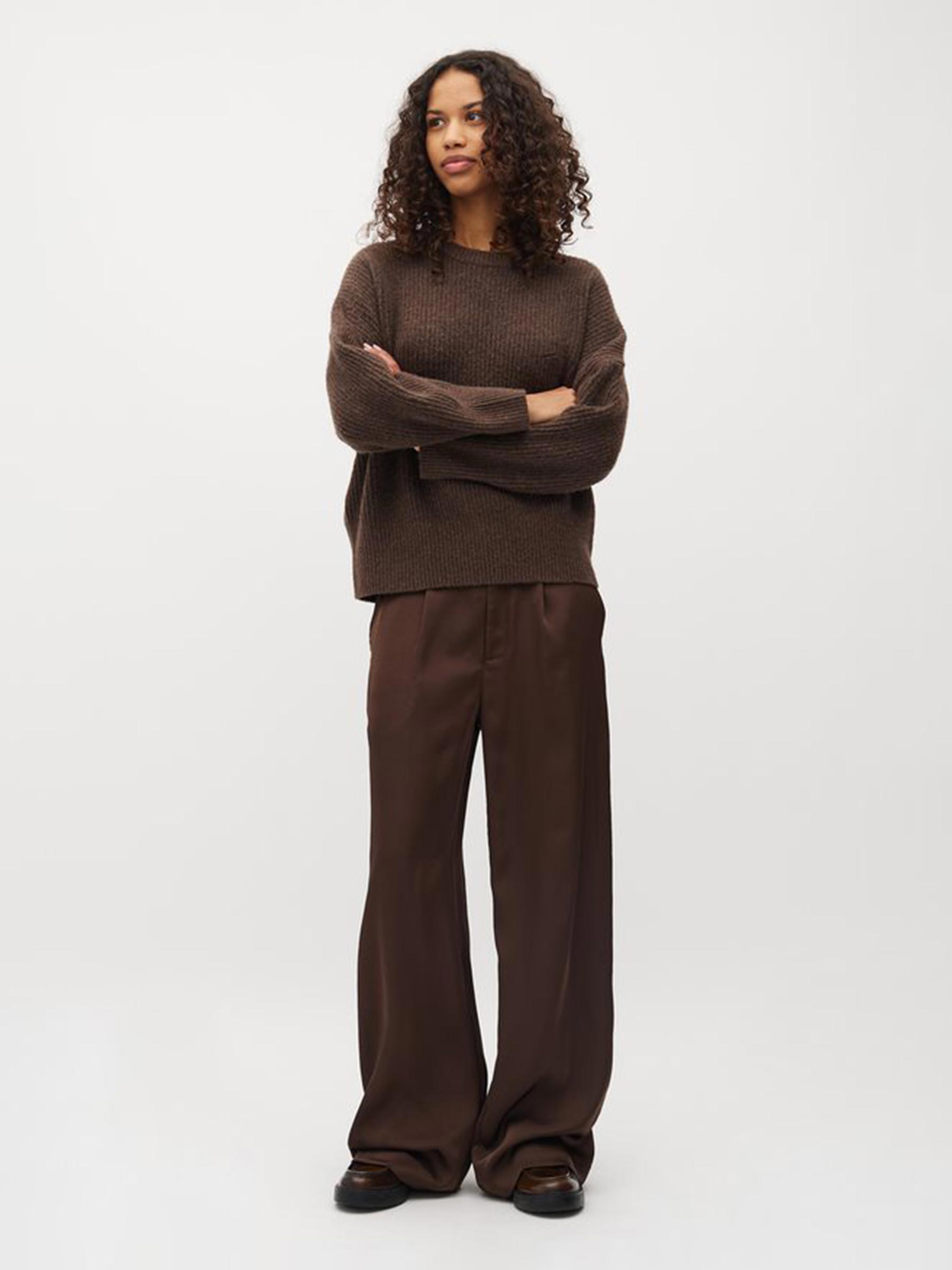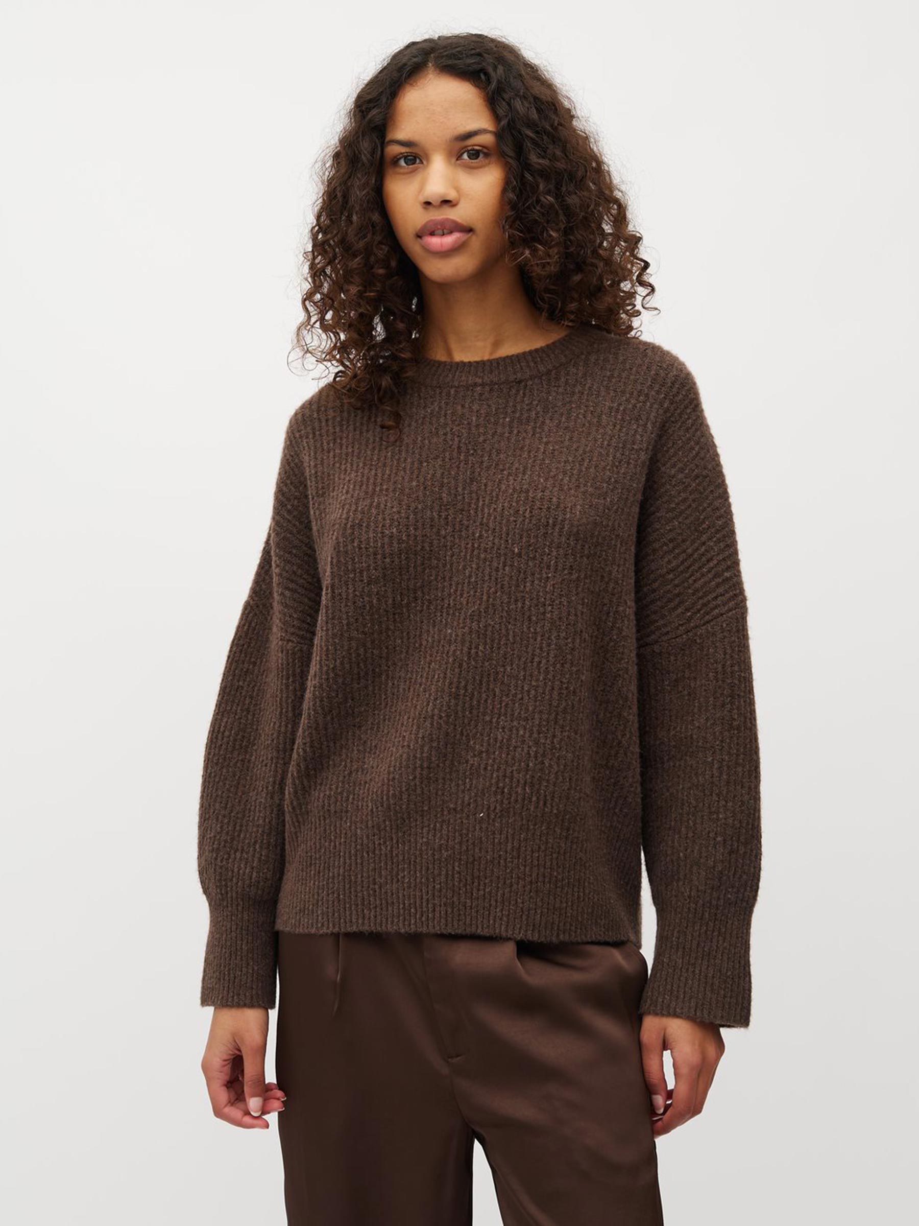De donkerbruine trui van Mbym is een comfy essential die je overal bij aantrekt. Het ribbreisel en de relaxte fit geven hem een moderne uitstraling en de rijke kleur maakt hem perfect voor het najaar. Wees de trend voor en draag hem in een full brown look, of combineer met een stoere jeans.