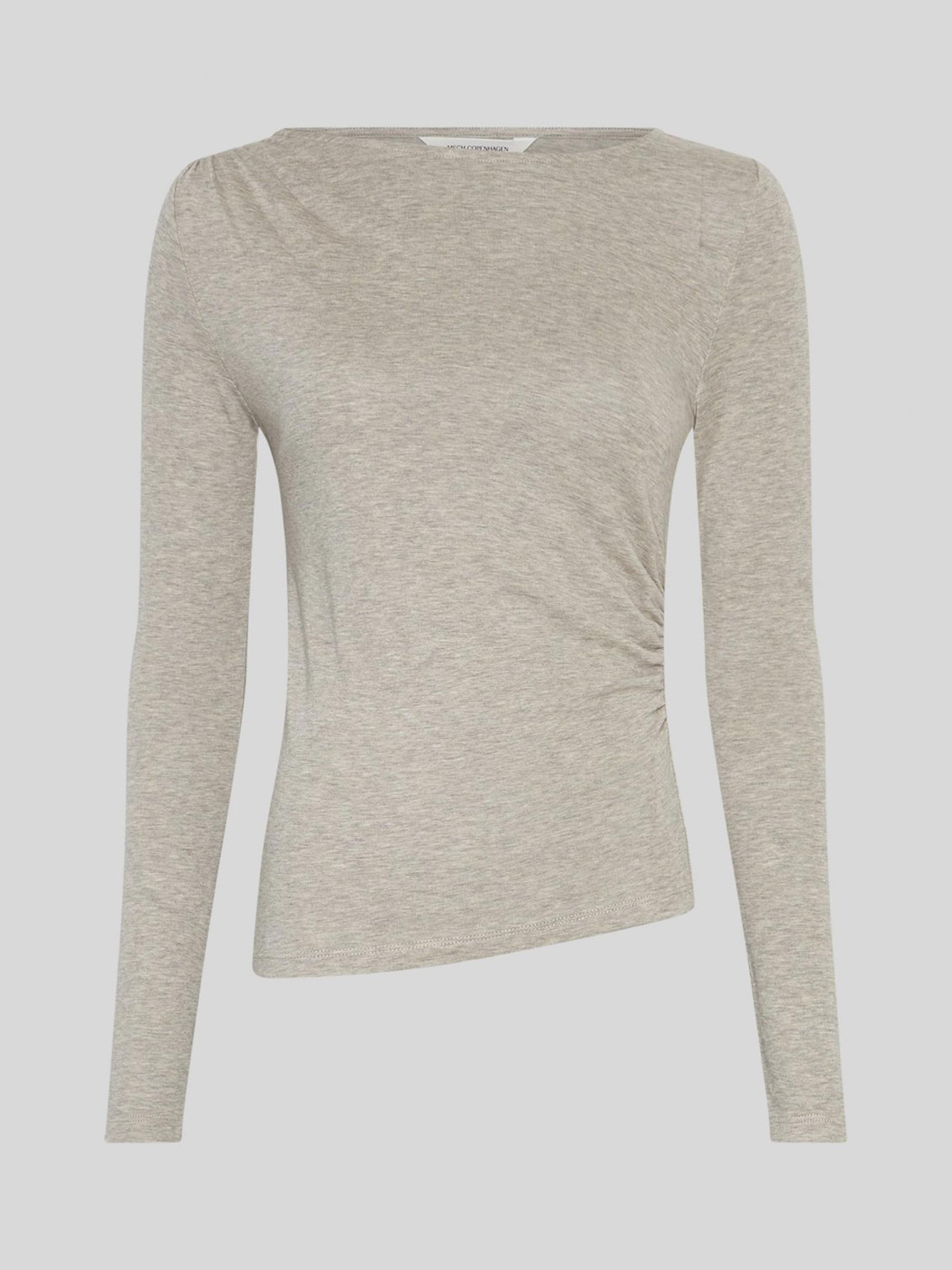 Deze grijze top van MSCH Copenhagen is de perfecte toevoeging aan je garderobe. De zachte jersey valt mooi om het lichaam en de subtiele plooien geven een speels gedrapeerd effect dat je look meteen wat interessanter maakt. Perfect voor dagen waarop je een simpele outfit toch een kleine upgrade wilt geven.