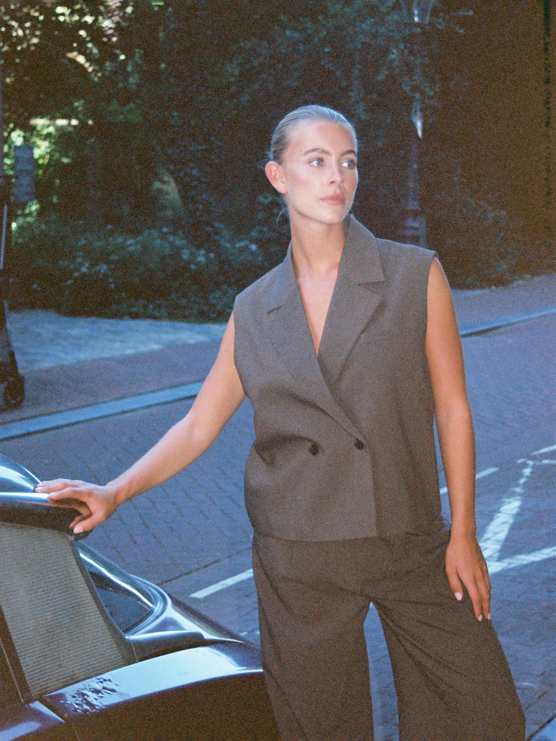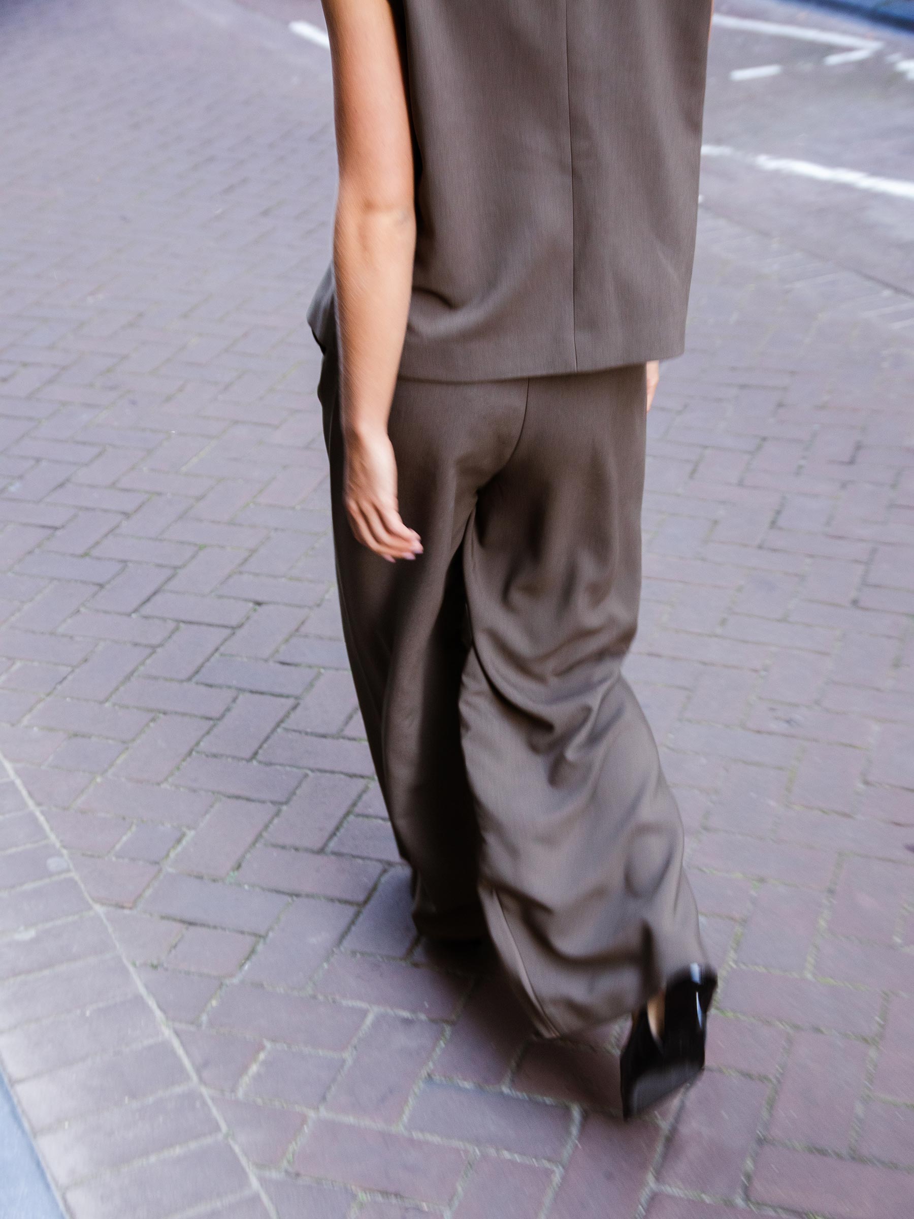 Deze donkerbruine pantalon van Modström is een echte klassieker met moderne twist. De high-waist en wijde pijpen zorgen voor een flatterende fit die zowel zakelijk als casual perfect werkt. Combineer de broek met een basic tee of een blazer voor een complete look.