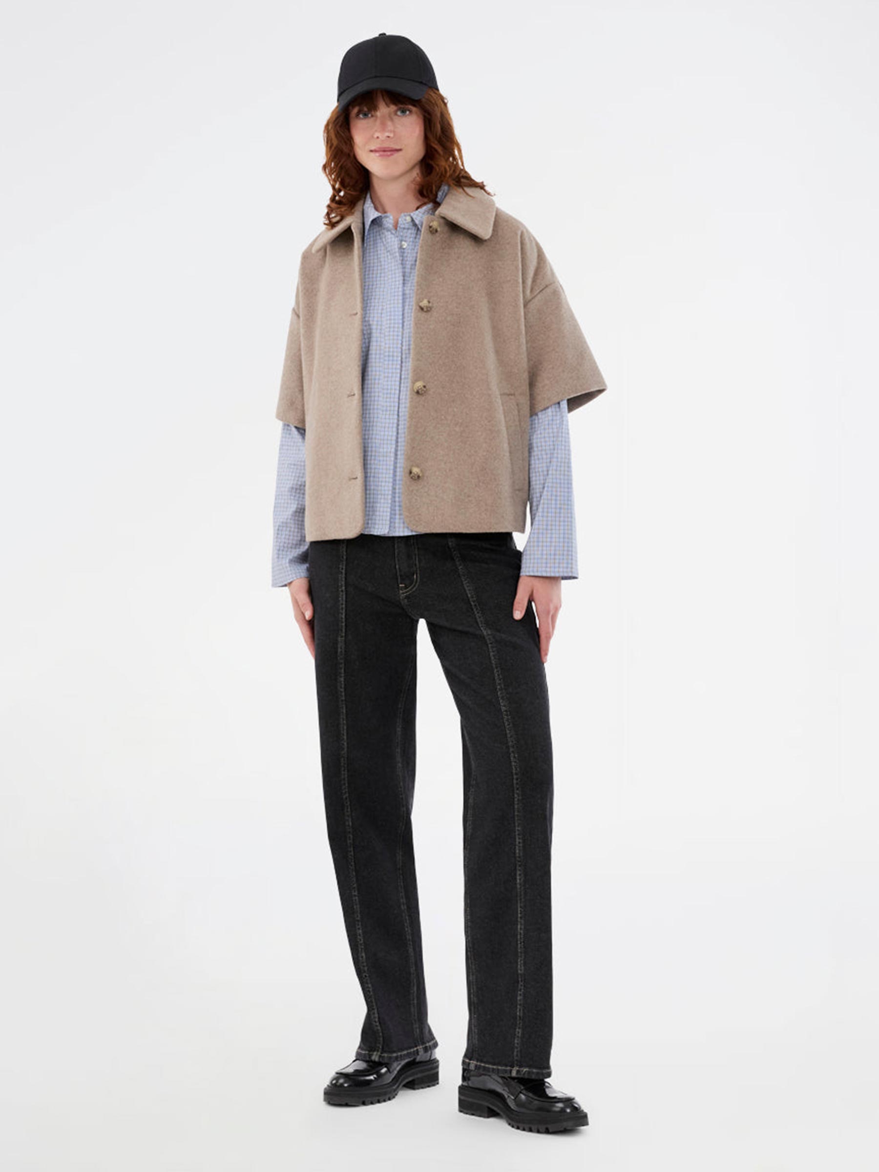 Dit beige cape jasje van Modström is perfect voor dagen waarop je outfit net wat extra mag hebben. De korte cape fit en zachte kleur maken dit item super leuk om te layeren over een blouse of knit en je bent meteen ready to go!