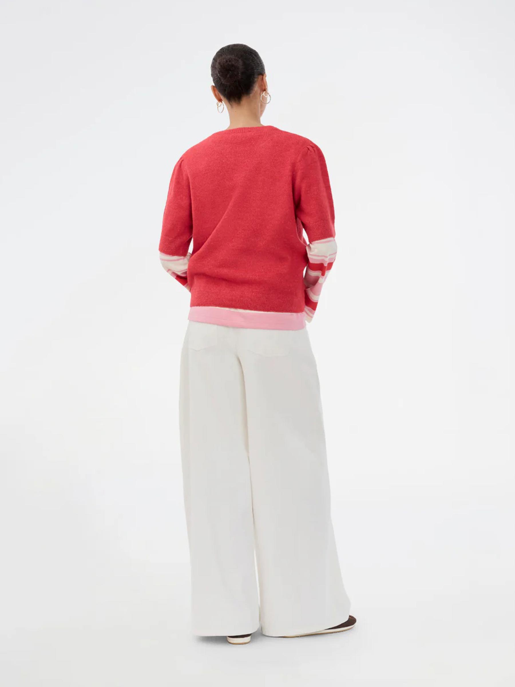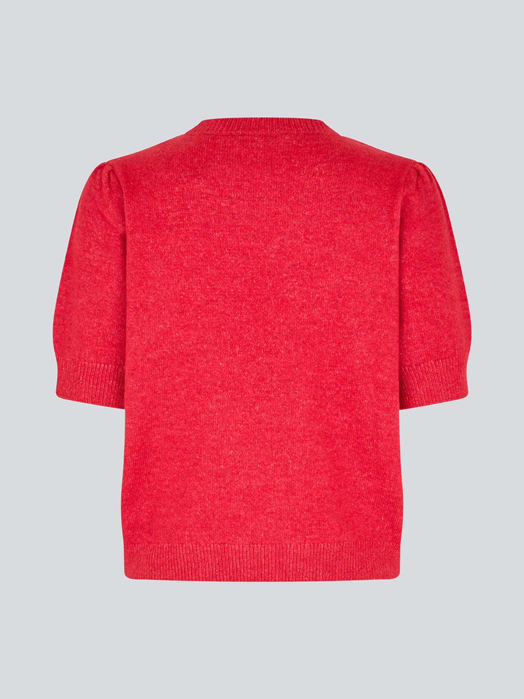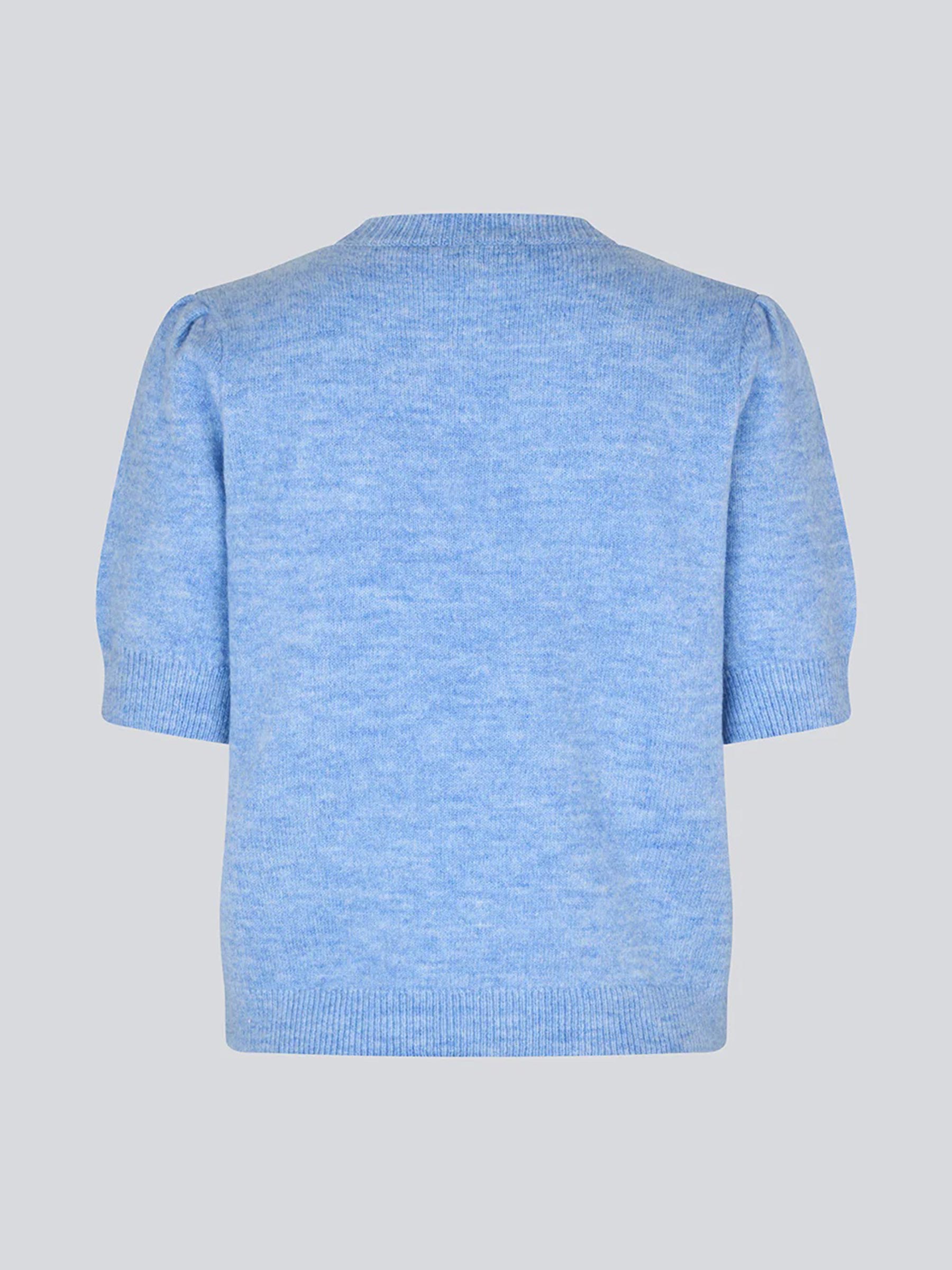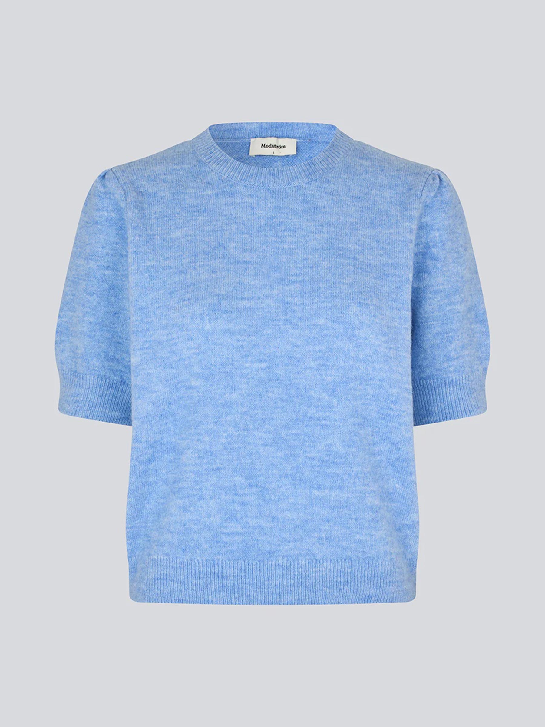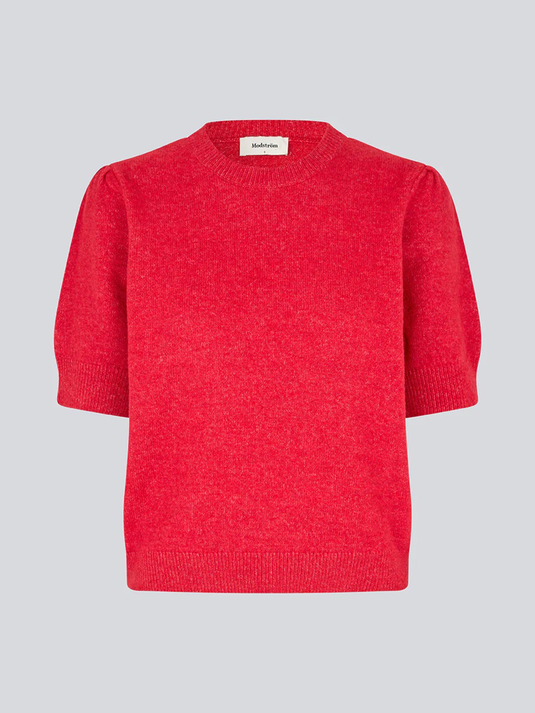 Deze gebreide trui van Modström brengt meteen kleur en zachtheid in je outfit. De fijne knit voelt heerlijk licht aan en de korte pofmouwen geven net wat extra karakter. Perfect om solo te dragen of te combineren met een blouse of lange mouw eronder op koelere dagen.