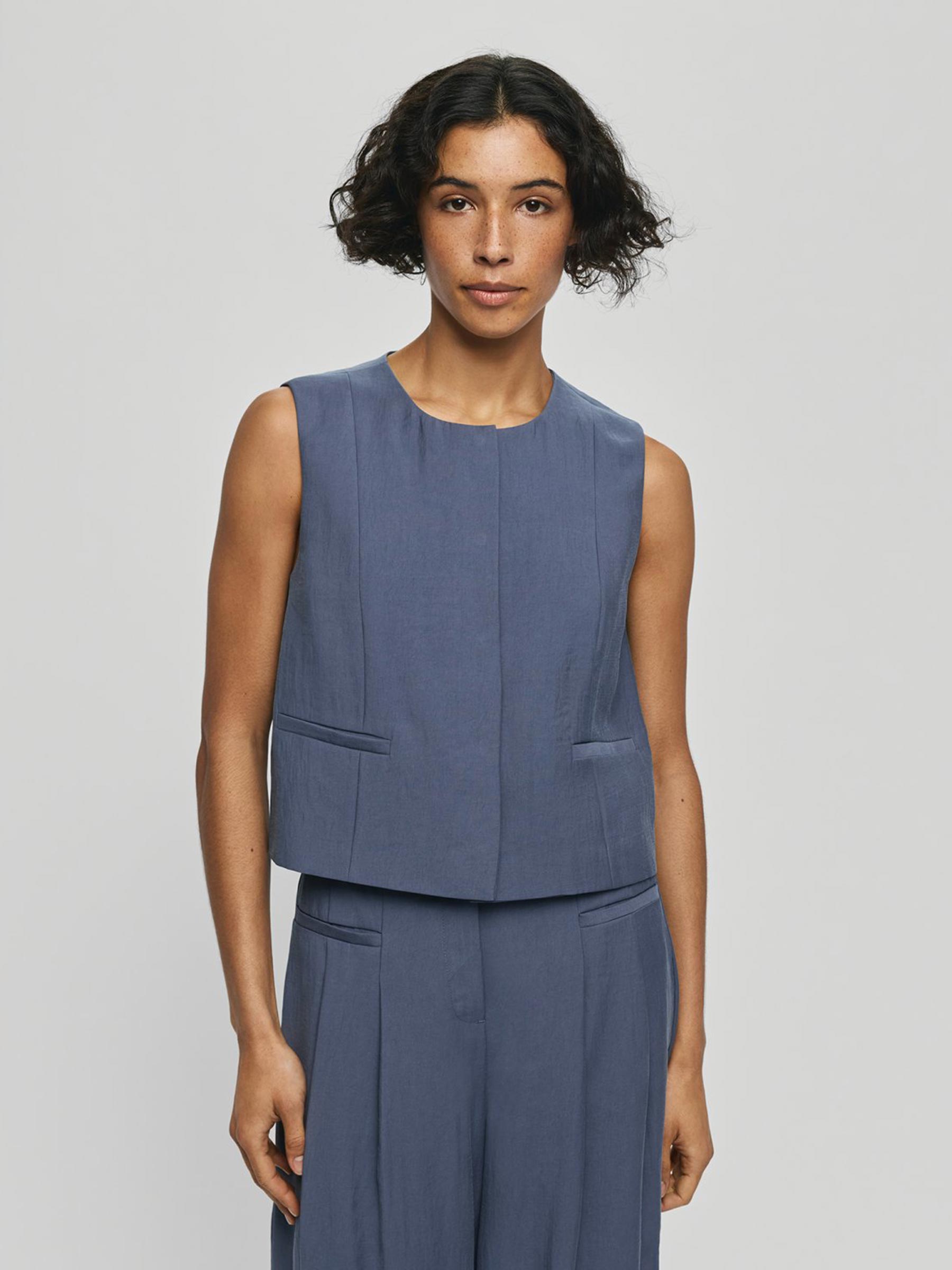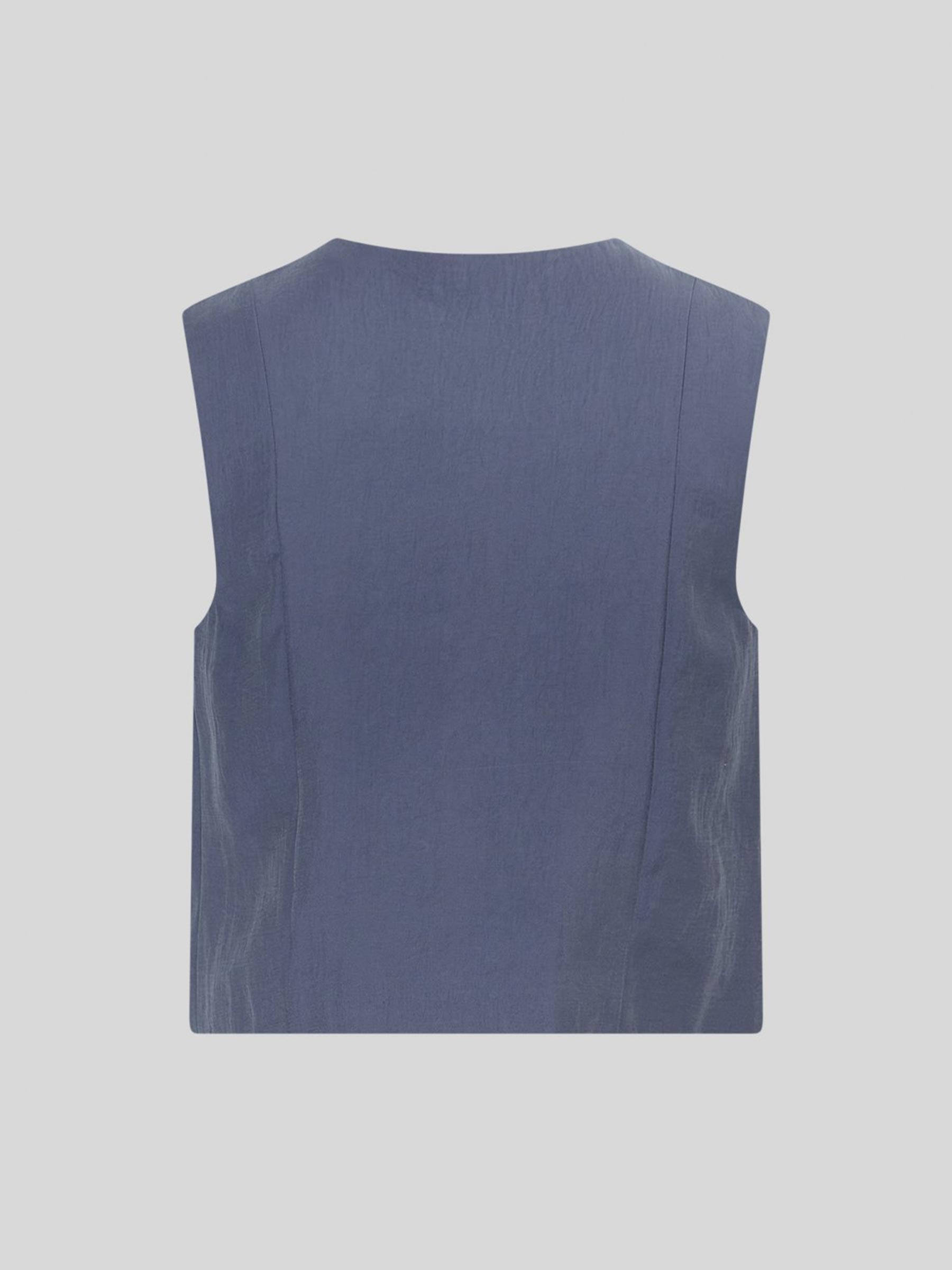 Dit blauwe gilet van MSCH Copenhagen geeft je outfit meteen een stijlvolle upgrade. De cleane belijning en cropped lengte maken hem perfect om te dragen over een blouse, jurk of als set met de bijpassende broek. Ideaal voor zowel een casual dag als een meer geklede look.