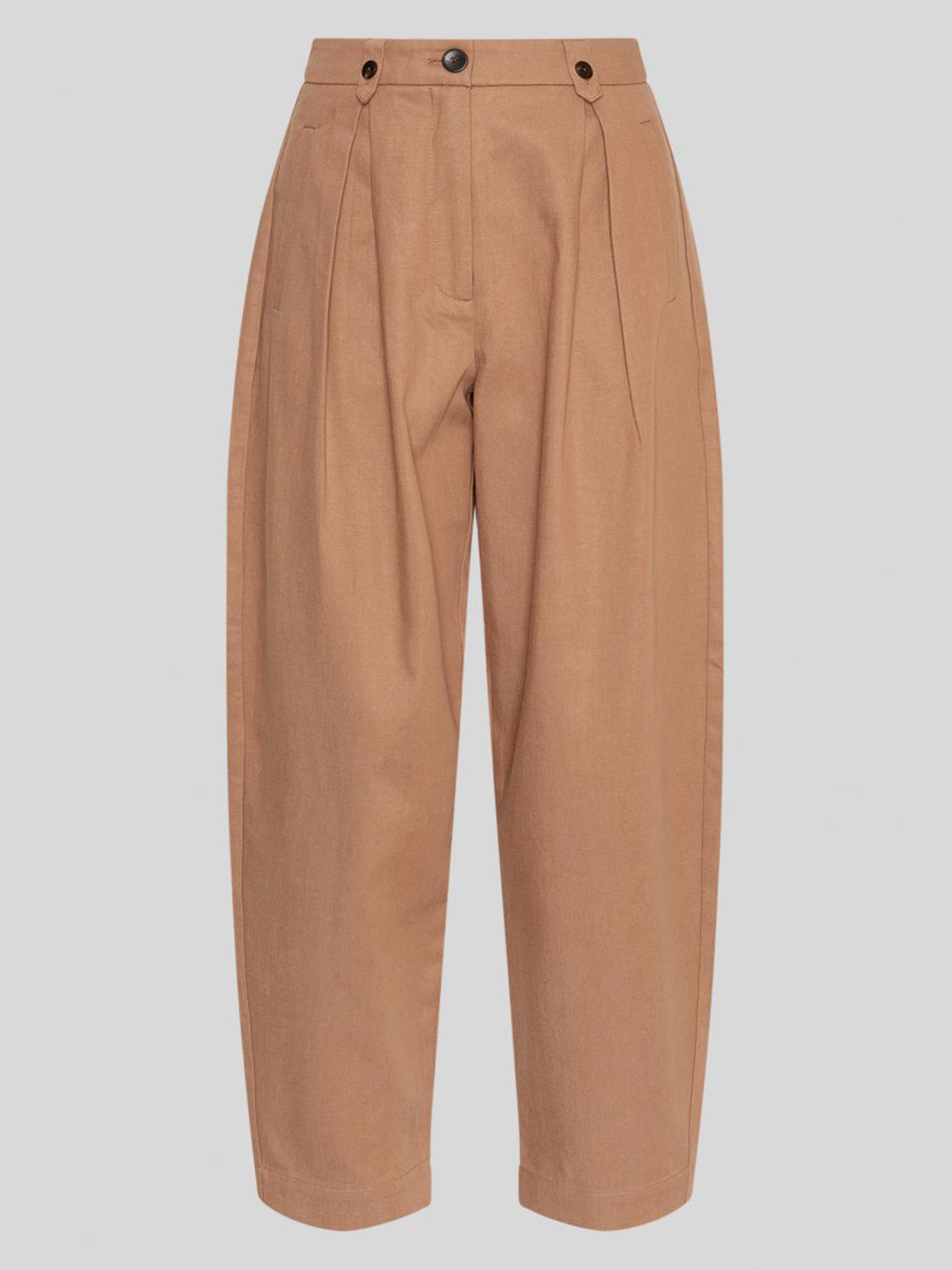 Deze camel broek van MSCH Copenhagen is zo’n keuze voor een comfy en toch frisse look. De plooien en hoge taille geven net wat extra body en je stijlt ‘m zo met een knit of een clean shirt voor elke dag. Fijn voor werk, weekends en alles ertussenin.