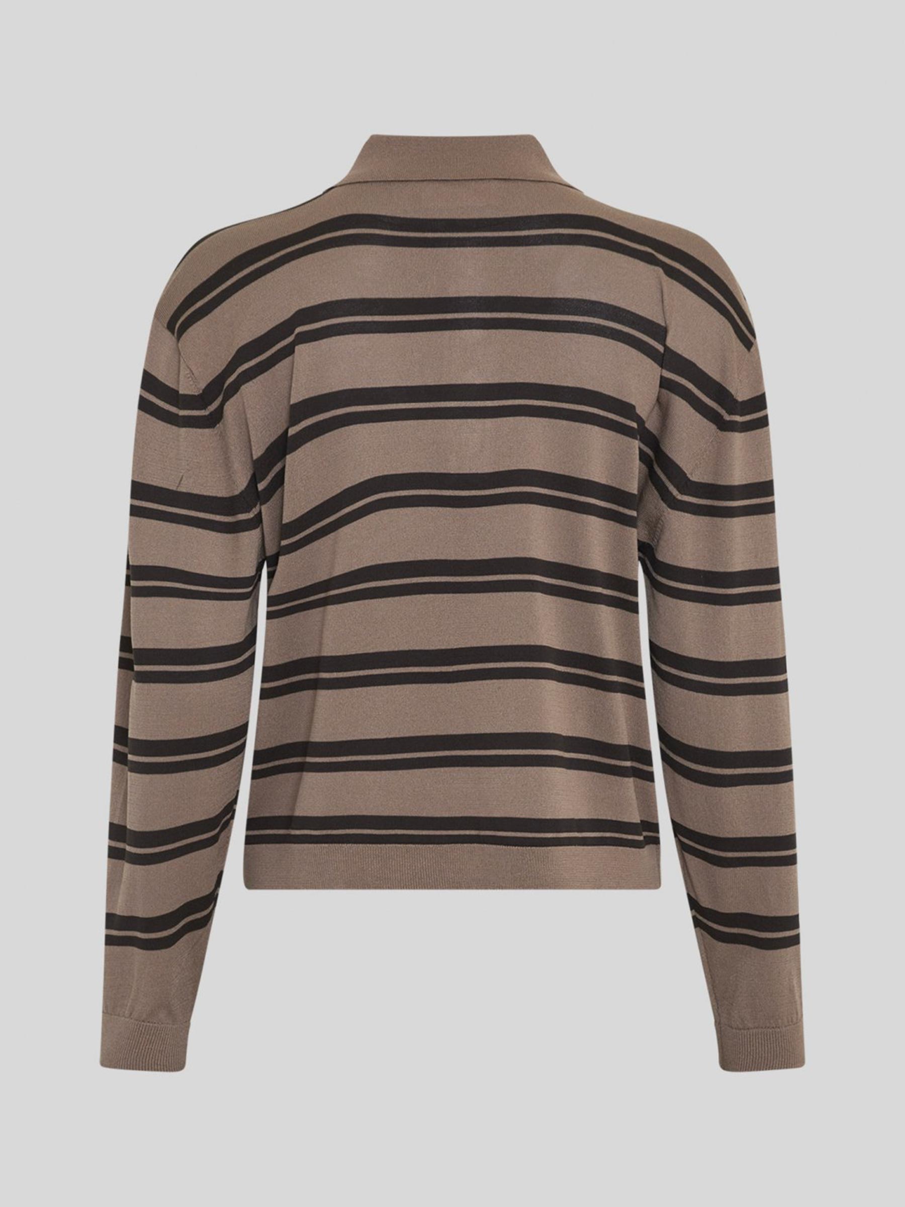 - Bruine gebreide polo met donkerbruine horizontale strepen