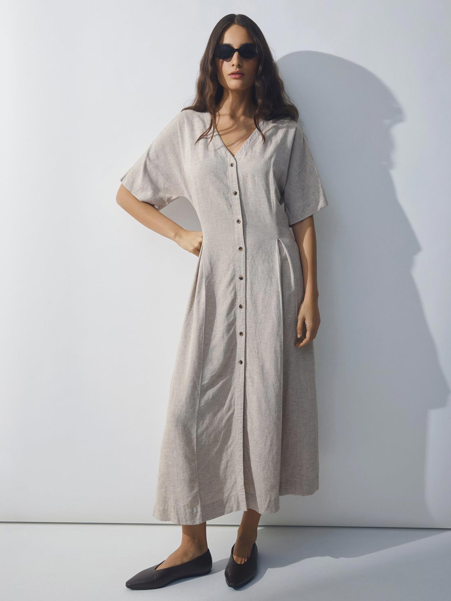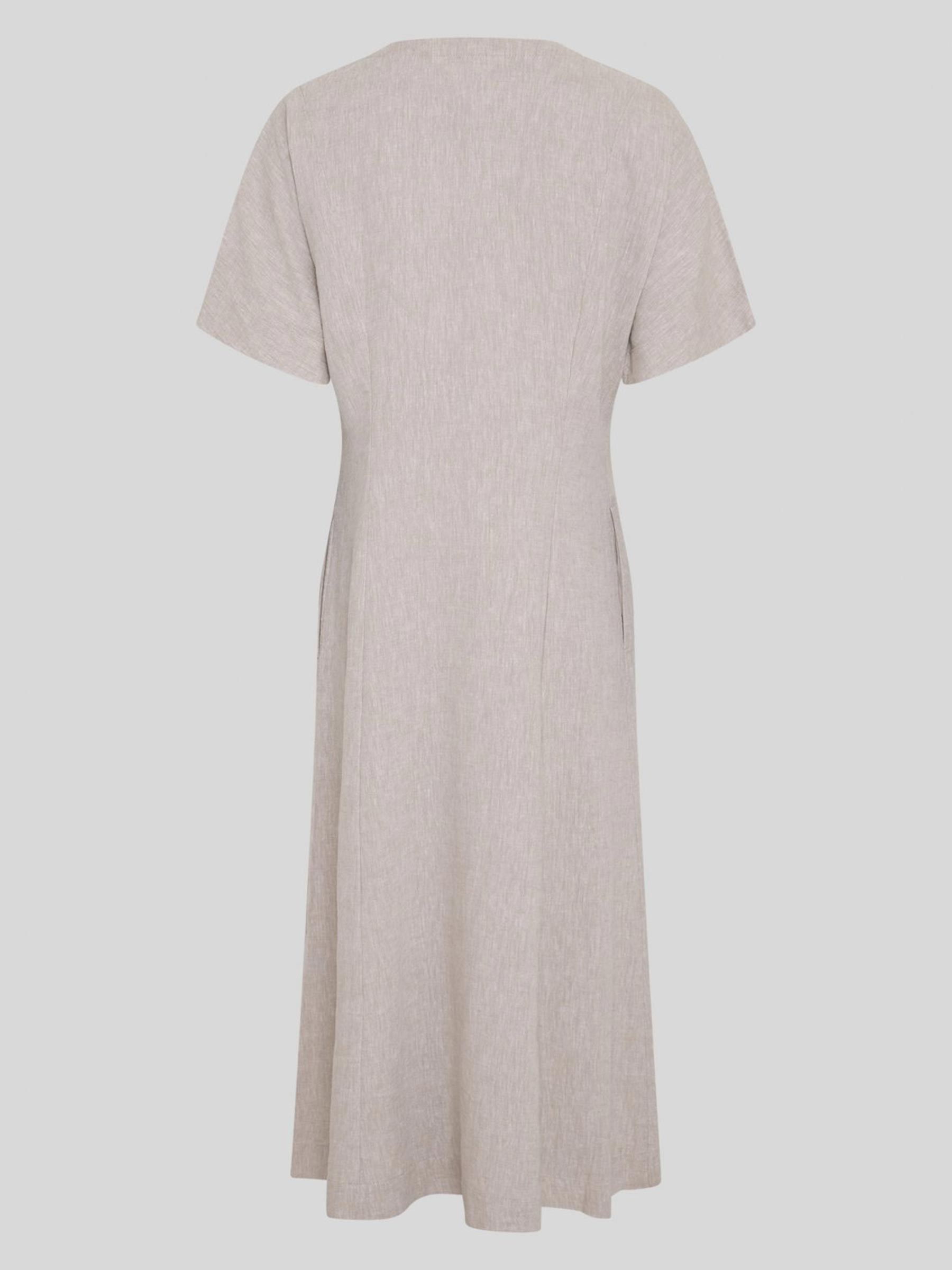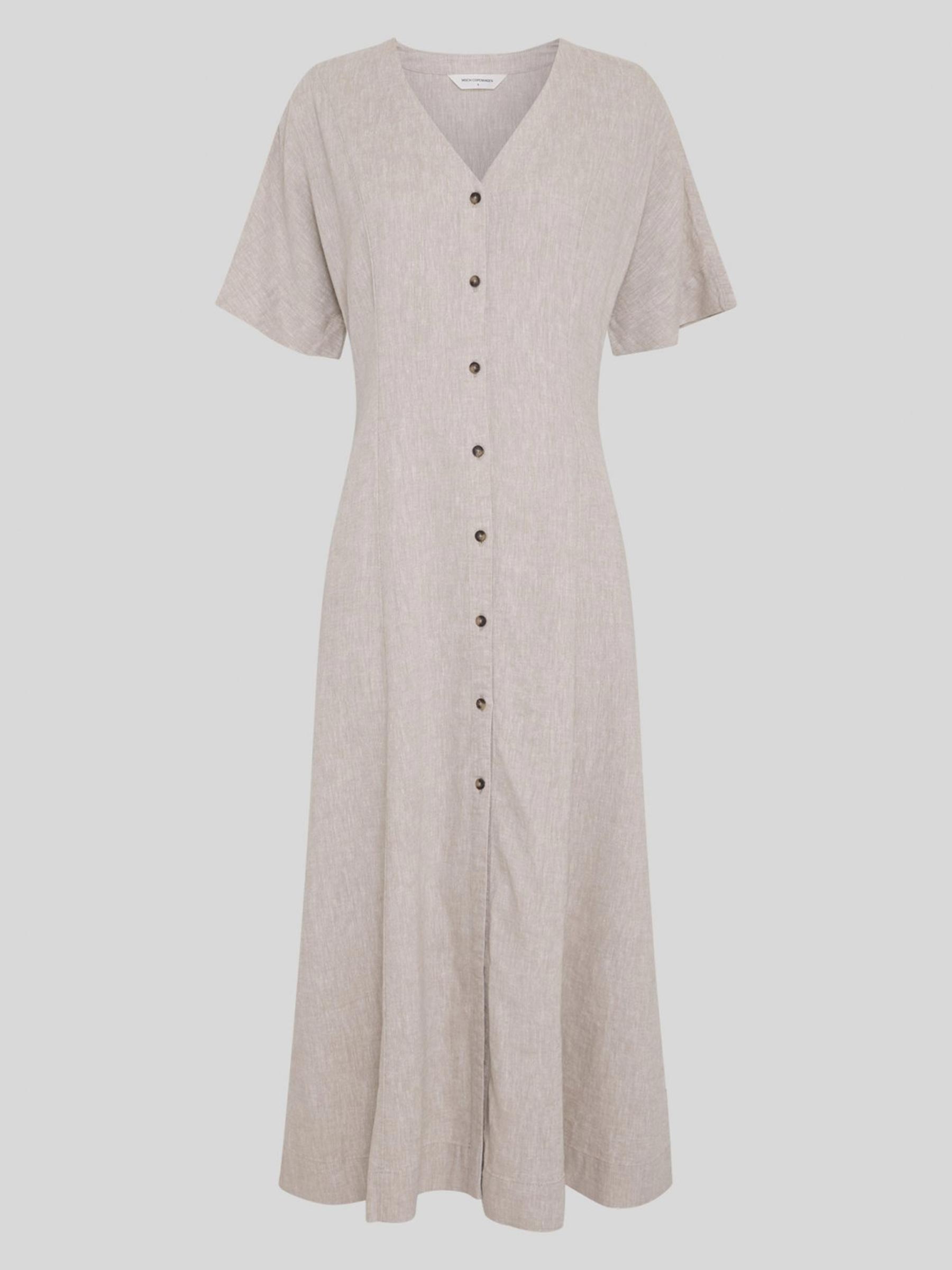 De Viana Ginia 2/4 dress van MSCH Copenhagen heeft alles wat je van een goede zomerjurk wil: een v-hals, knoopsluiting van boven tot onder en een wijde rok die lekker meebeweegt. Je trekt hem aan en je bent klaar. De linnenmix is heerlijk luchtig en kan de warmste dagen aan.