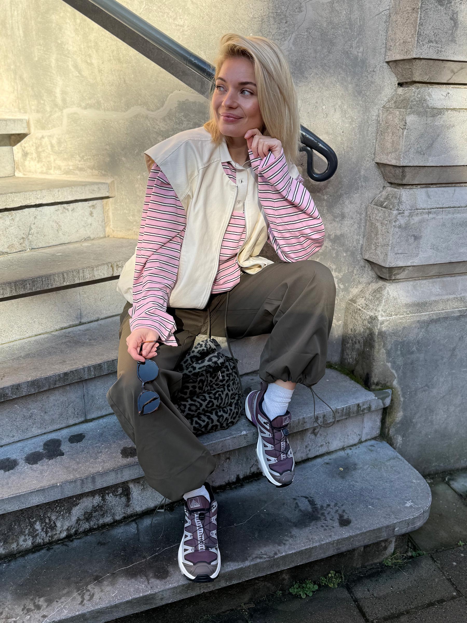 Draag de Talia over een kleurrijke longsleeve met cargo pants en chunky sneakers voor een sportieve streetstyle look. Of houd het simpel met een basic top en wide leg jeans.