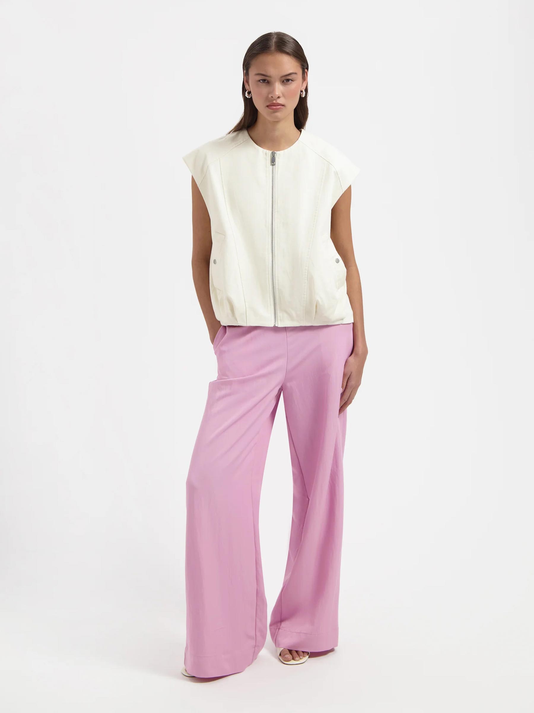 Lekker losjes over een gestreepte top of op een zonnige dag als statement piece op zichzelf: dit ecru gilet van Nous Sommes Labels is een topper in je tussenseizoen garderobe. De oversized vorm met elastische onderkant geeft een relaxte, licht gebombeerde shape die er stoer én vrouwelijk uitziet. Nous Sommes Labels is het Amsterdamse huislabel van We Are Labels, ontworpen voor vrouwen die houden van urban fashion met karakter.