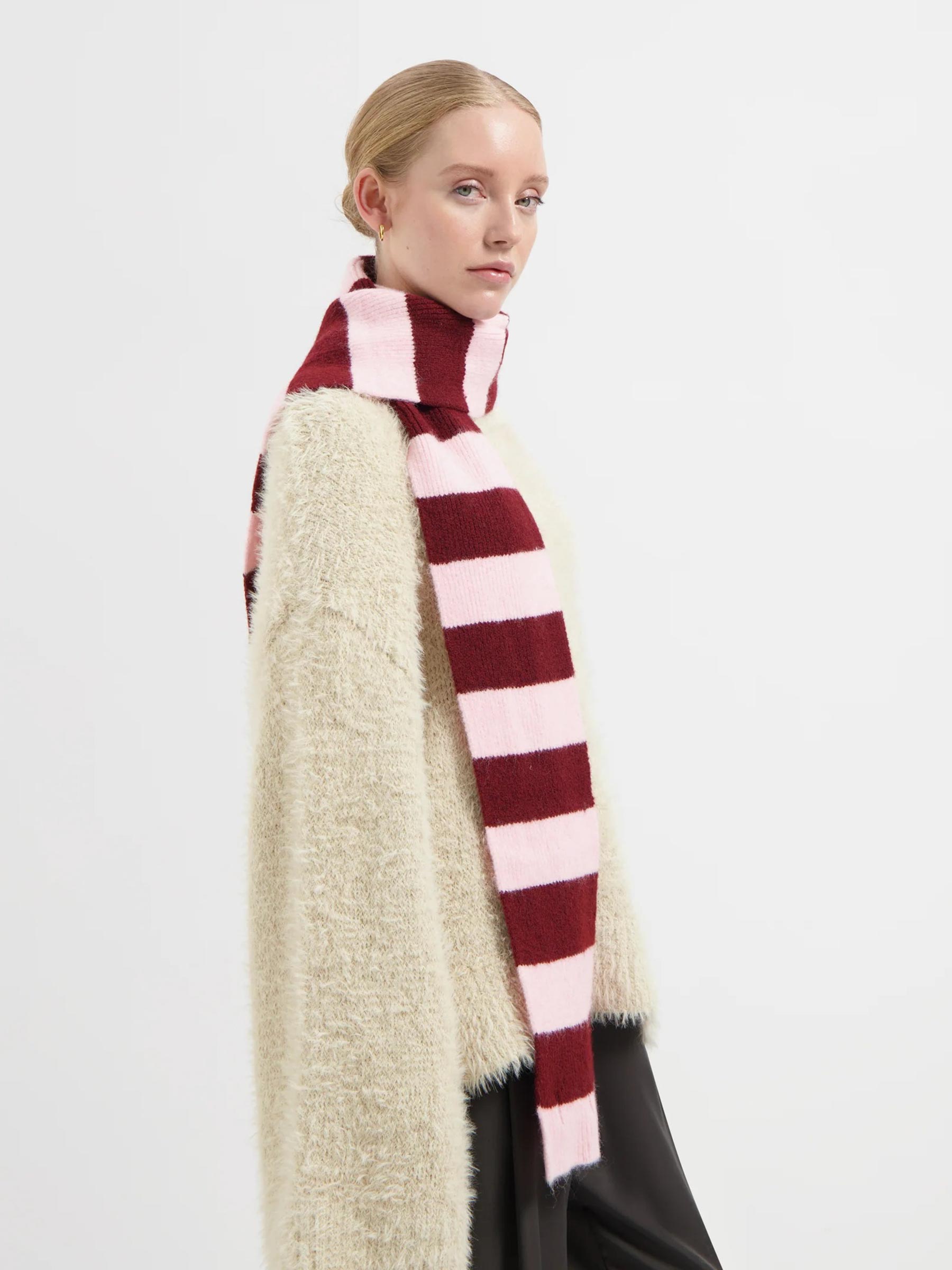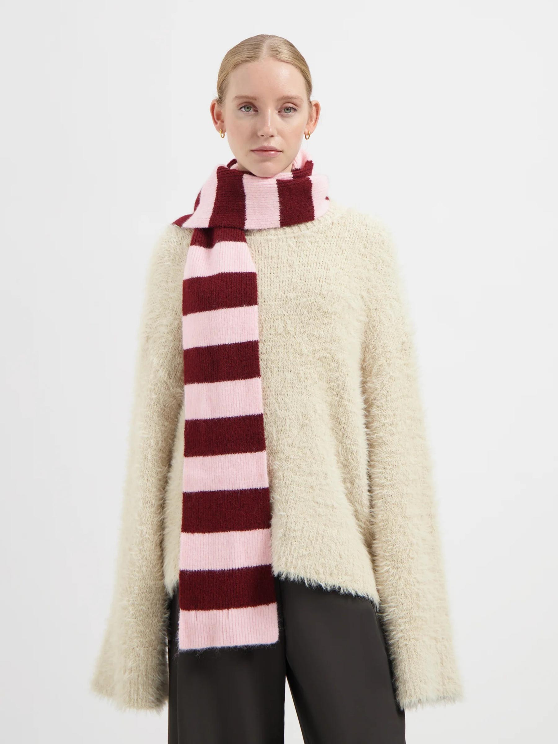 - Roze-bordeaux gestreepte sjaal