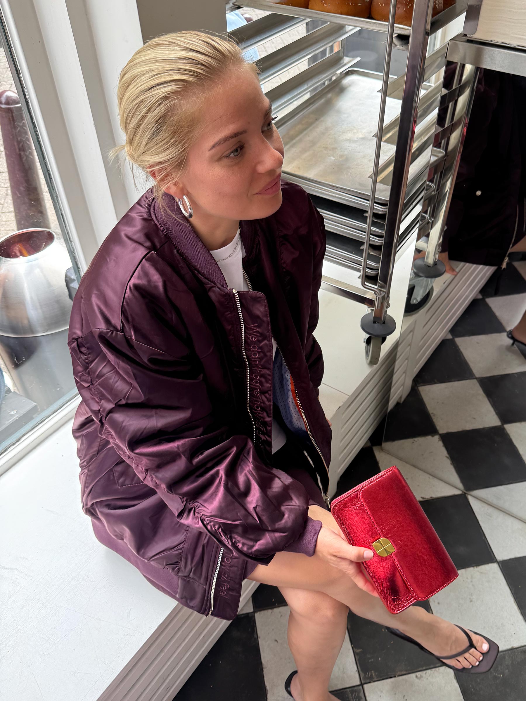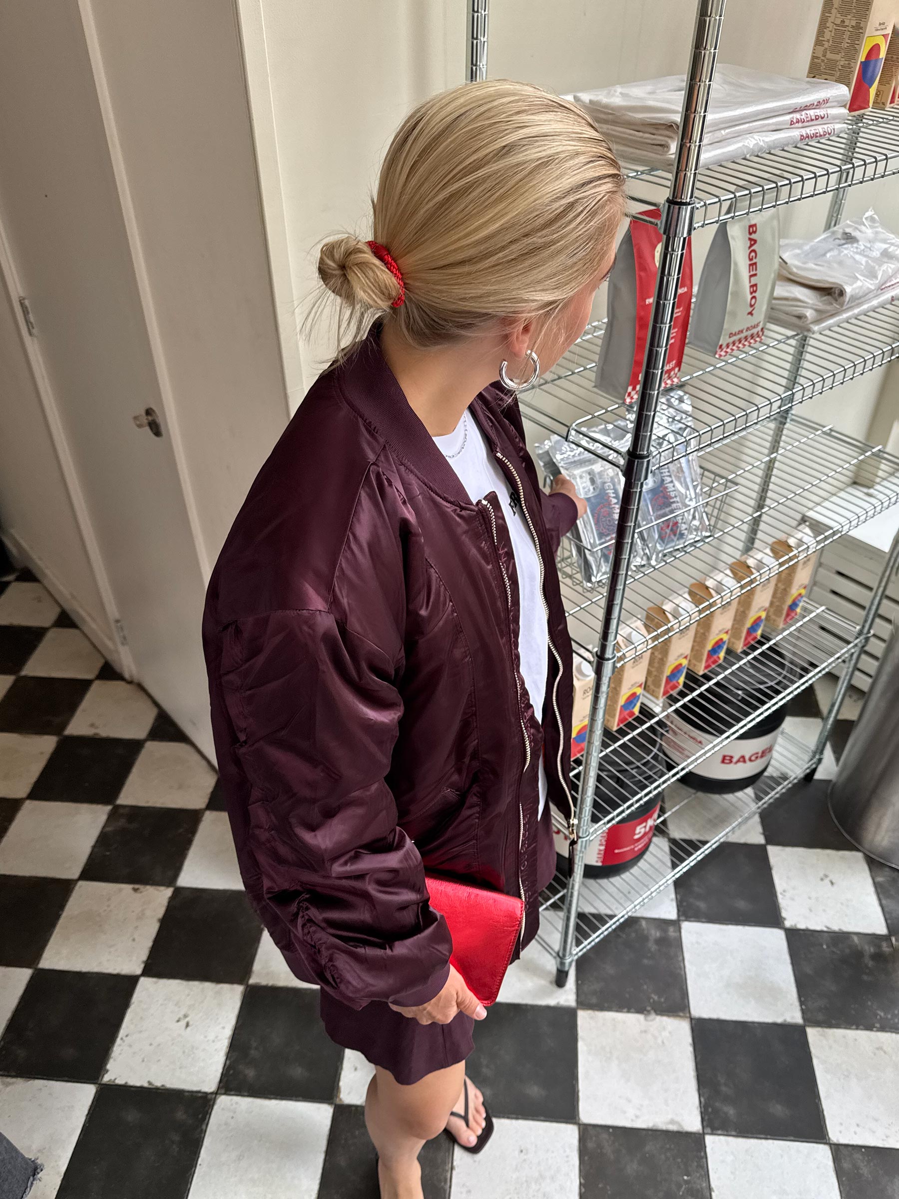 Deze bordeaux bomber van Nümph is er eentje die je outfit net dat beetje meer geeft! Door de relaxte pasvorm draag je het jasje makkelijk over een dikke trui maar hij is ook leuk te combineren met een rok of jurk.