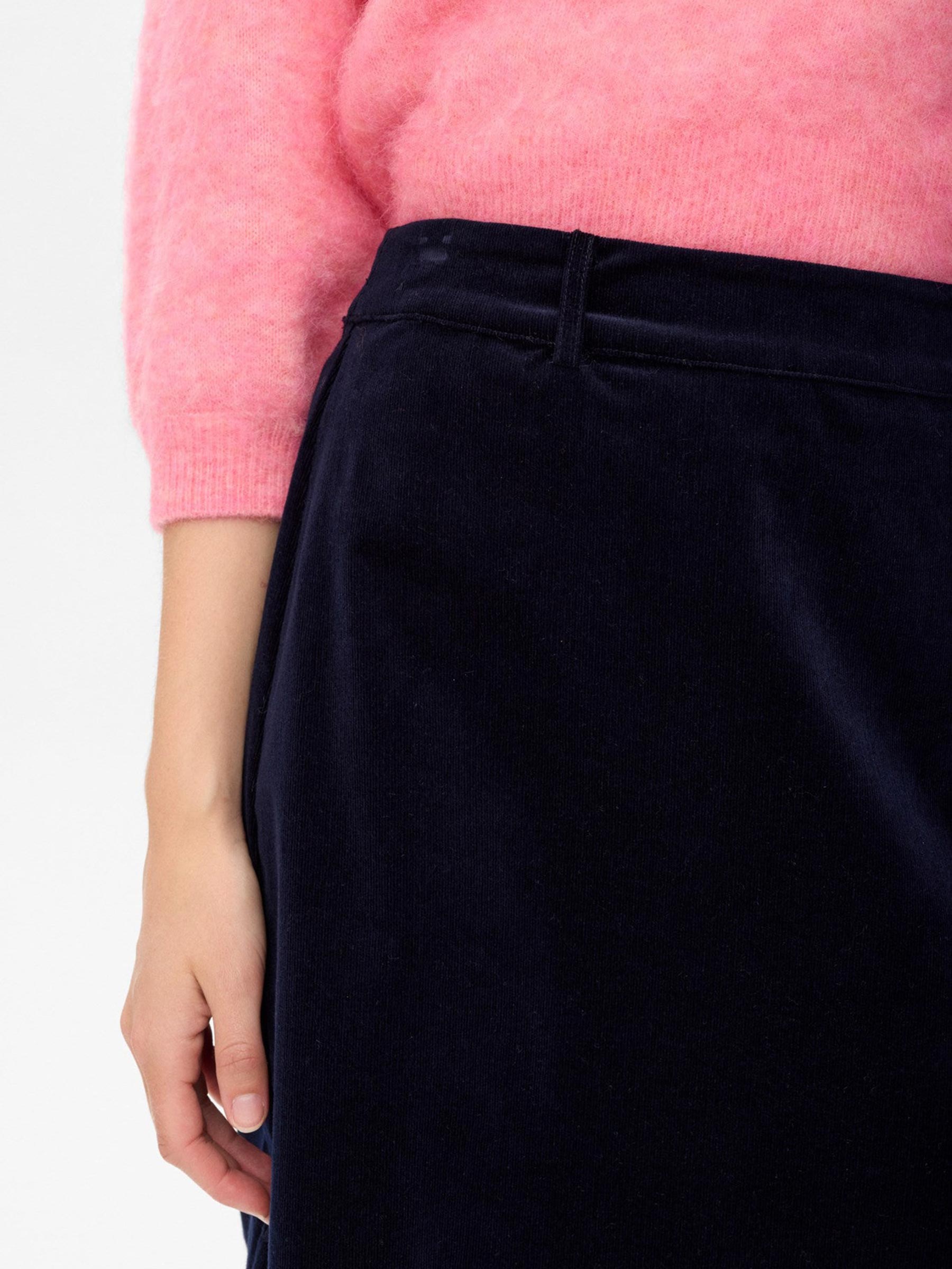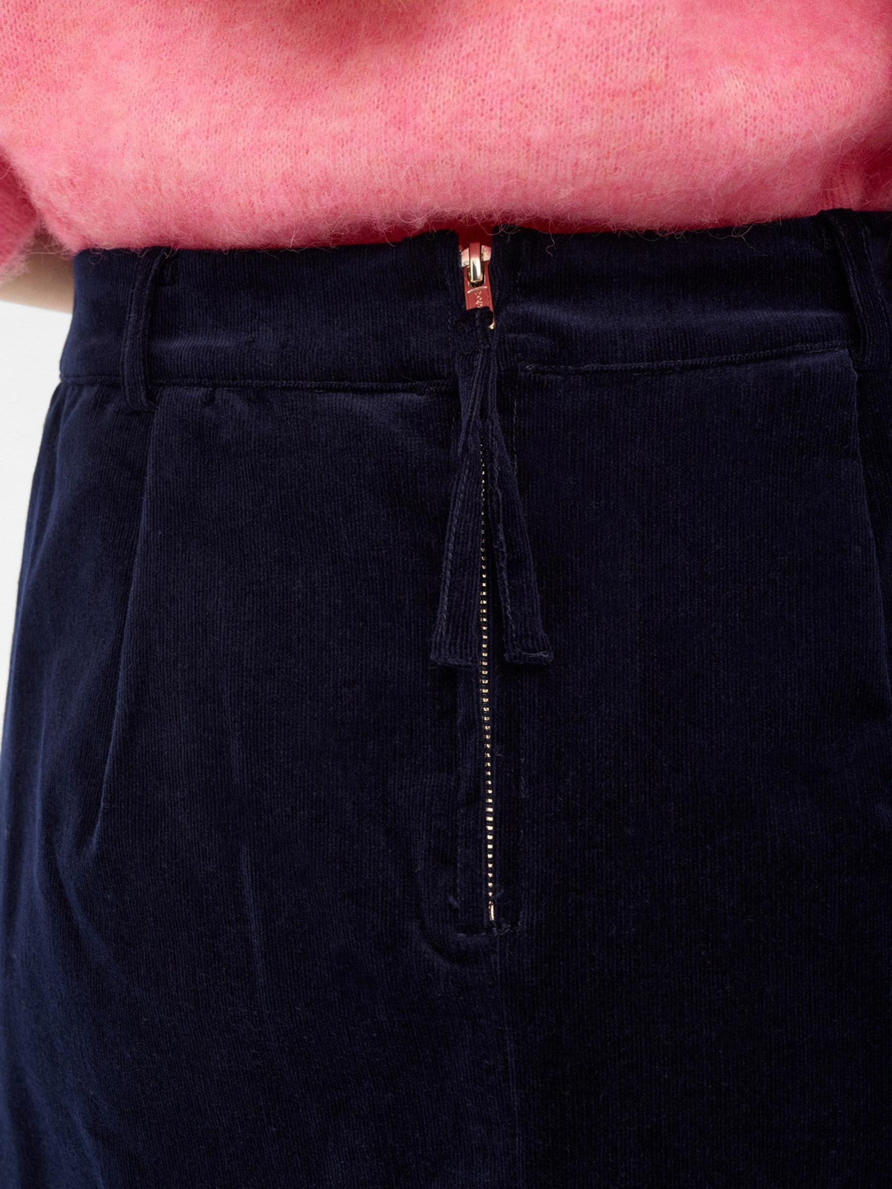Deze donkerblauwe rok van Nümph geeft je garderobe een tijdloze twist. De rok met corduroy heeft een korte lengte, de rechte fit maakt dit een speels item dat je makkelijk combineert met een knit en hoge laarzen. Perfect voor een casual dag of juist leuk aangekleed met een blouse voor een meer classy look.