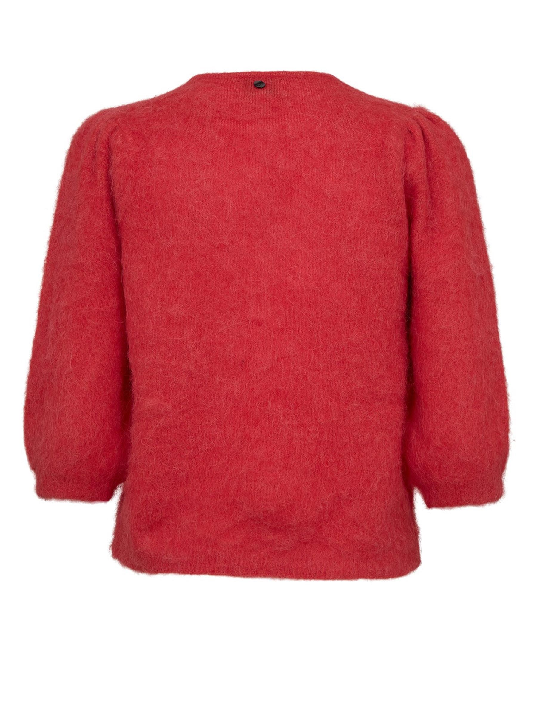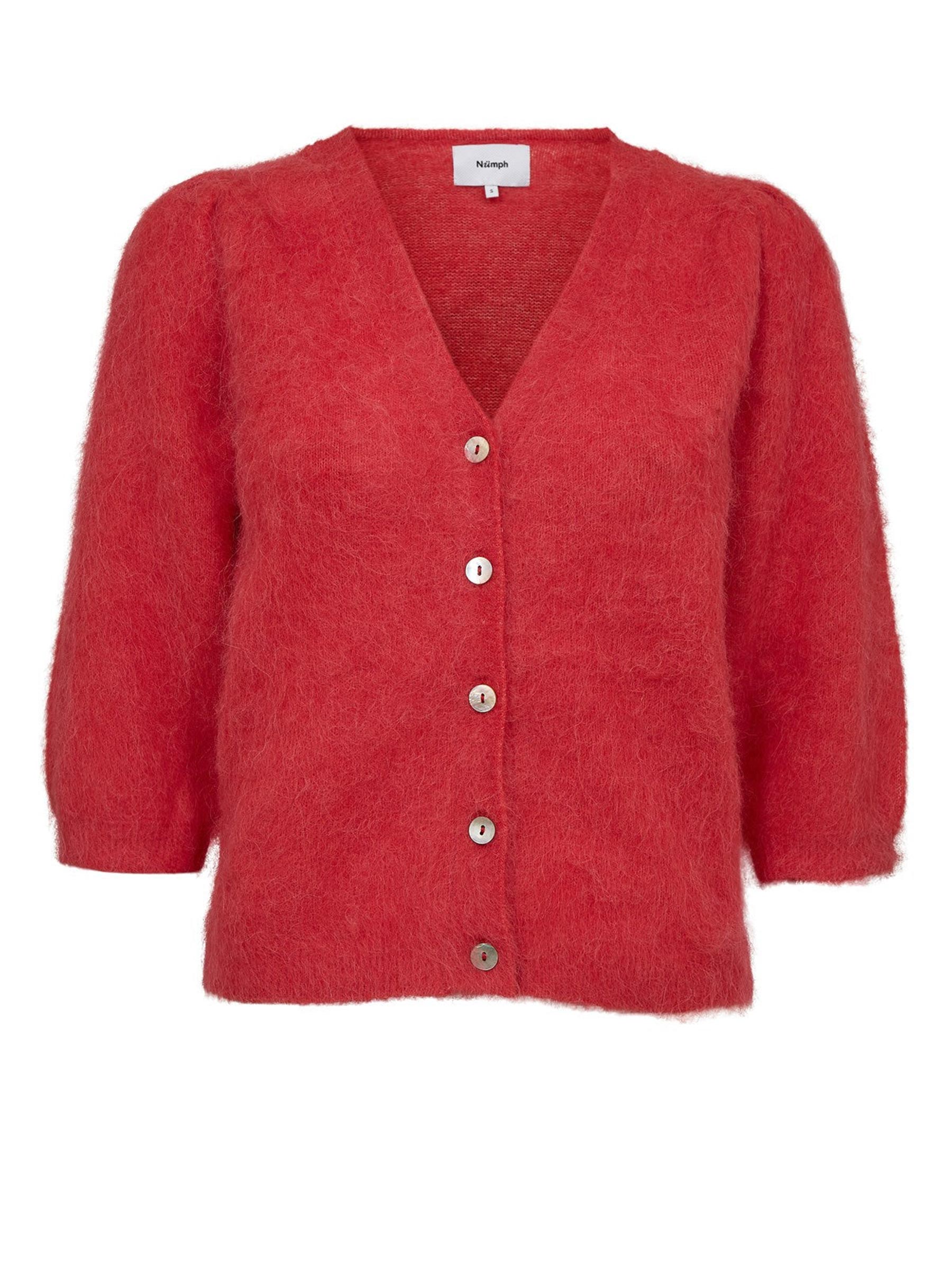 Dit rode vest van Nümph is een echte blikvanger met zijn zachte, geborstelde structuur. De V-hals en parelmoer knopen geven het een vrouwelijke touch, terwijl de cropped lengte het perfect maakt op een hoge jeans of rok. Een vrolijke kleur die elk seizoen goed staat.